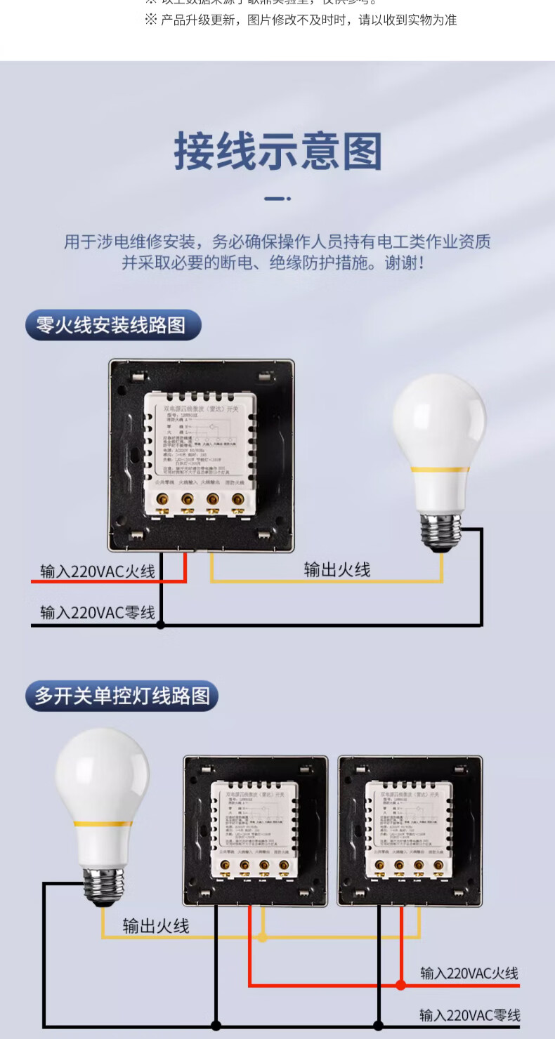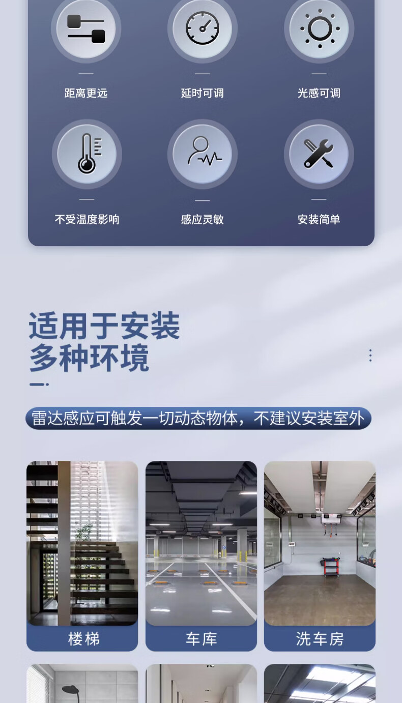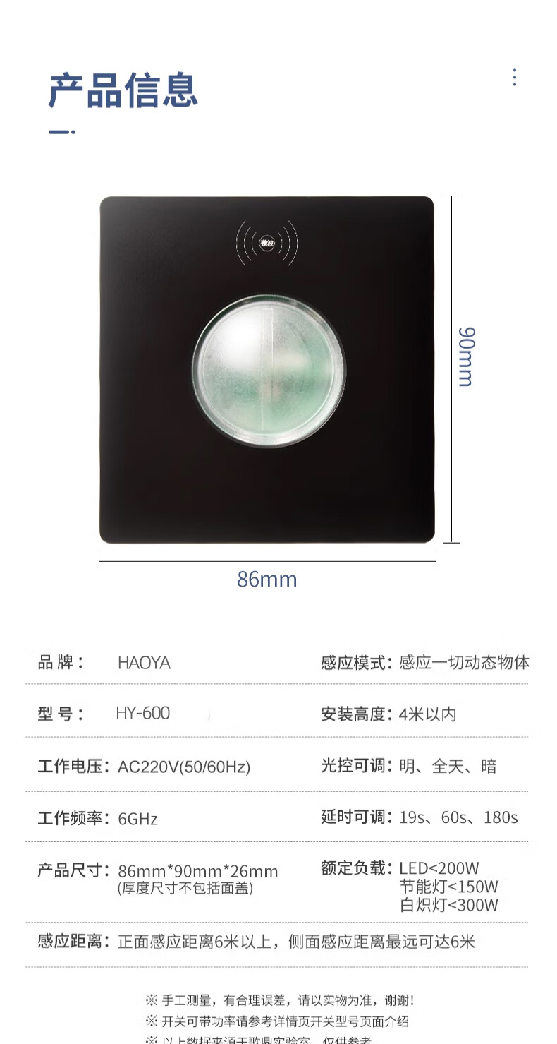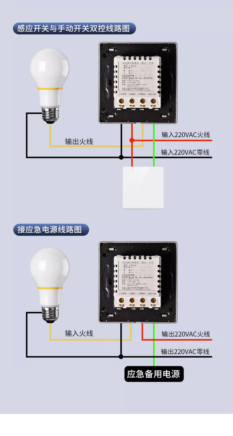 Type 86 delay distance light-controlled adjustable microwave radar sensor 220v wall panel 2-wire induction switch 200 watt 220V 2-wire elephant white