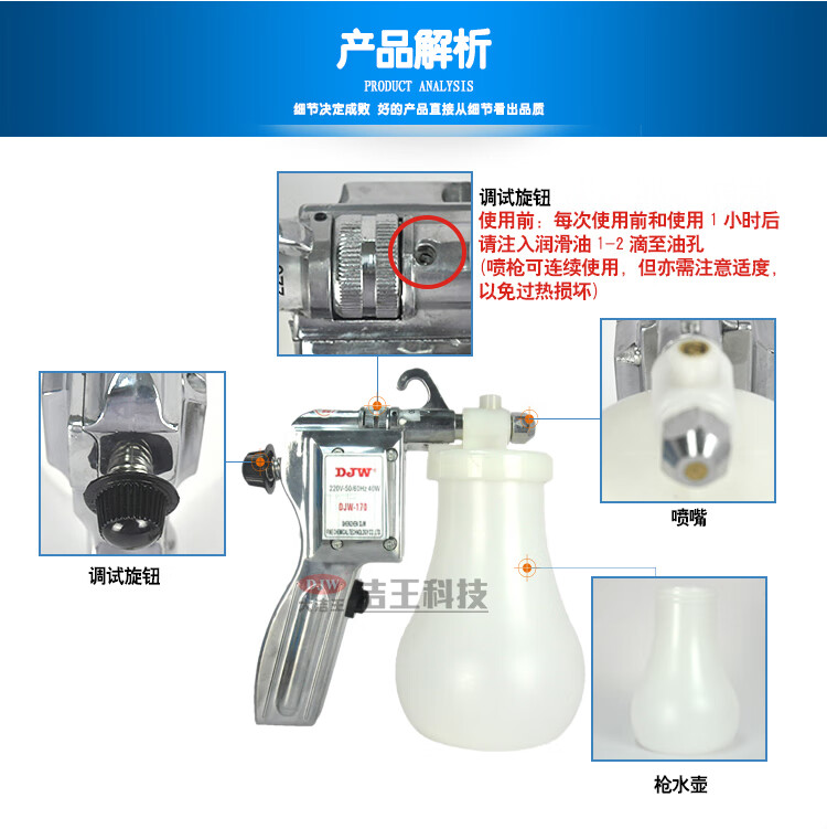 Dajiewang 170 spray gun decontamination gun for cleaning dry cleaners, clothing industry, cleaning and degreasing cleaning gun DJW-170 (straight style)