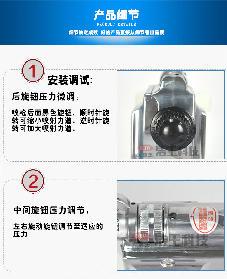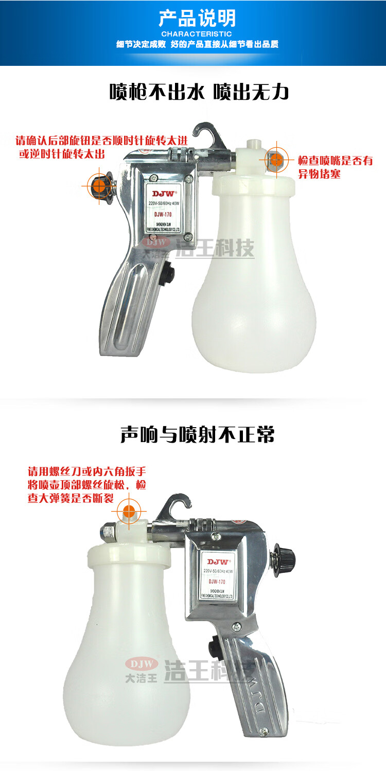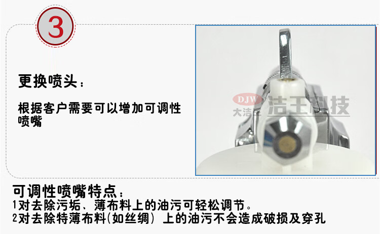 正确的喷射距离为10~20公分,其压力与喷射距离远被喷物之厚薄、密度,做适度调整,以免伤及被喷物,如:纤维。(可替换弯管嘴头但机器内无弯管配备 哦)