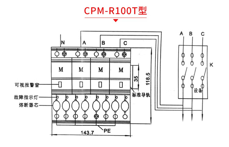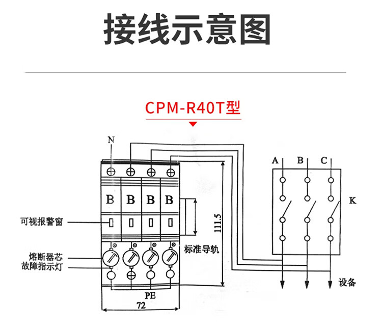 Level 1 T1 surge lightning protector fuse type/20T/65T/80T/R100T CPM-R40T 4P red