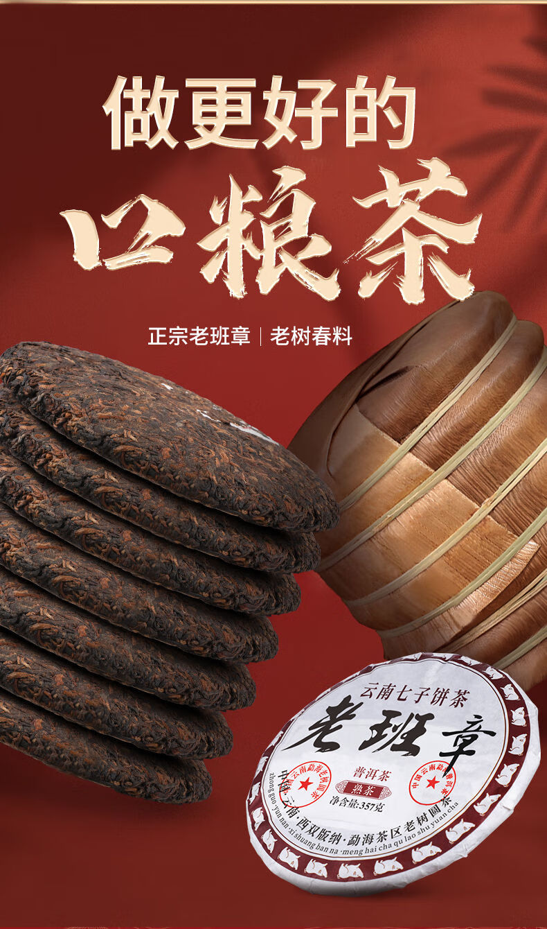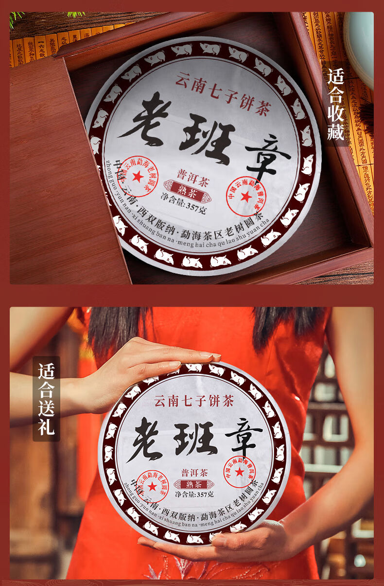 Qi Shan Tang 2015 Lao Ban Zhang Pu'er Tea Ripe Tea Cake Yunnan Qizi Cake Menghai Ancient Tree Tea Non-Chen Fragrance Old Tea 14994g