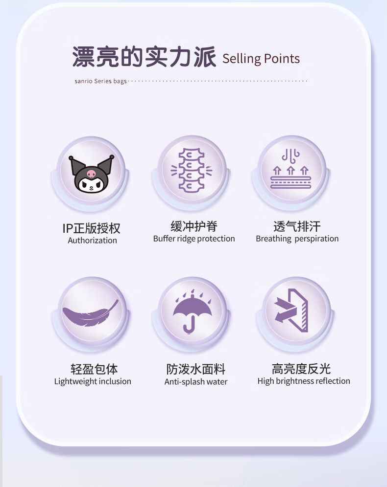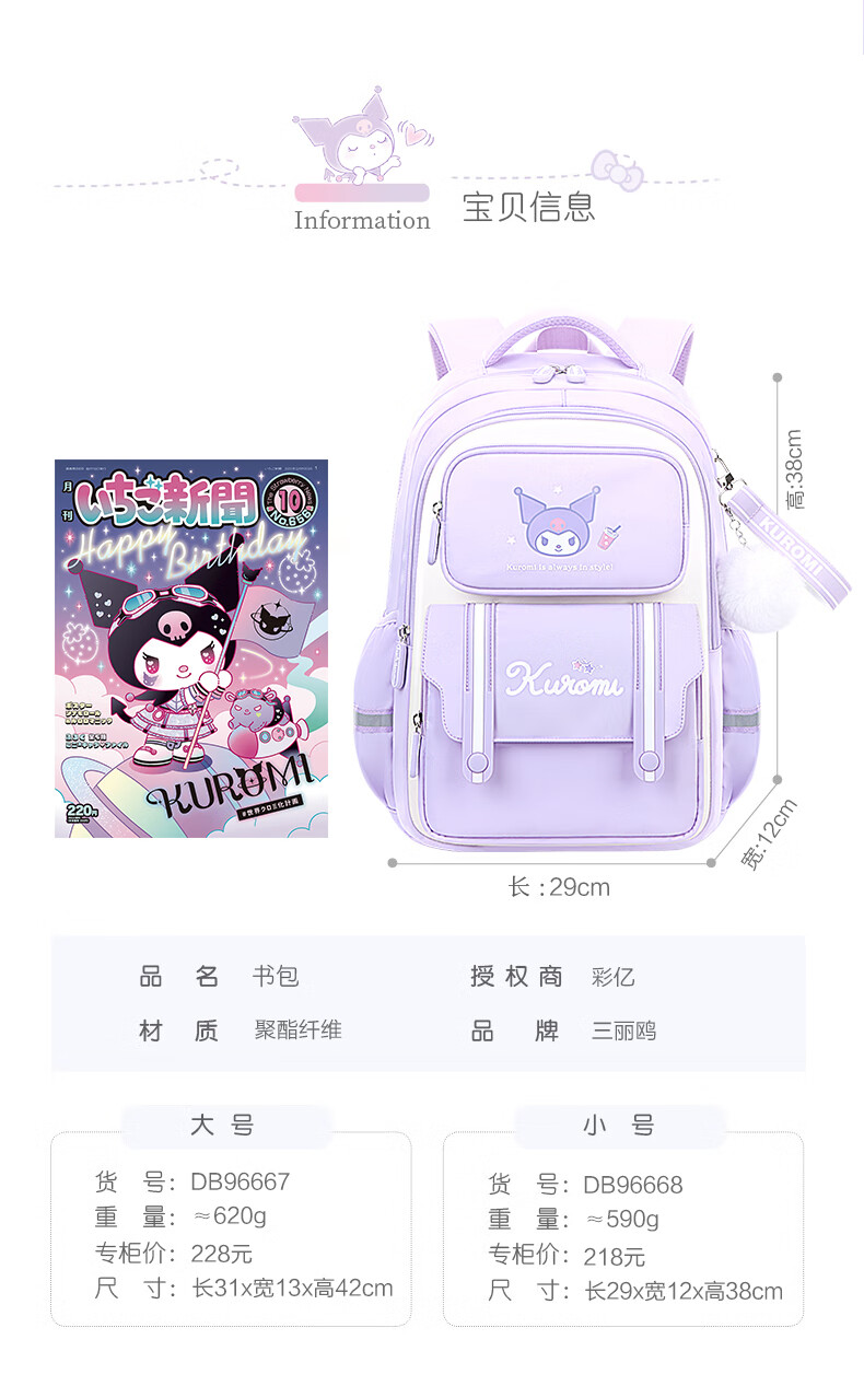 Hello Kitty primary school bag girls large capacity new Kuromi waterproof backpack for children in grades 1, 3, 5 and 6 Melody Pink Small (DB96667)