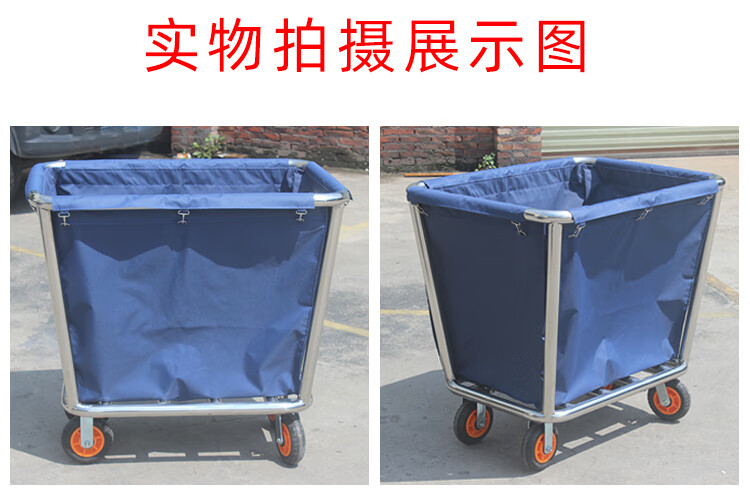 Linen cart, hotel room work service cart, stainless steel cart, laundry room, dry cleaners, storage and recycling cart, thickened and reinforced blue 10-tube floor tiles, ultra-quiet wheel