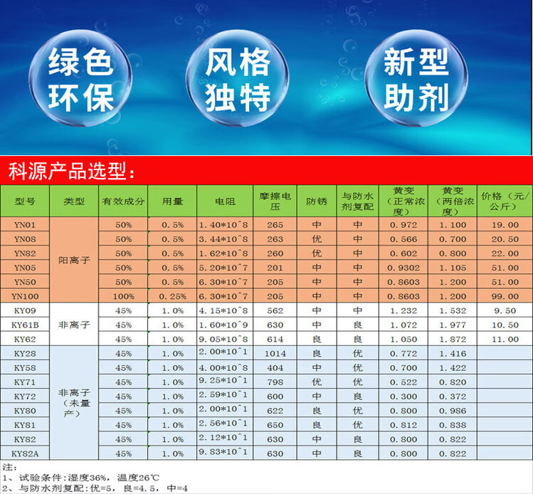 KY62 new industrial plastic barrel anti-static liquid non-ionic antistatic agent for textile factory fabrics 0.5 kg KY62 antistatic agent