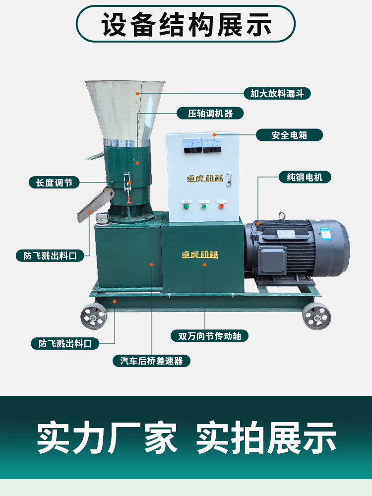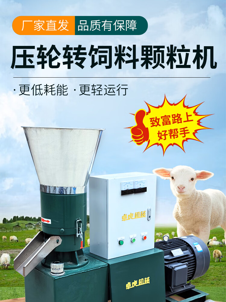 FHJQB pressure rotary breeding chicken, duck, goose, cattle, sheep and pig small poultry uses 220V corn straw to make pellets. New rotary 210 + double grinding disc + electric box + 11 kilowatts