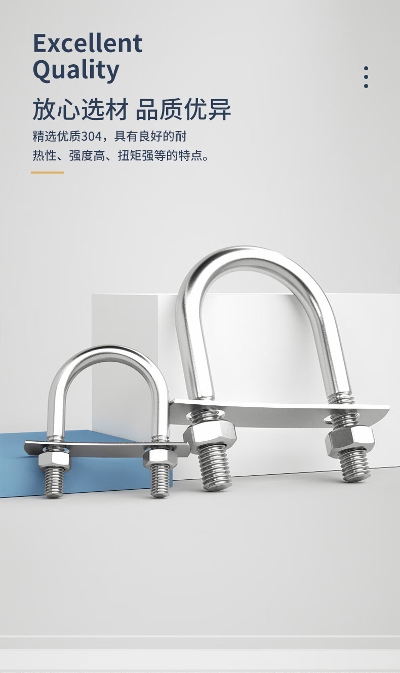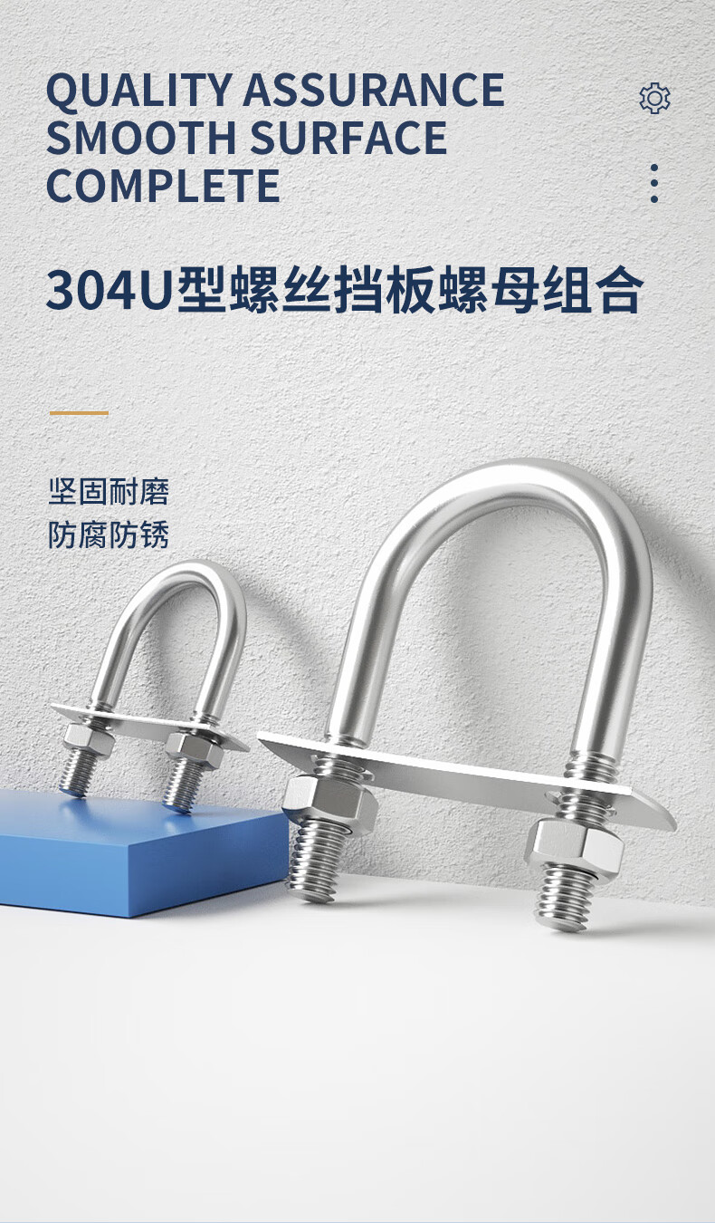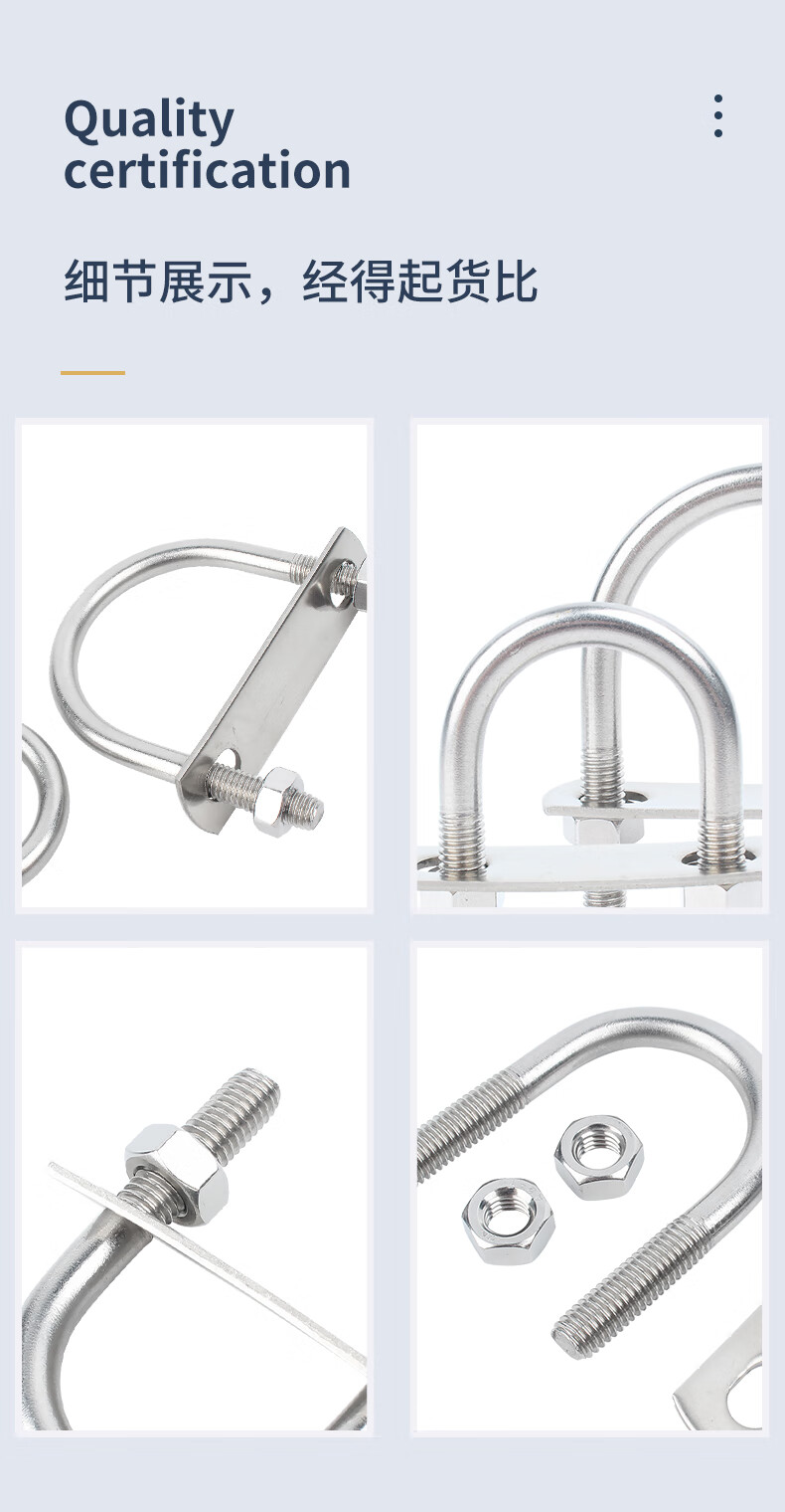 Guwanji with nut baffle set 304 stainless steel U-bolt screw U-shaped card U-shaped pipe clamp fixed buckle ride M8x42 2 sets