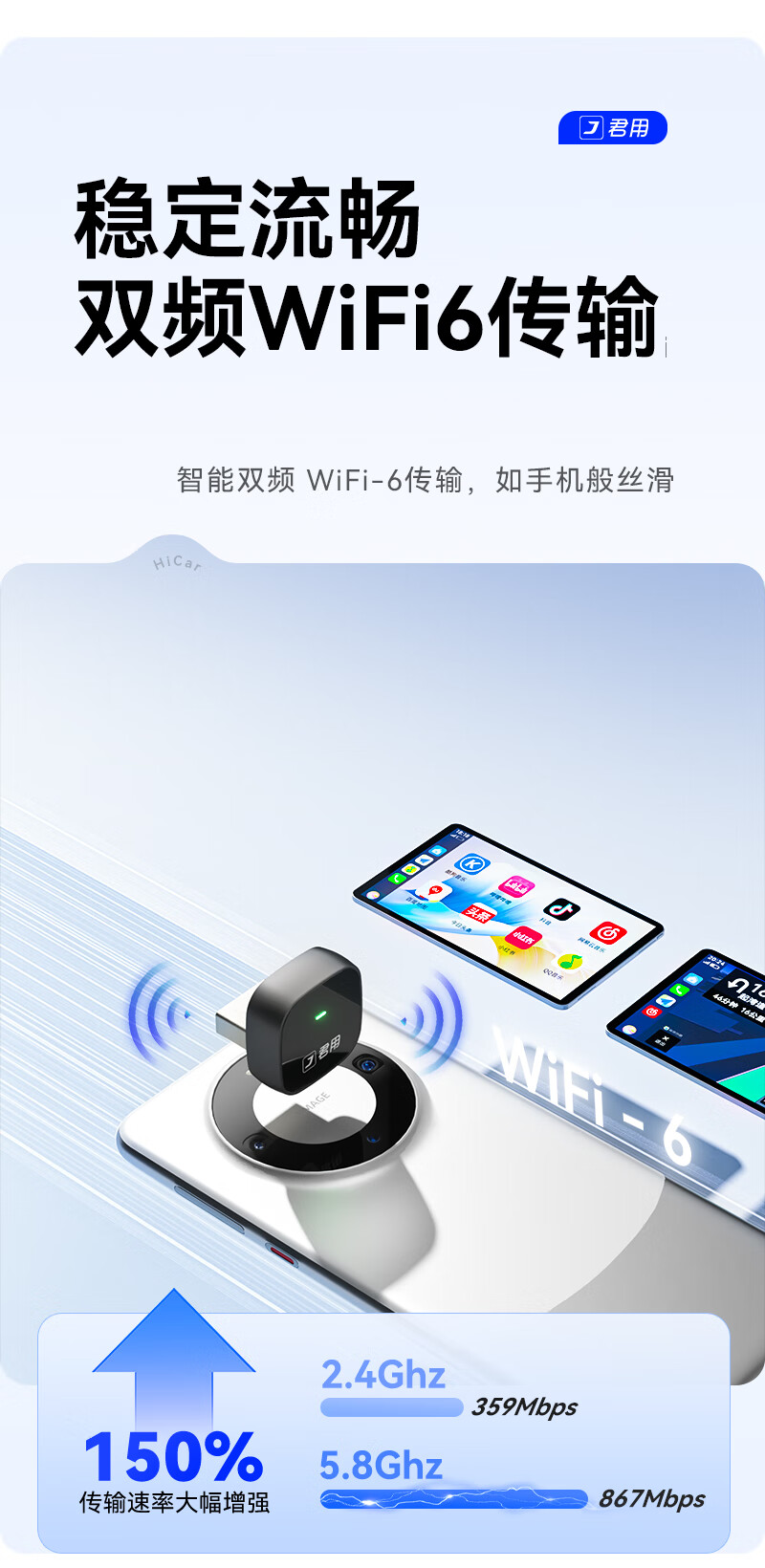 Junyong Huawei HiCar Internet Box is suitable for BMW, Audi, Volkswagen, Mercedes-Benz, Honda CarLife, car navigation and music box, P3S USB model, JD Logistics, customer service model + mobile phone