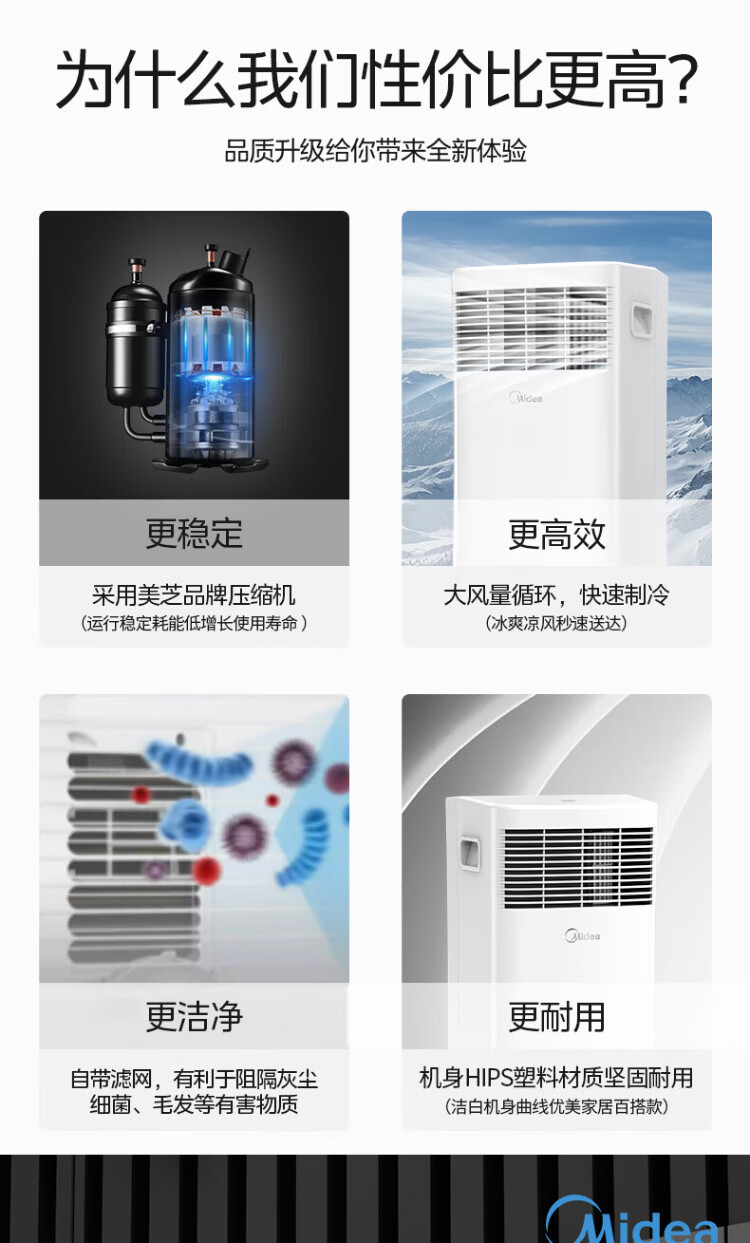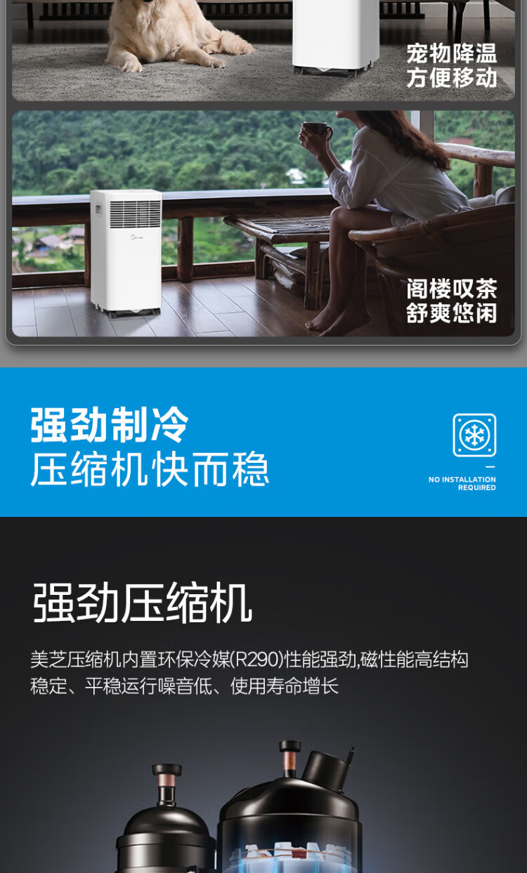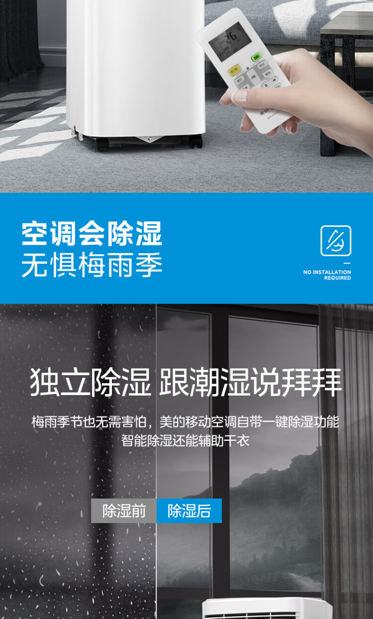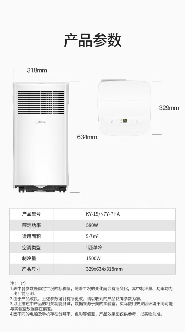 Midea mobile air-conditioning and refrigeration all-in-one home vertical single-cooling one-horsepower outdoor air conditioner small 1-horsepower light-sound energy-saving rental house kitchen installation-free compressor refrigeration fan large 1.5-horsepower single cooling KY-35/N1Y-PD3