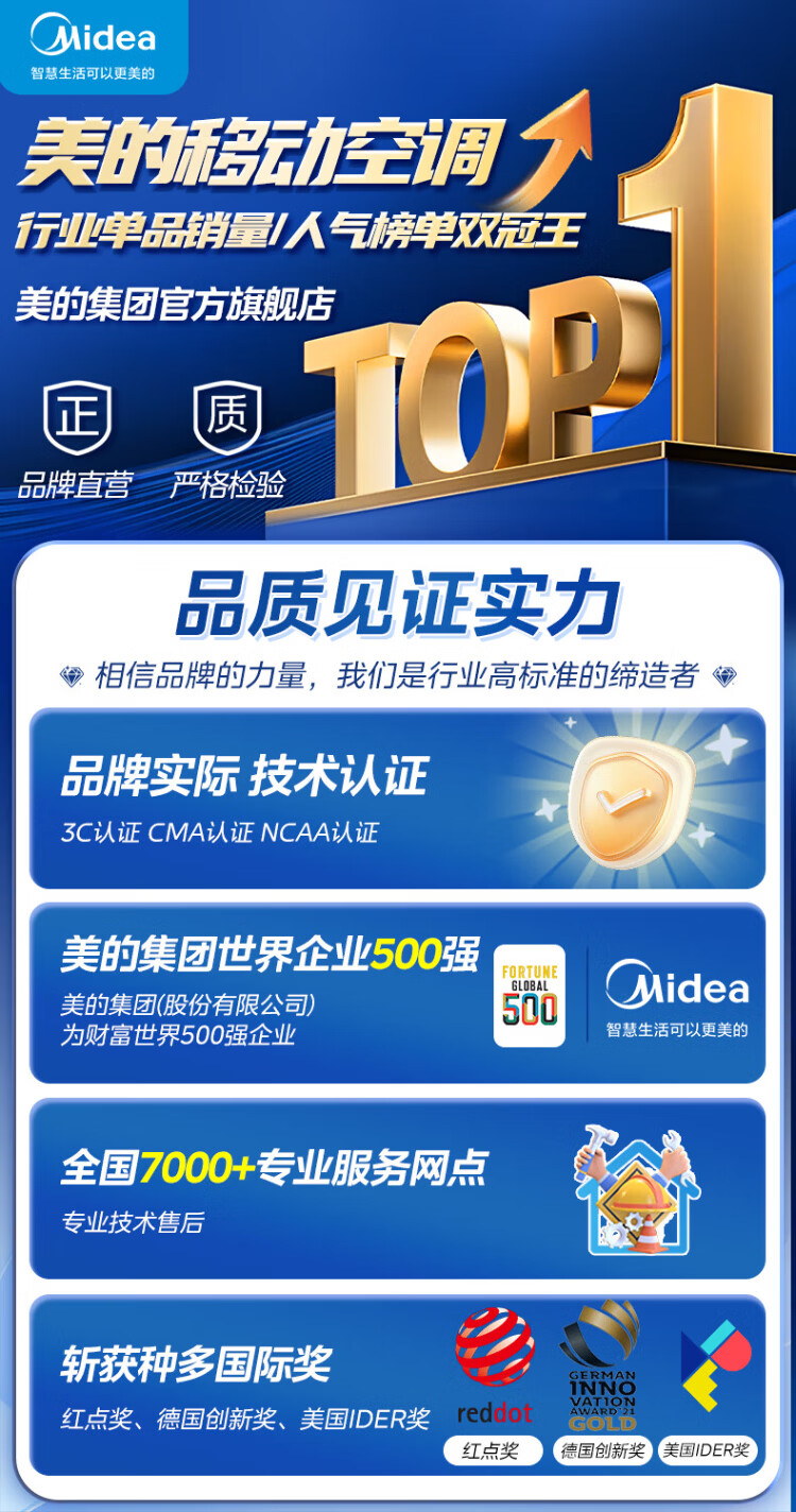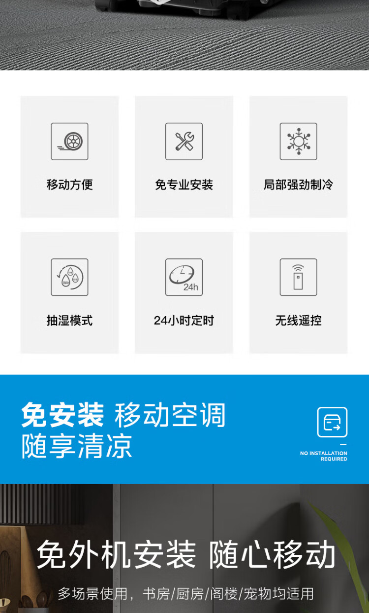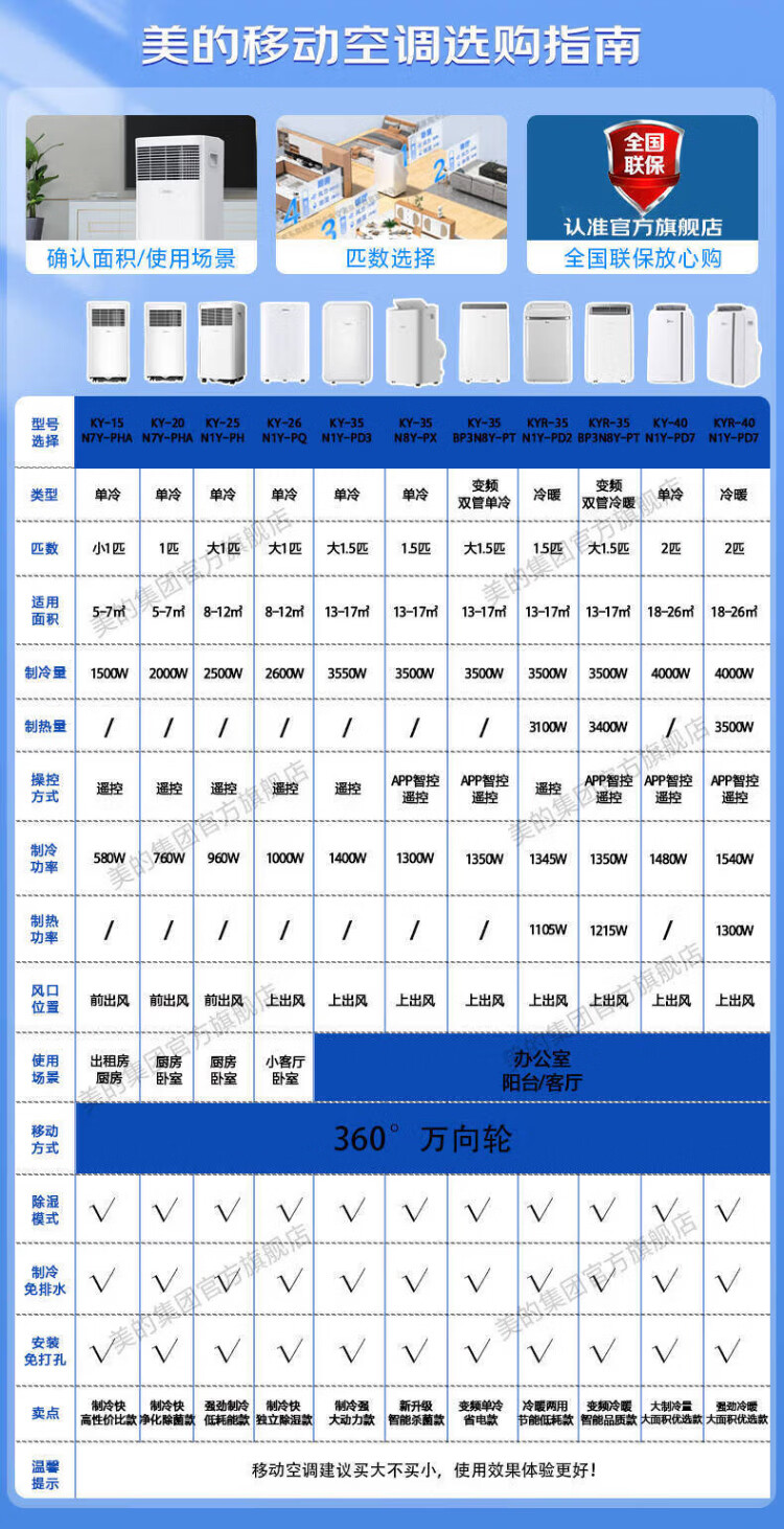 Midea mobile air-conditioning and refrigeration all-in-one home vertical single-cooling one-horsepower outdoor air conditioner small 1-horsepower light-sound energy-saving rental house kitchen installation-free compressor refrigeration fan large 1.5-horsepower single cooling KY-35/N1Y-PD3