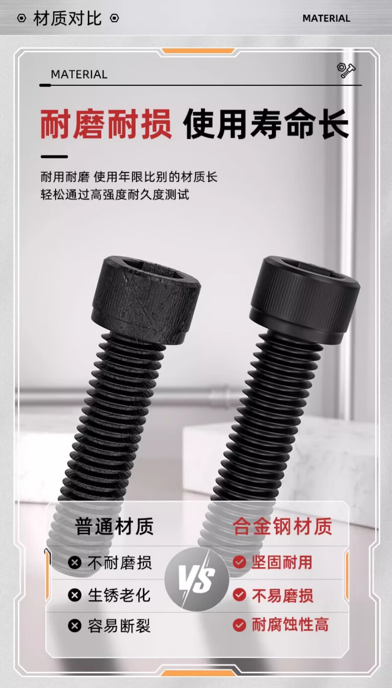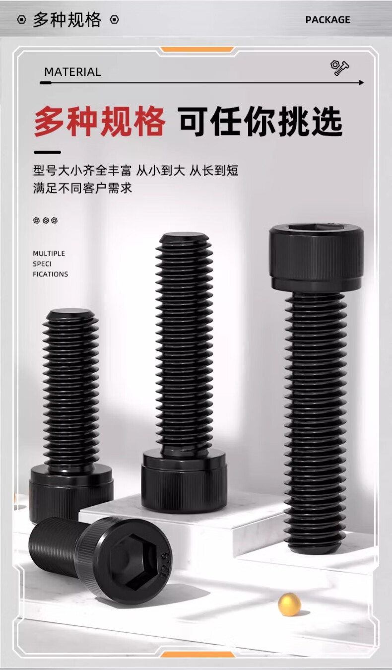 Tianzhuo Hardware Grade 12.9 cup head hexagonal socket screws cylindrical head screws full thread high strength black hexagon socket bolts national standard M6*16-20 pieces