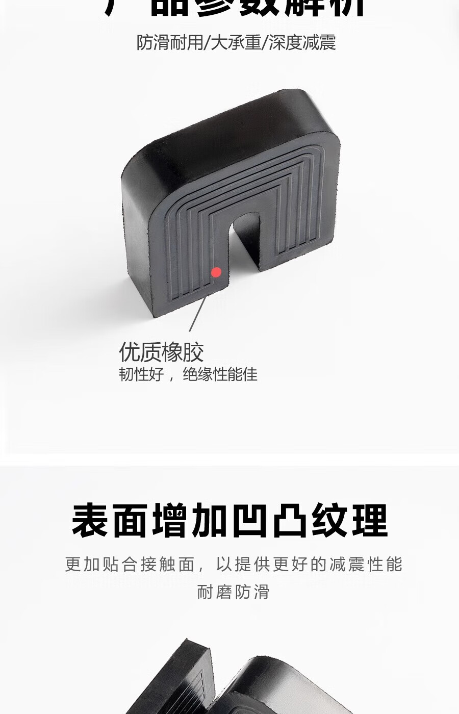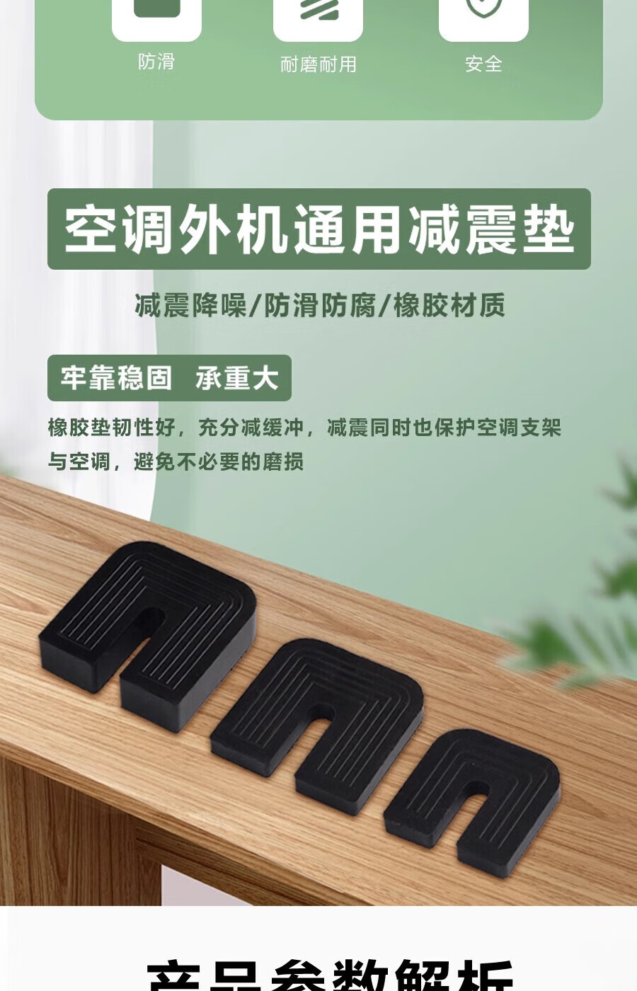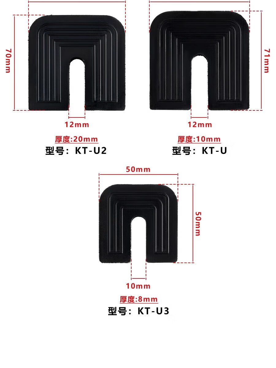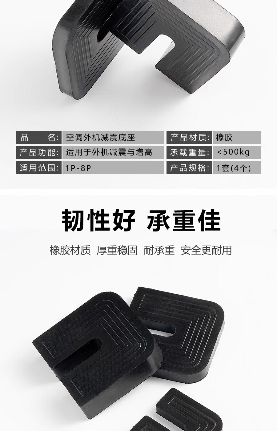 Gongtu universal air conditioner outdoor unit bracket shock-absorbing pad buffer sound insulation rubber block U-shaped machine foot pad anti-slip, shockproof and noise reduction 1 cm thick for 1 to 12 HP air conditioners 1 set of 4 pcs