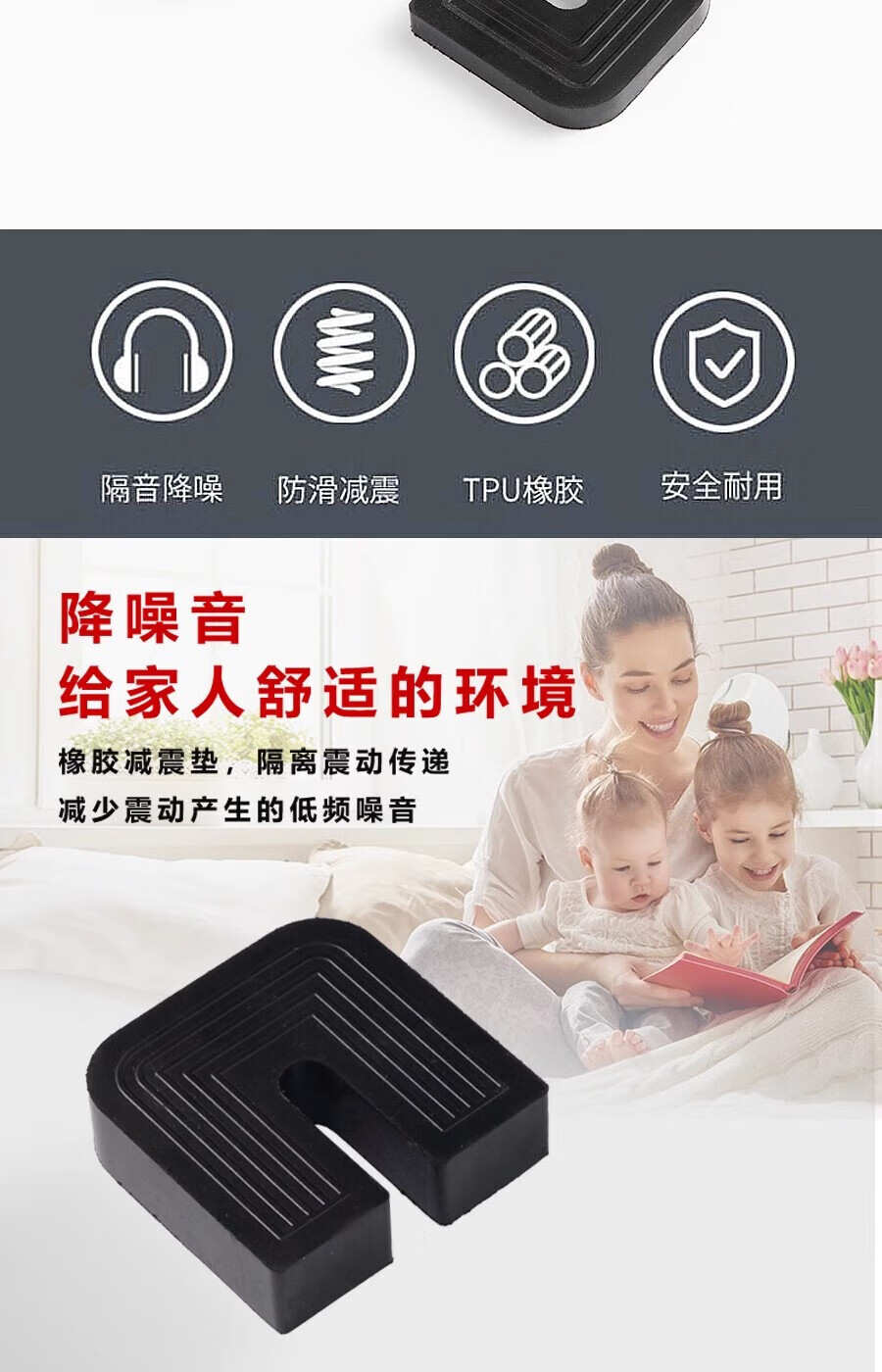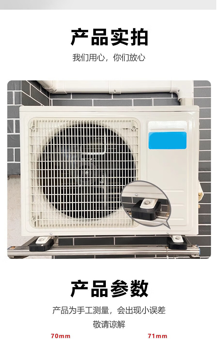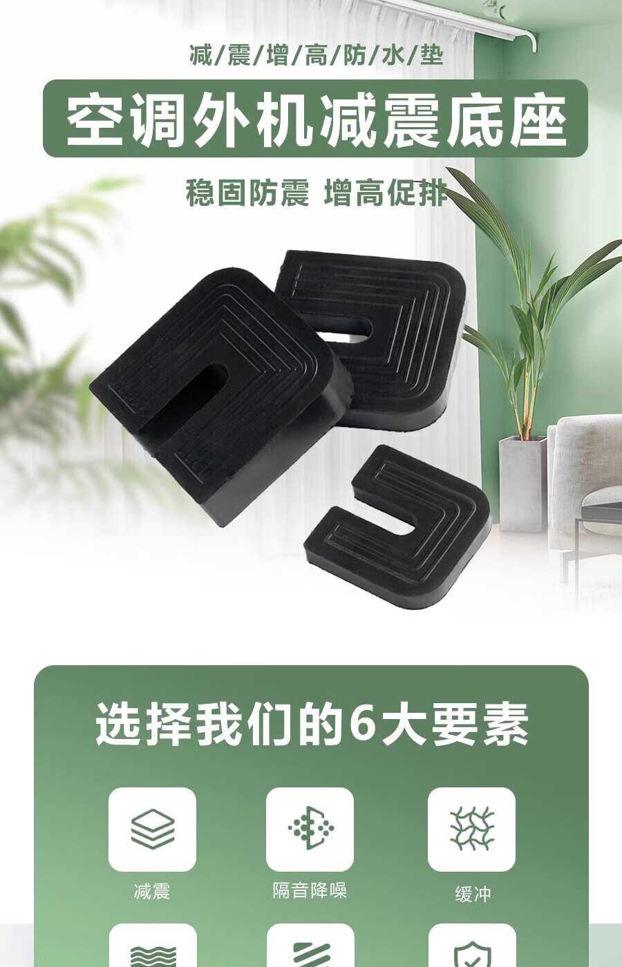 Gongtu universal air conditioner outdoor unit bracket shock-absorbing pad buffer sound insulation rubber block U-shaped machine foot pad anti-slip, shockproof and noise reduction 1 cm thick for 1 to 12 HP air conditioners 1 set of 4 pcs