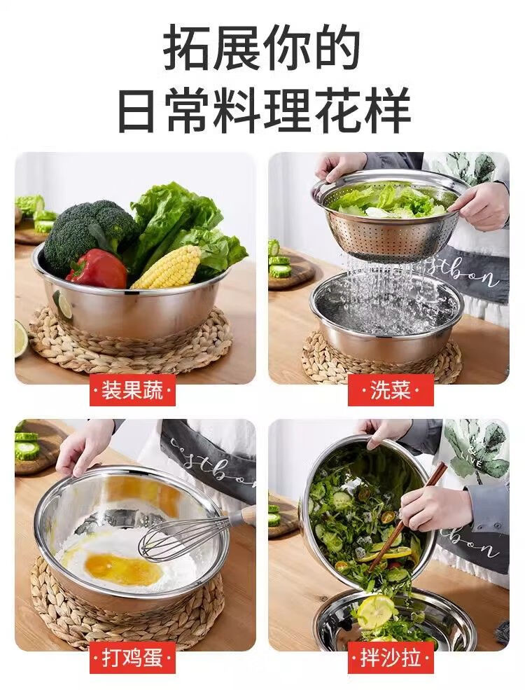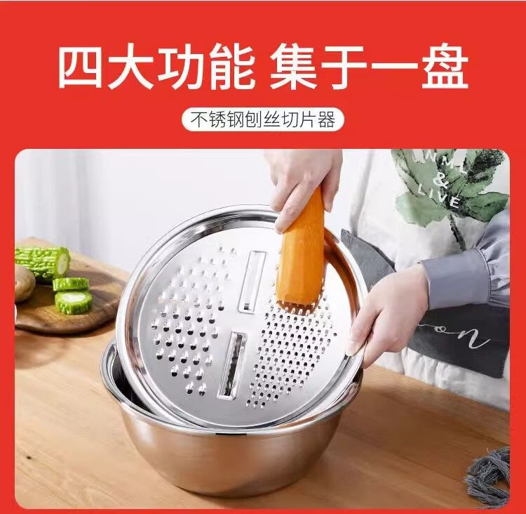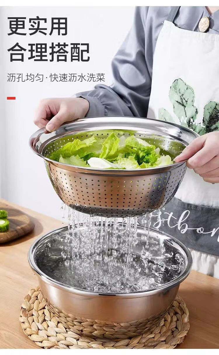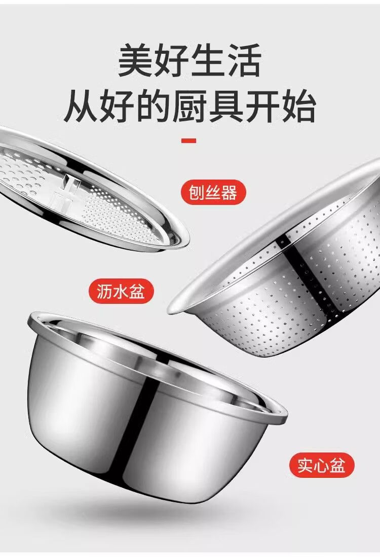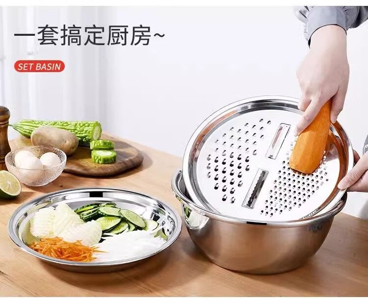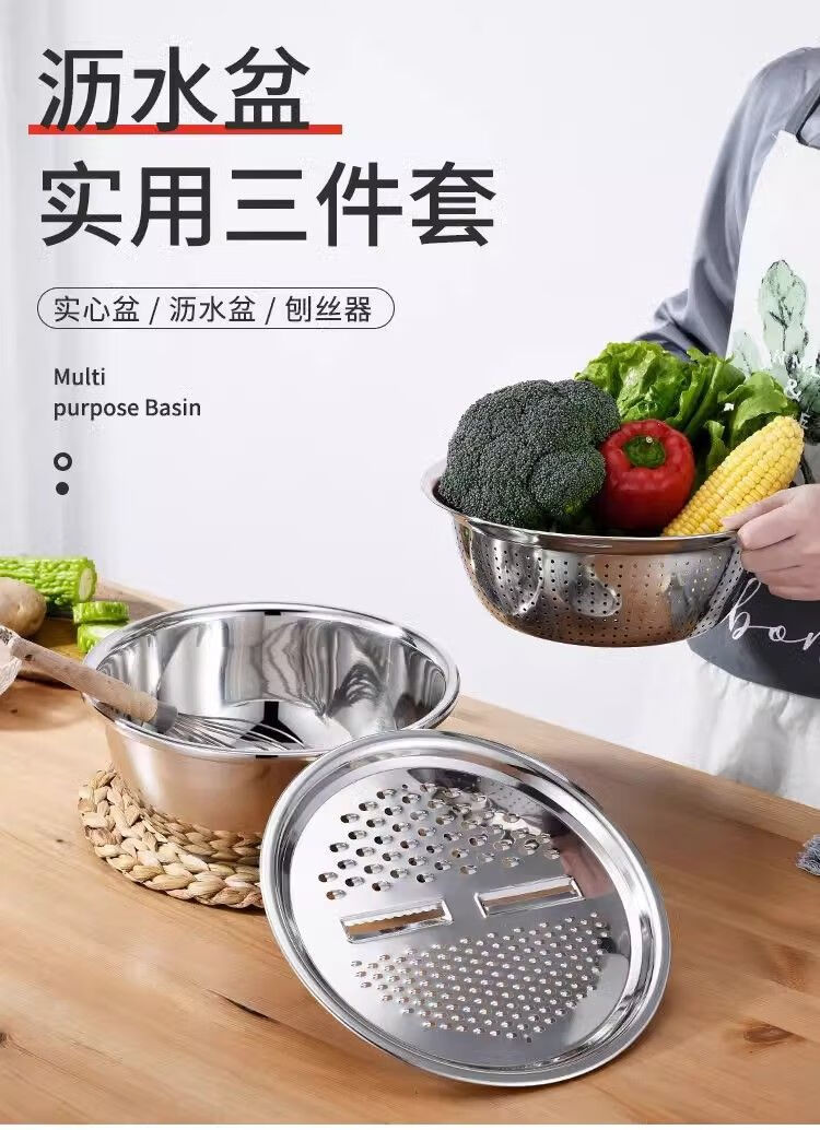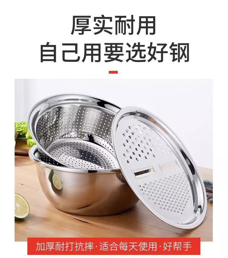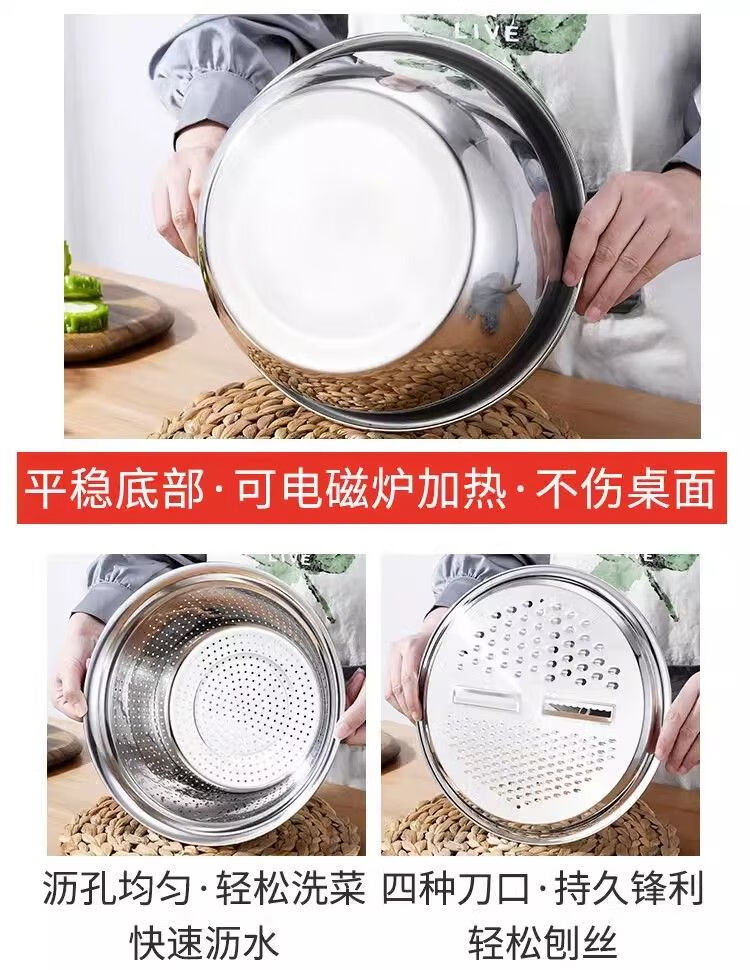 Yihaoya vegetable cutting basin multi-functional stainless steel three-piece set vegetable cutting artifact grating plate vegetable radish grating grater 30cm wash basin + drain basin + grating plate