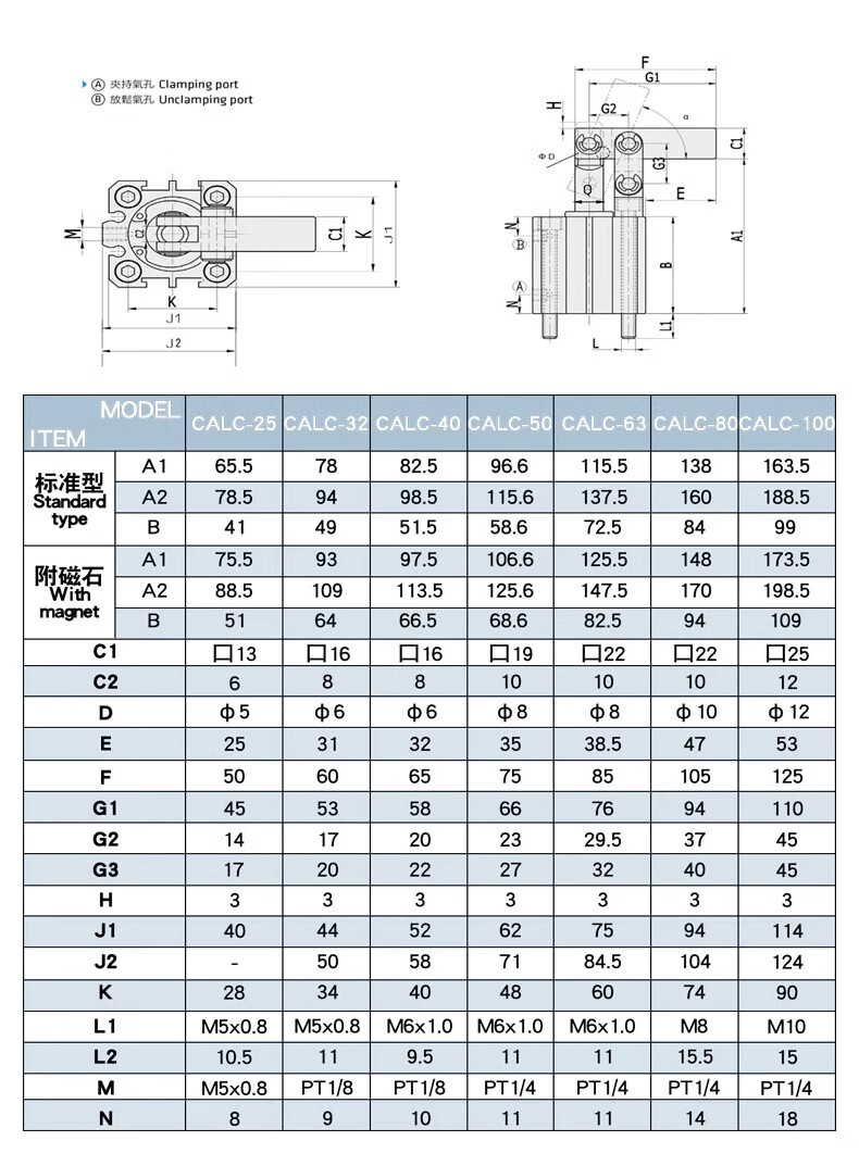Lever cylinder ALC/JGL/MGC25-20/32-20/40/50 jig mold pressing cylinder ALC40 standard model