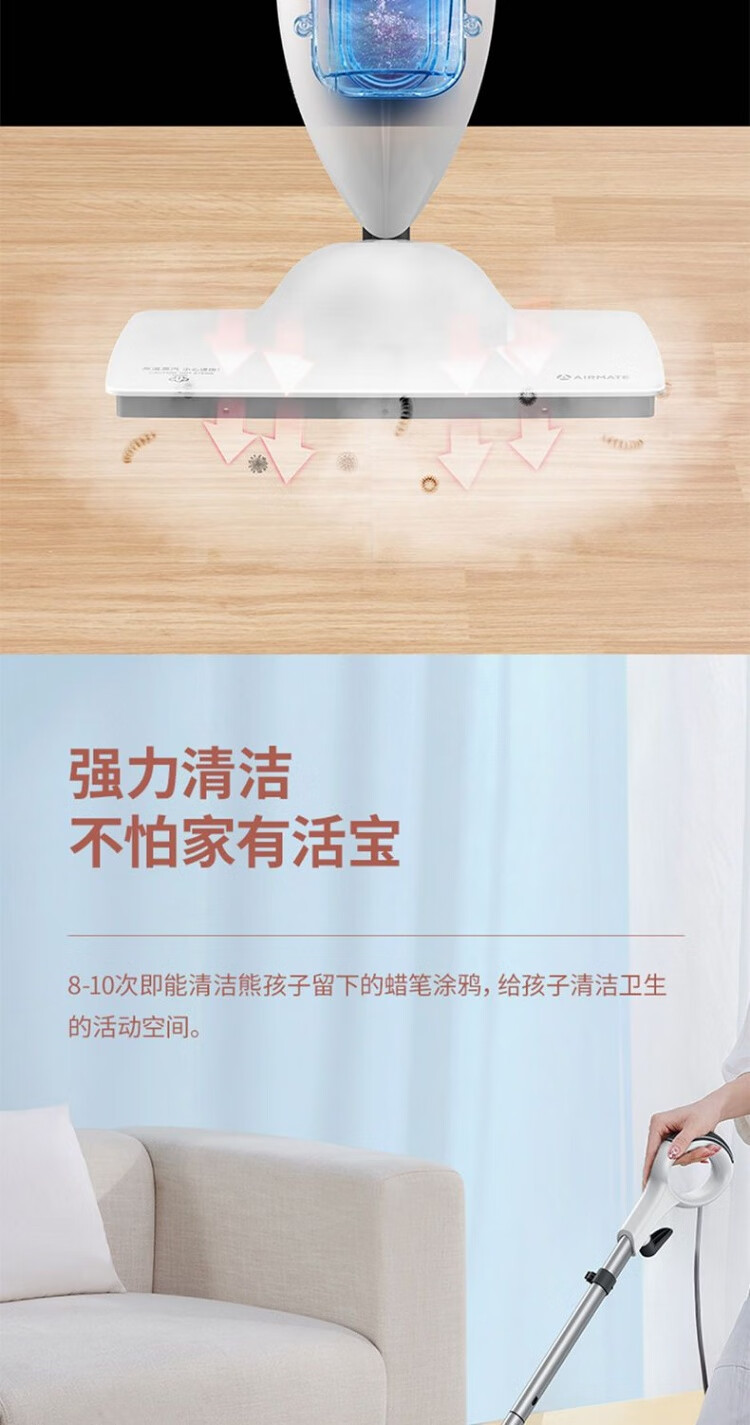 Airmate Airmate high-temperature steam mop household sweeping and cleaning non-wireless mite removal and sterilization multi-functional mopping LMS01 Airmate high-temperature steam mop cleaning floor sweeping and mite removal