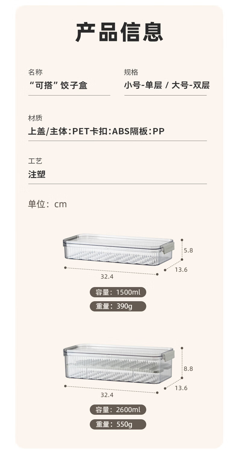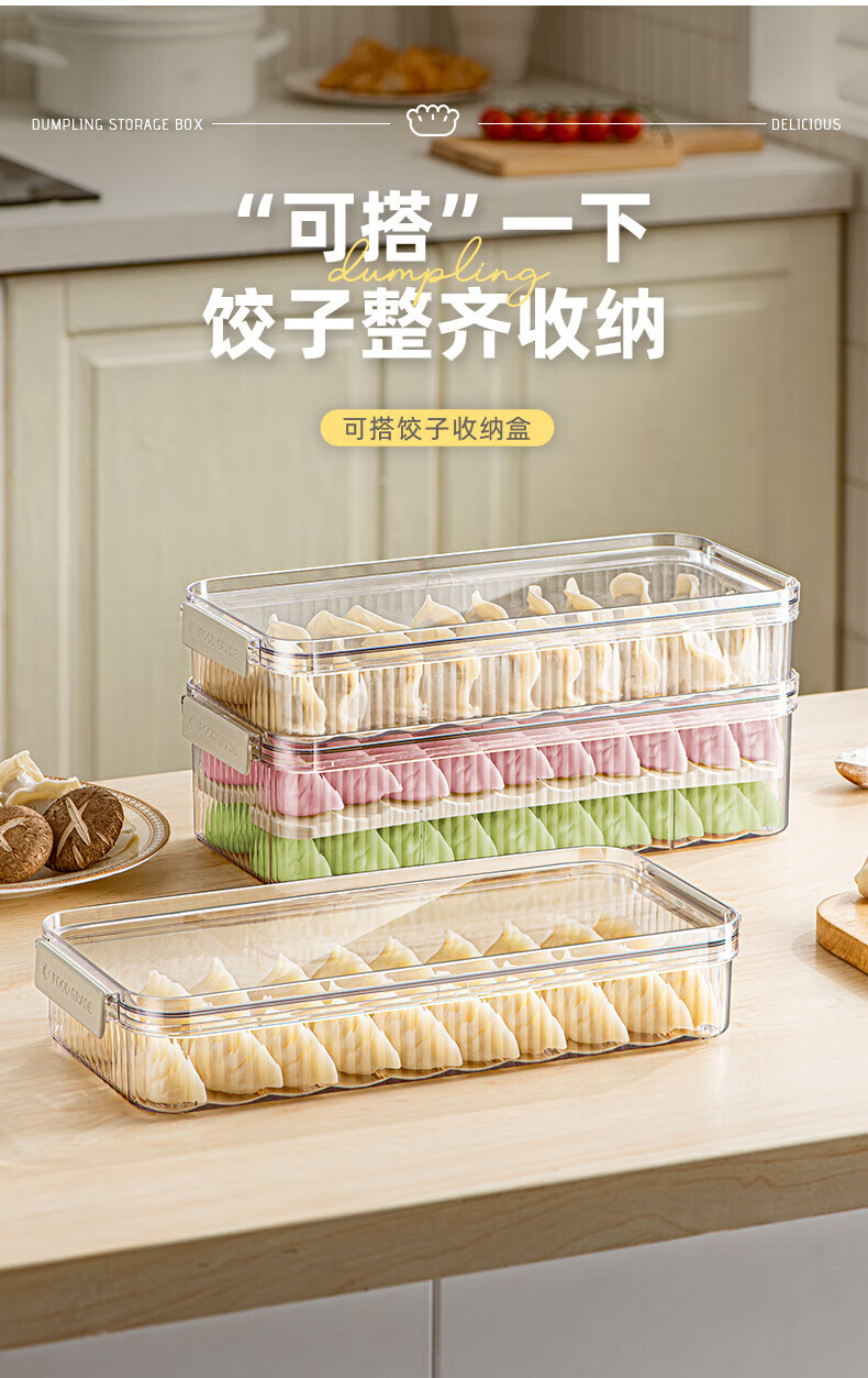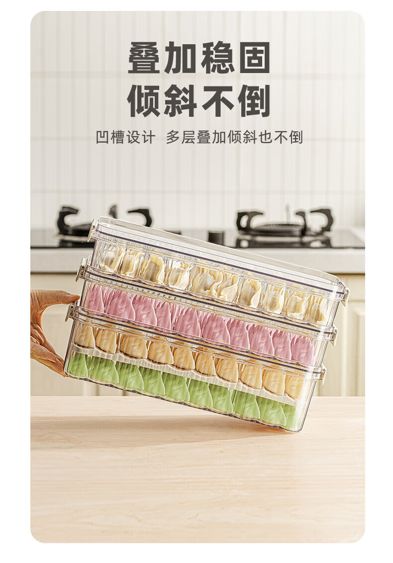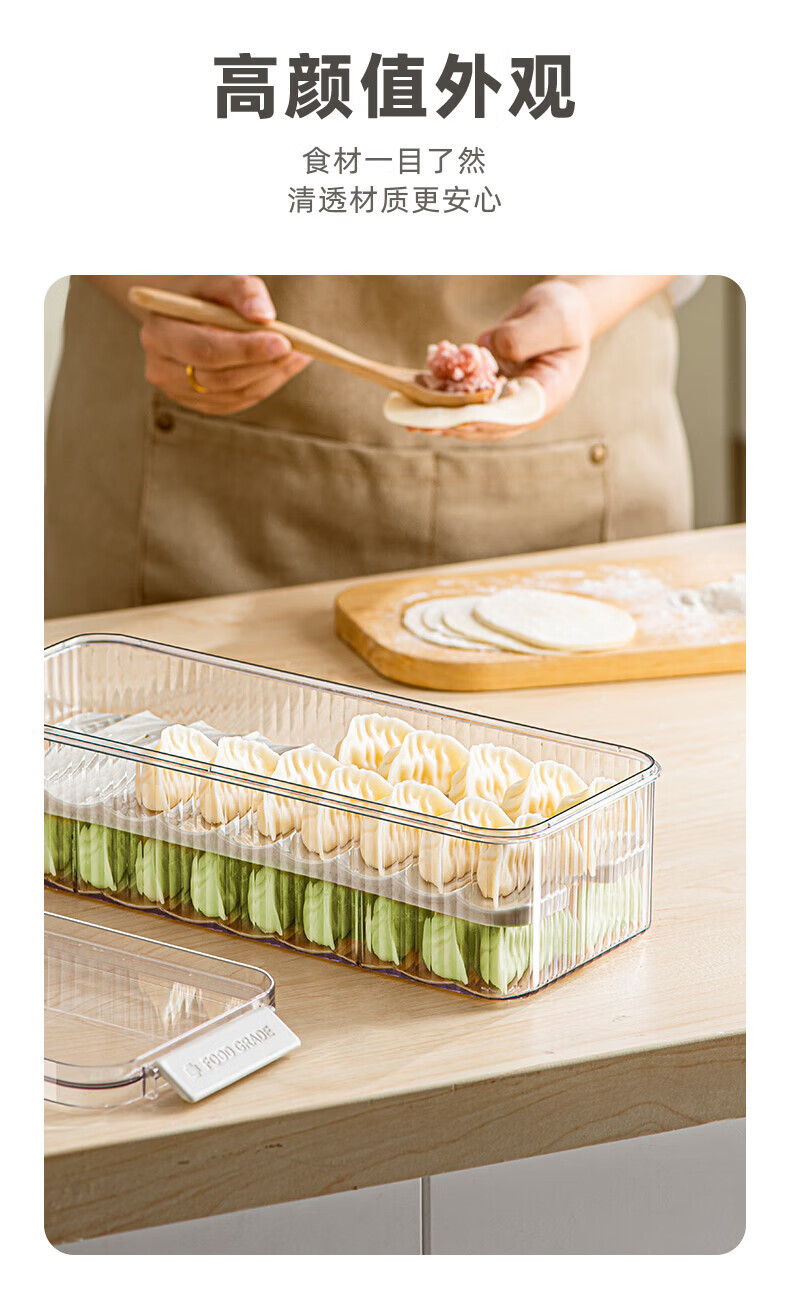 Modern housewife dumpling box home kitchen food grade quick-frozen frozen sealed crisper special wonton storage box 2 layers 2600ml transparent white double layer dumpling box