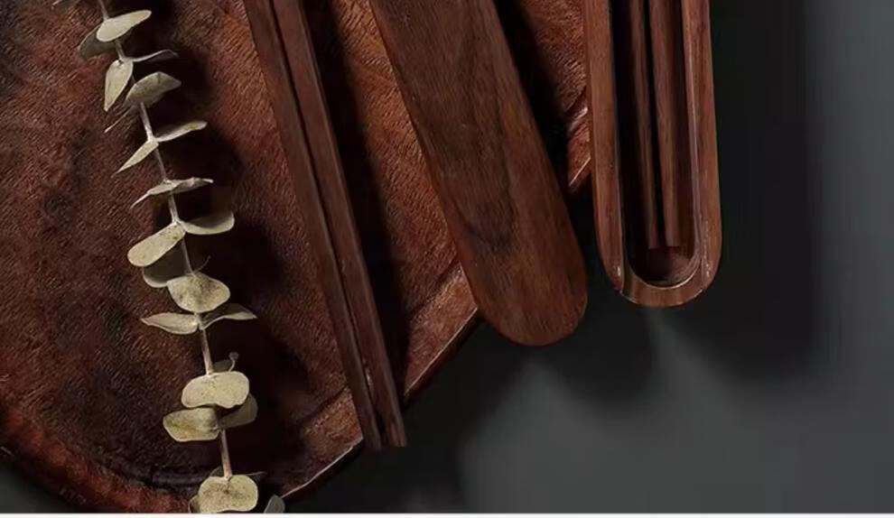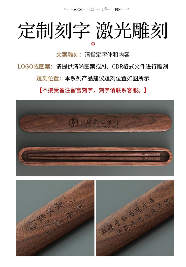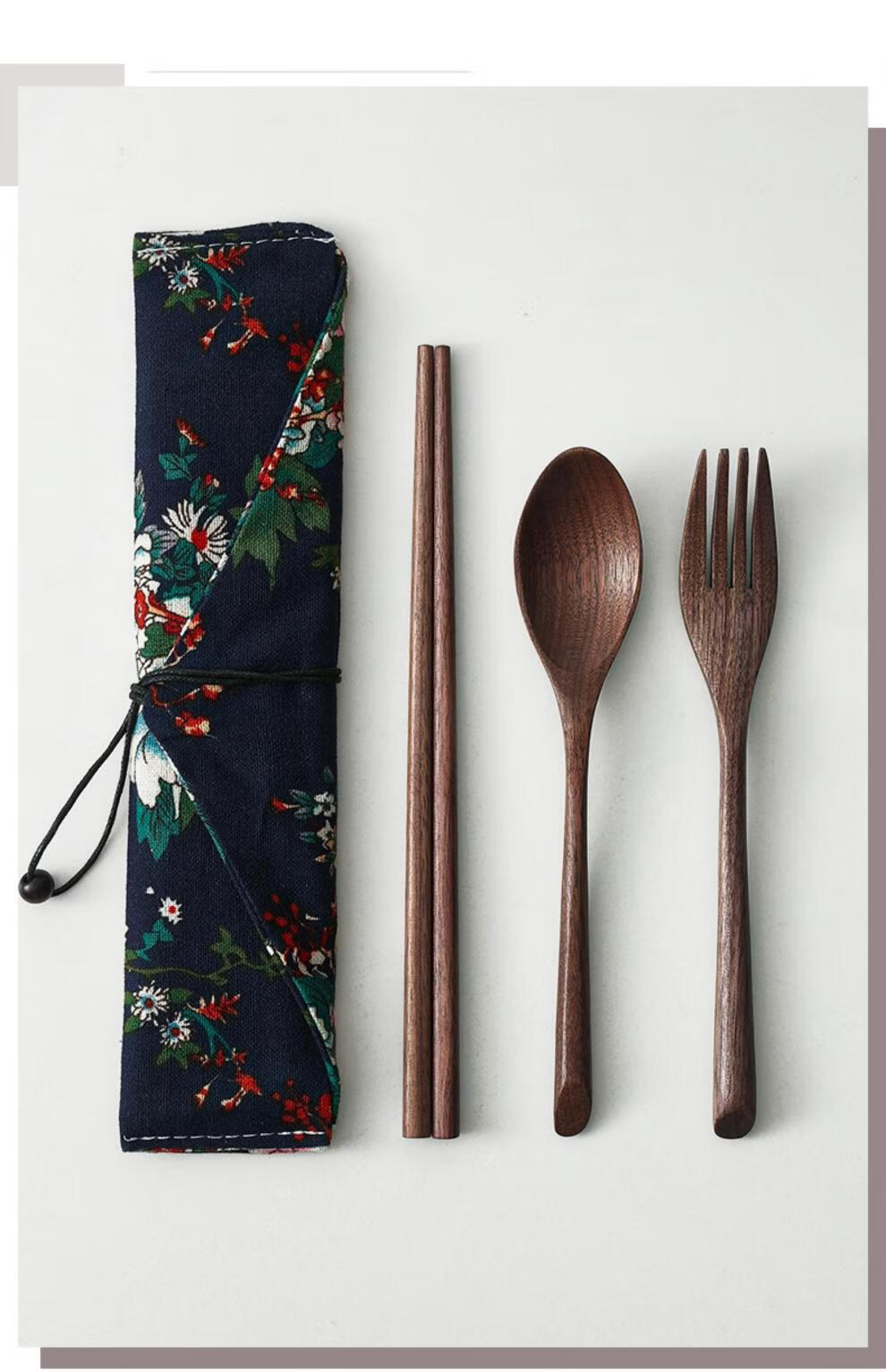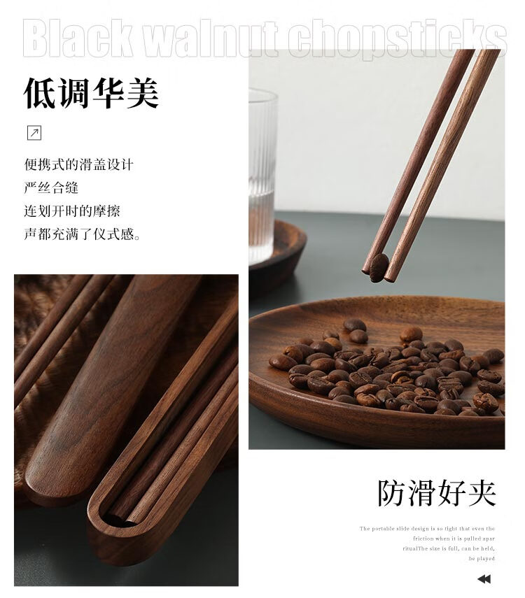 ZISIZ walnut chopsticks and spoon set portable tableware three-piece set single solid wood chopstick storage box customized walnut chopsticks + spoon + fork + ethnic cloth bag