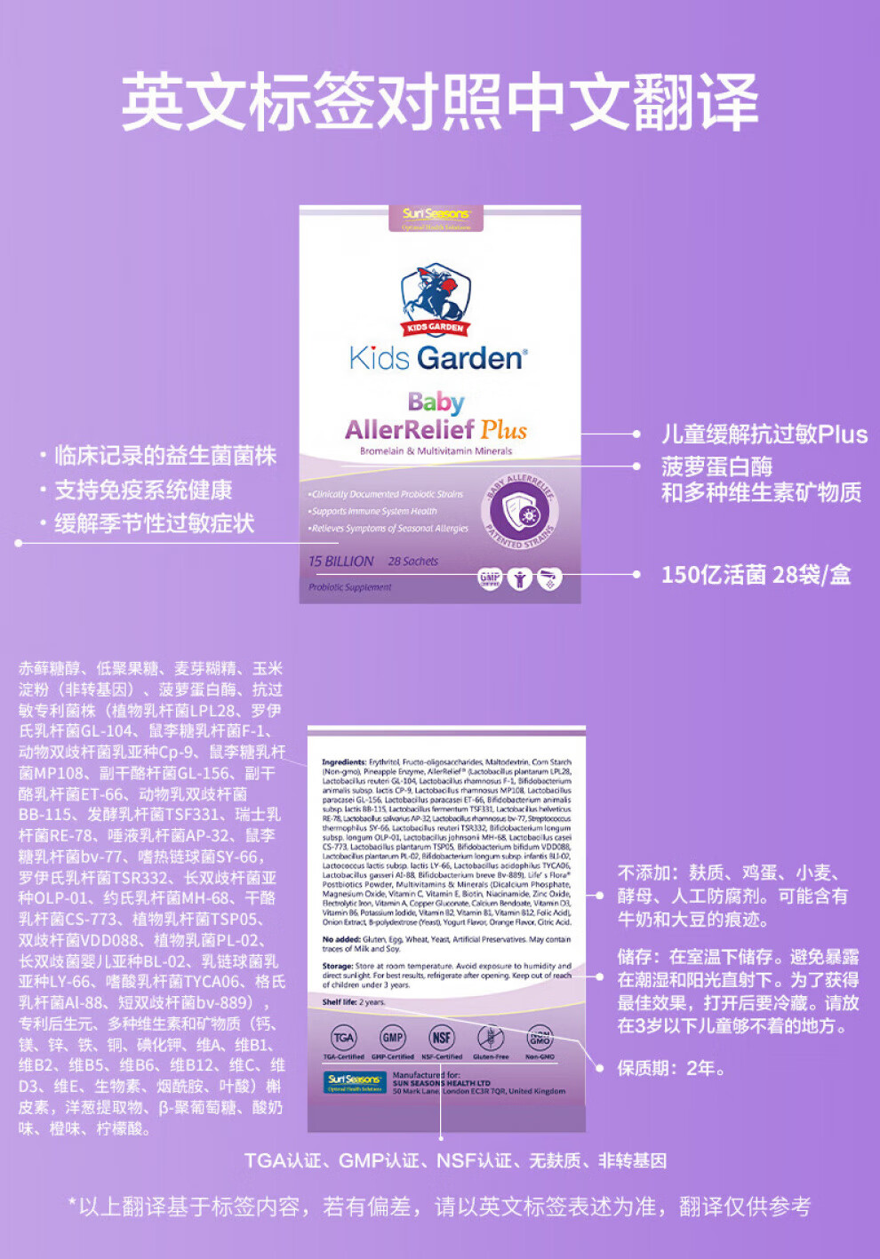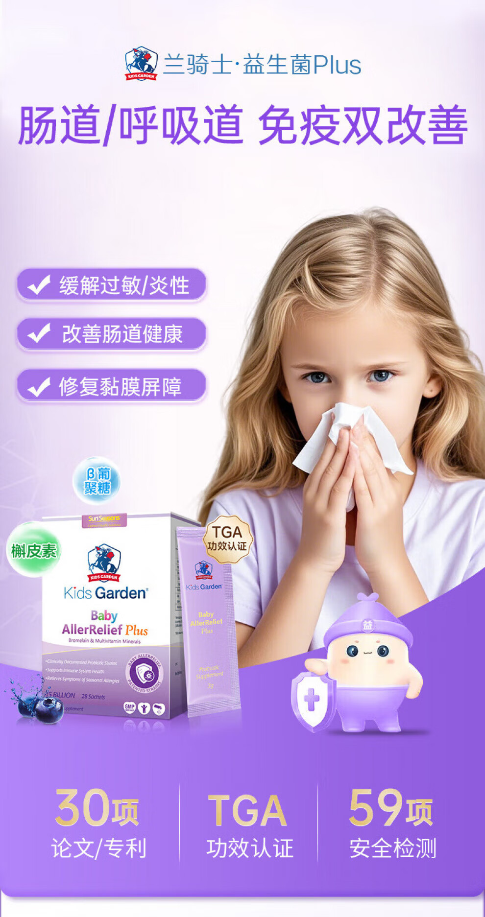 Blue Knight (sun seasons) Good Nose for infants and young children, soothing nose, anti-allergy, Blue Knight gastrointestinal conditioning compound probiotic freeze-dried powder, enhanced version to repair rhinitis and double the effect plus version, 28 bags * 1 box