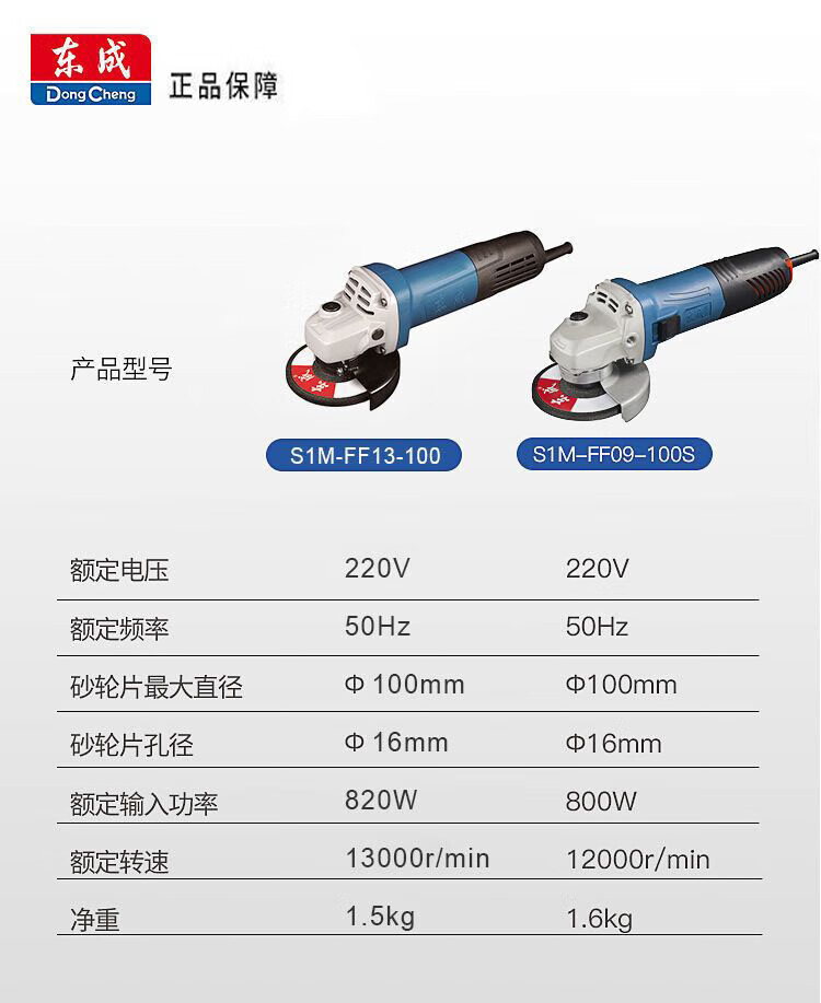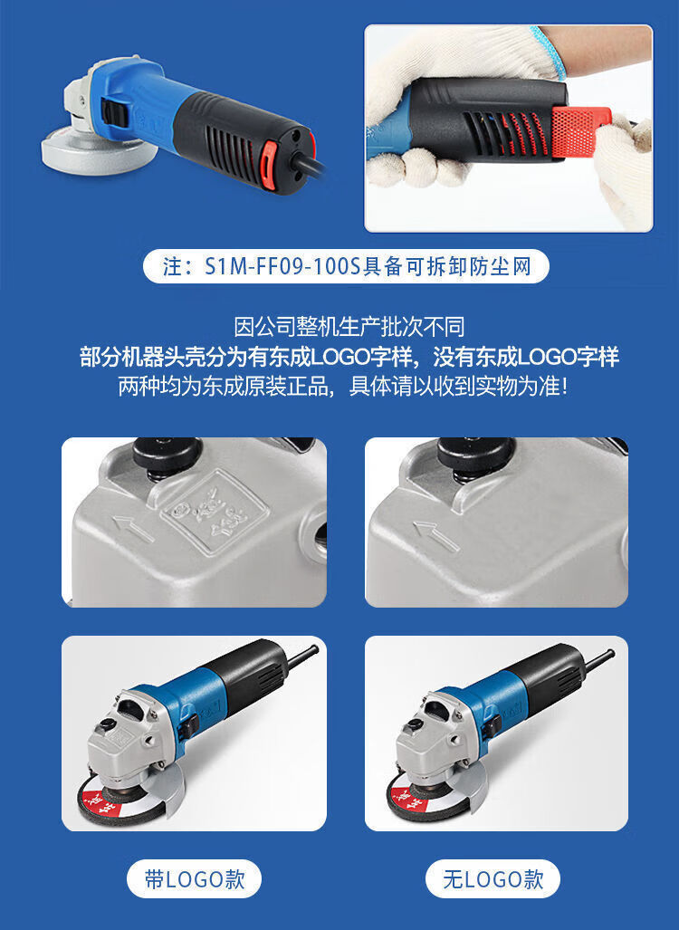Dongcheng Dongcheng angle grinder high power 800W handheld grinder polisher metal wood cutting hand grinding wheel 09-100 S1M-FF09-100S standard configuration