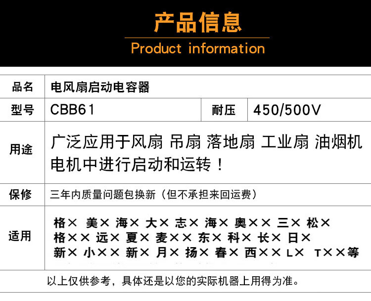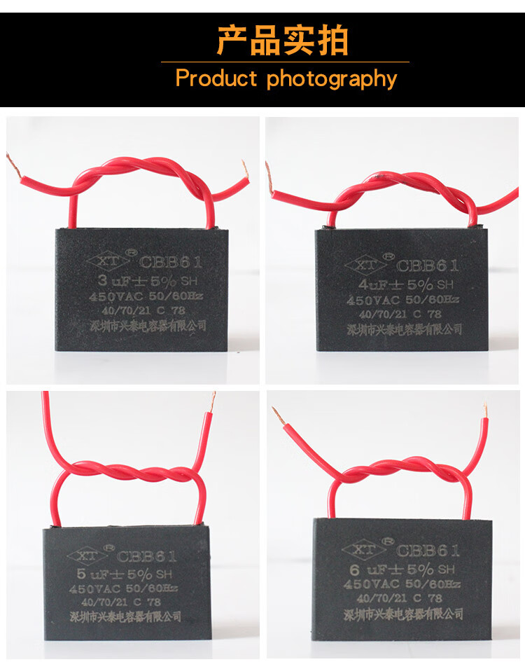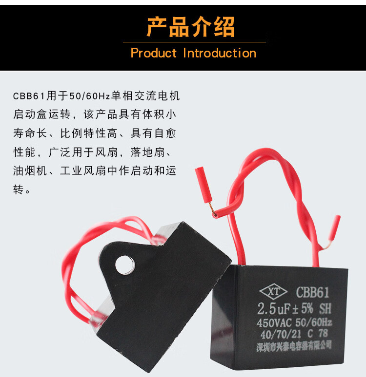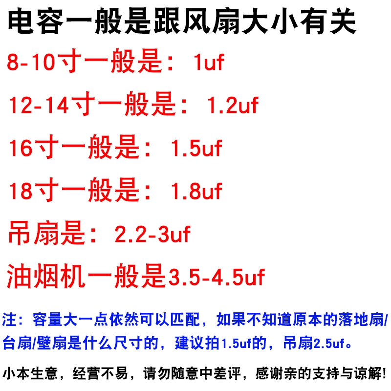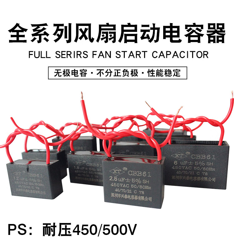 Suitable for CBB61 electric fan capacitor 0.8/1.2/1.5/2.7/3.5/4/6uf ceiling fan floor fan industrial fan 2.5uf 450V