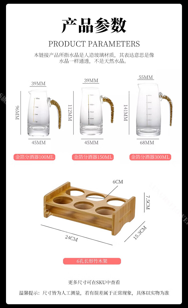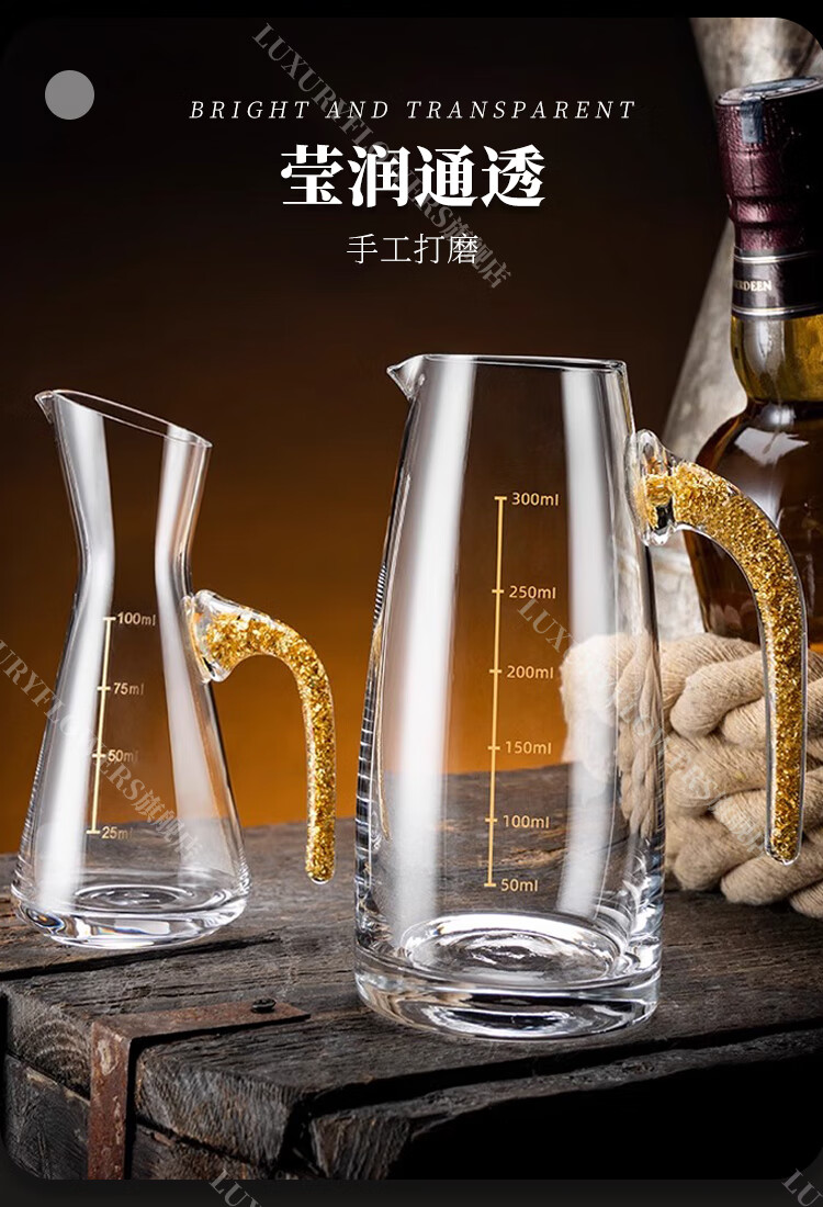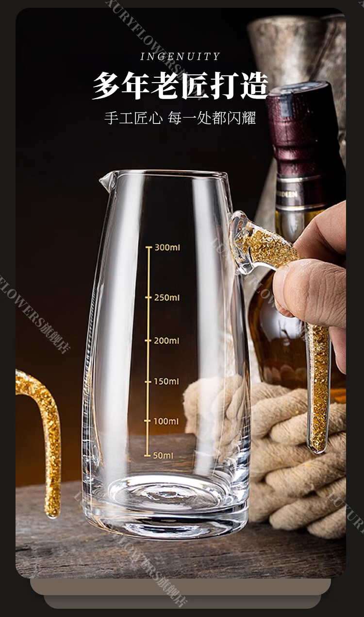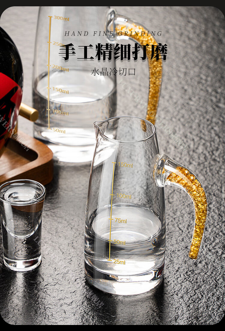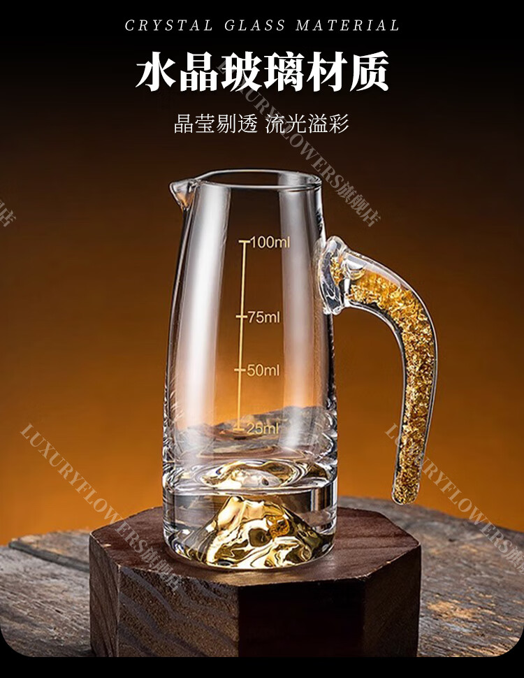 Luxury Flowers Chinese-style liquor cup dispenser household gold foil Jinshan crystal glass one-cup wine jug divider wine jug high-end seven-character blue mountain wine dispenser 300ml