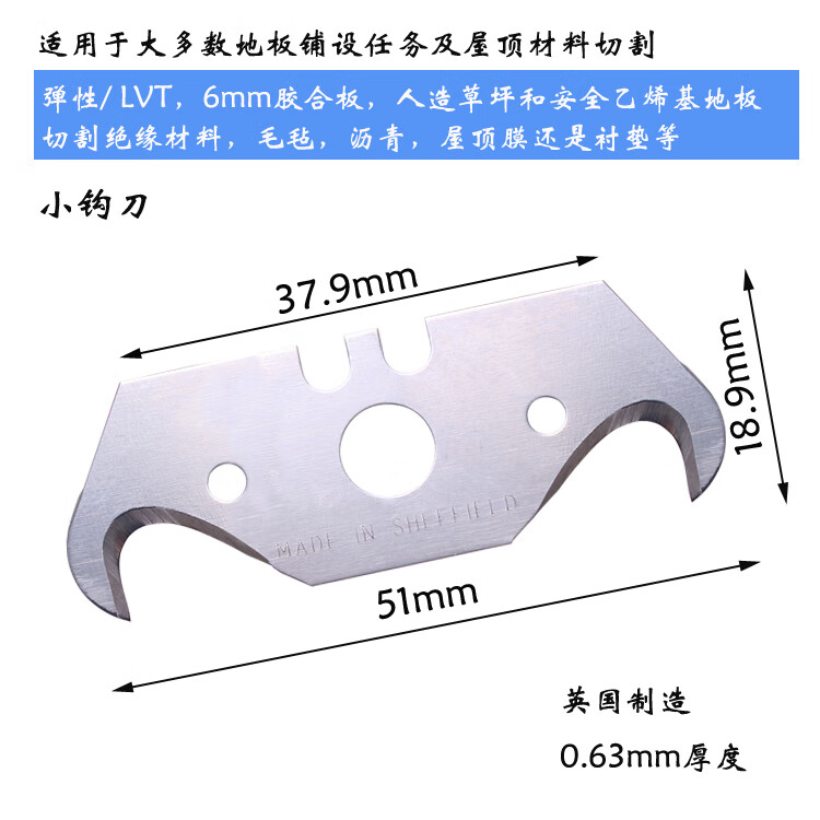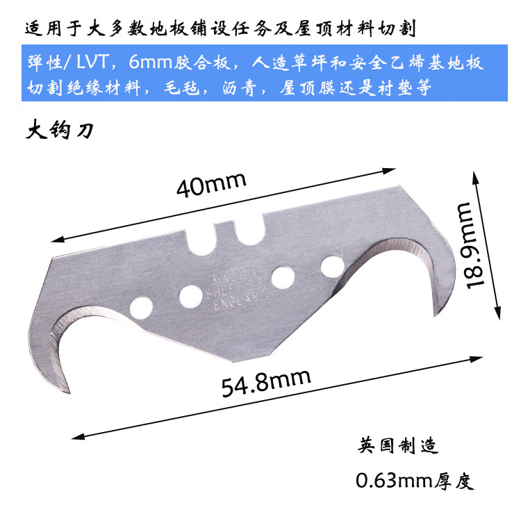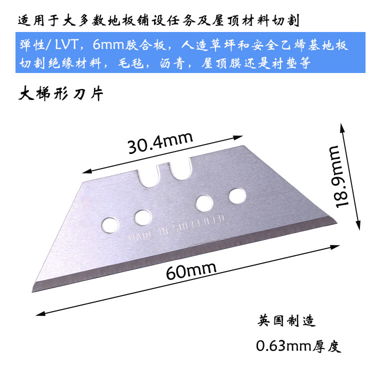Trapezoidal blade hook blade horn hook knife moon art blade dolphin knife PVC plastic floor cutting large trapezoidal blade 10 pieces