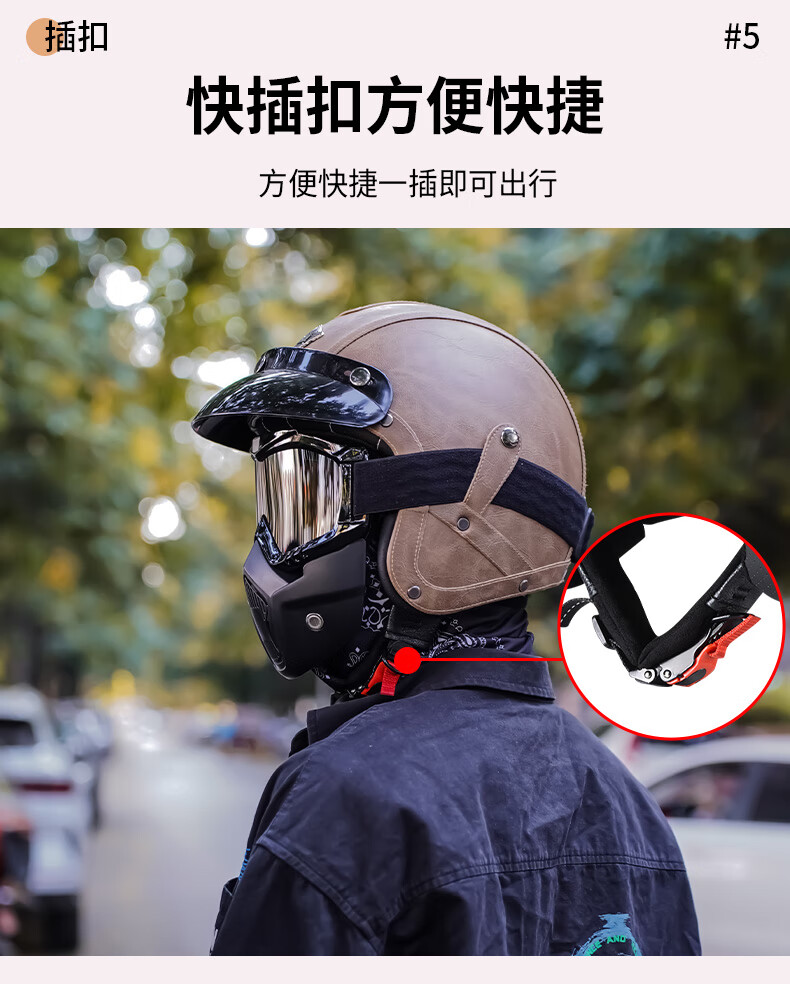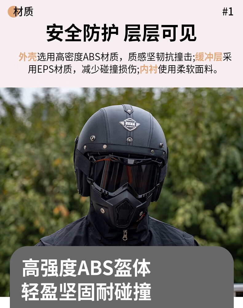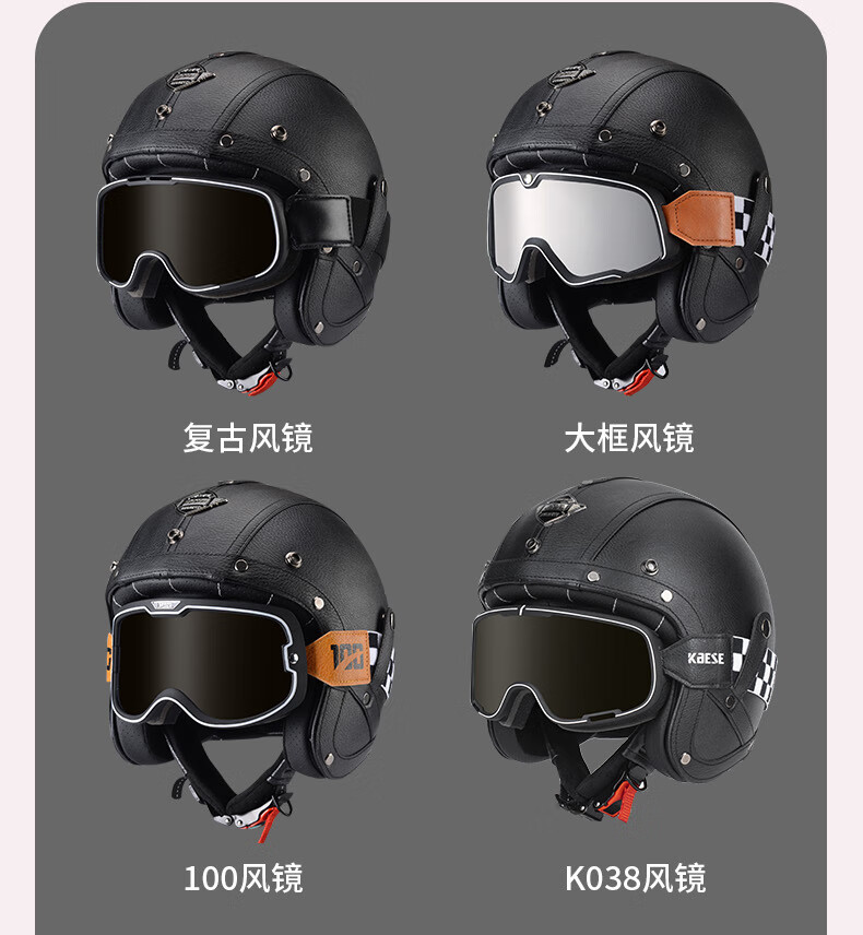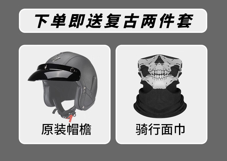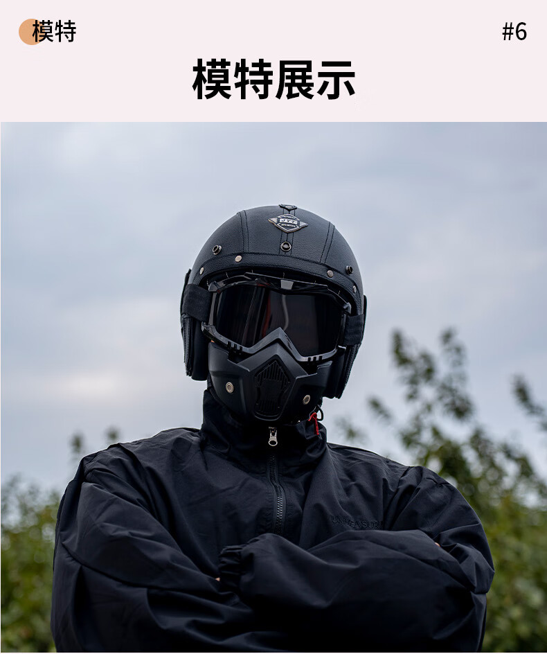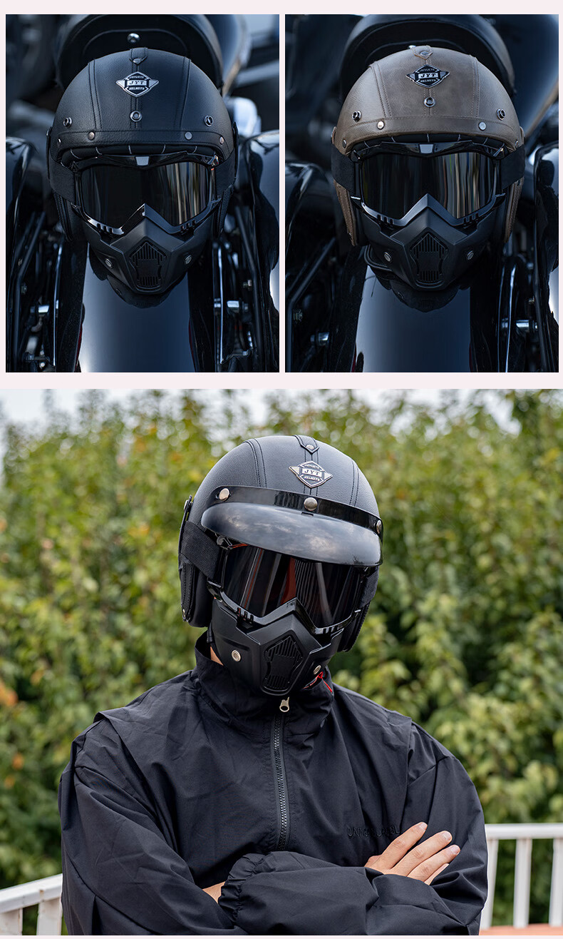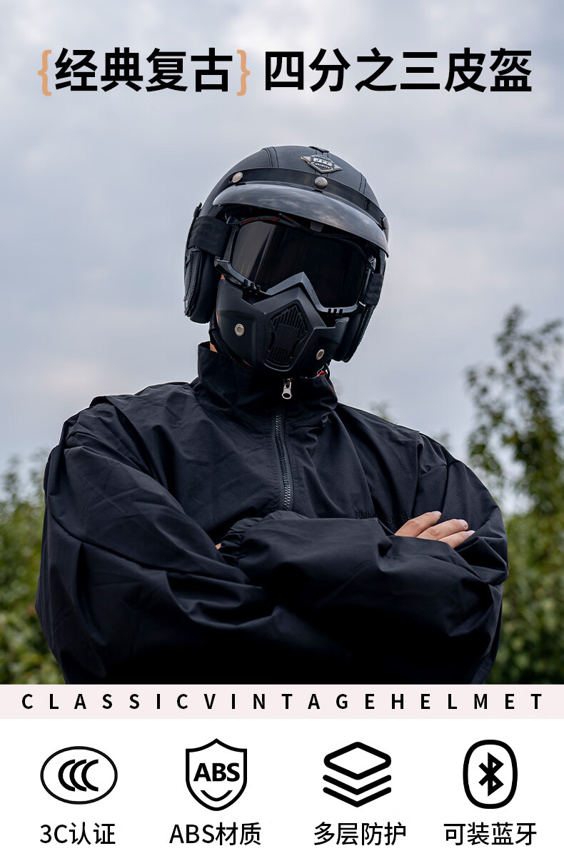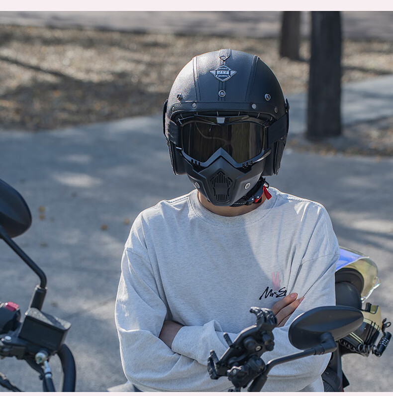C-RIDING Motorcycle Helmet Cruiser Motorcycle Retro Three-quarter Half Helmet Men's Winter Cycling Helmet Electric Vehicle Women's Safety Black with Mask L (58-59 Head Circumference)