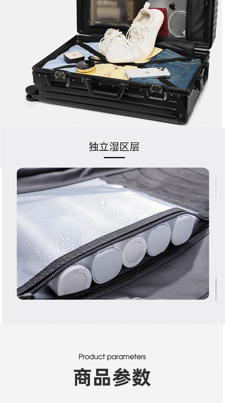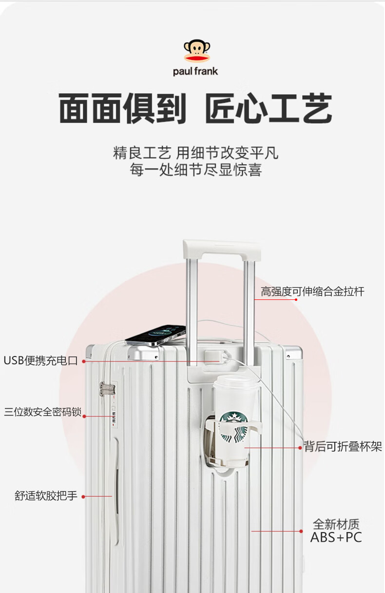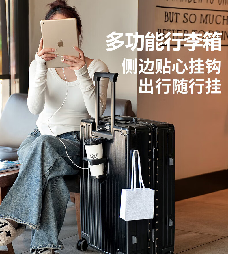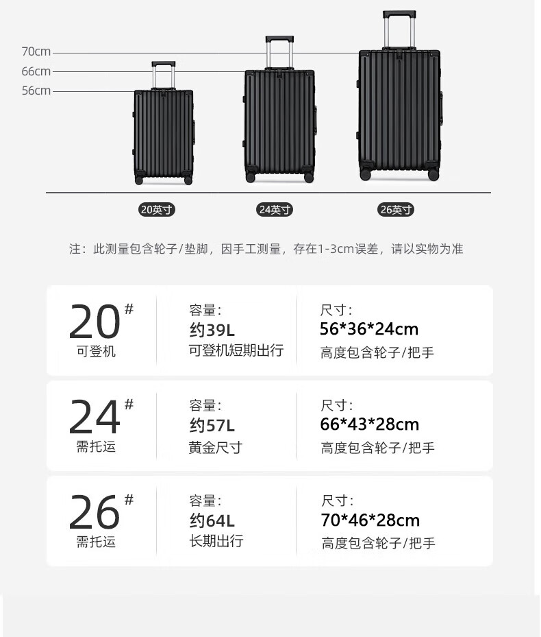 Big Mouth Monkey Trolley Case Men's Luggage Women's Light Sound Universal Wheel Aluminum Frame Suitcase Student Business Travel Zipper Password Large Capacity Case Black/Aluminum Frame 26 Inch