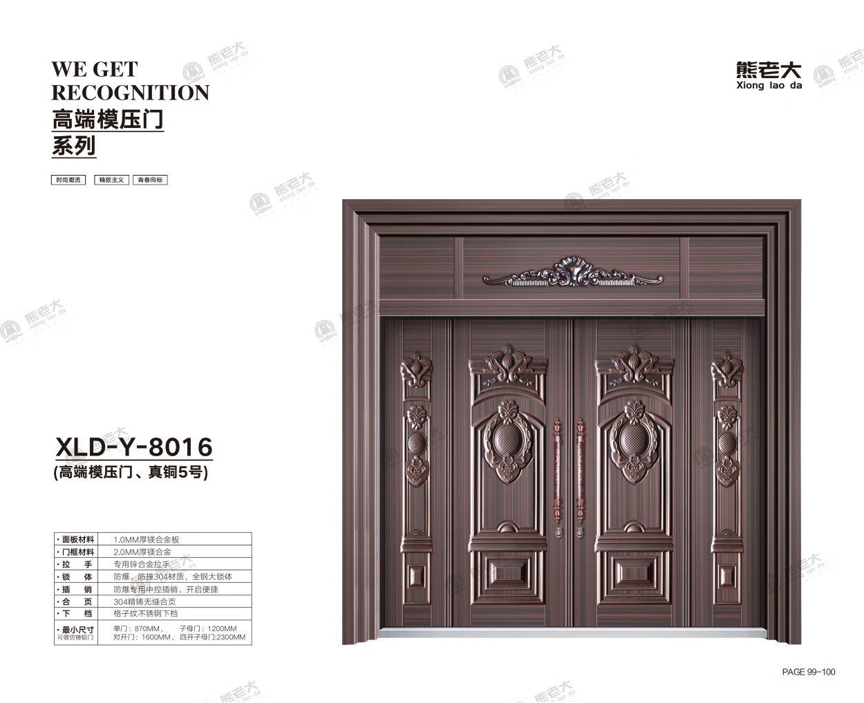 Xiongboda XLD-Y-8016 magnesium alloy villa door 1980 yuan/square meter