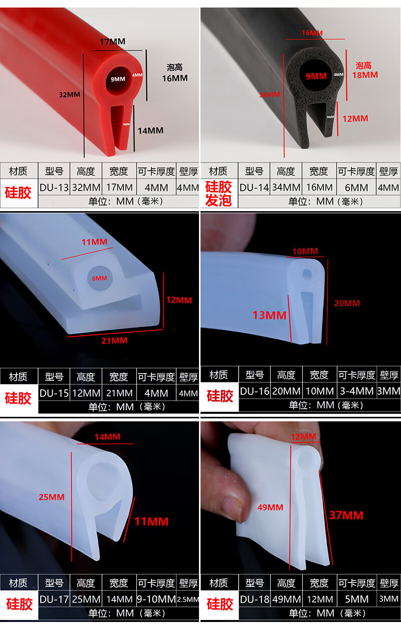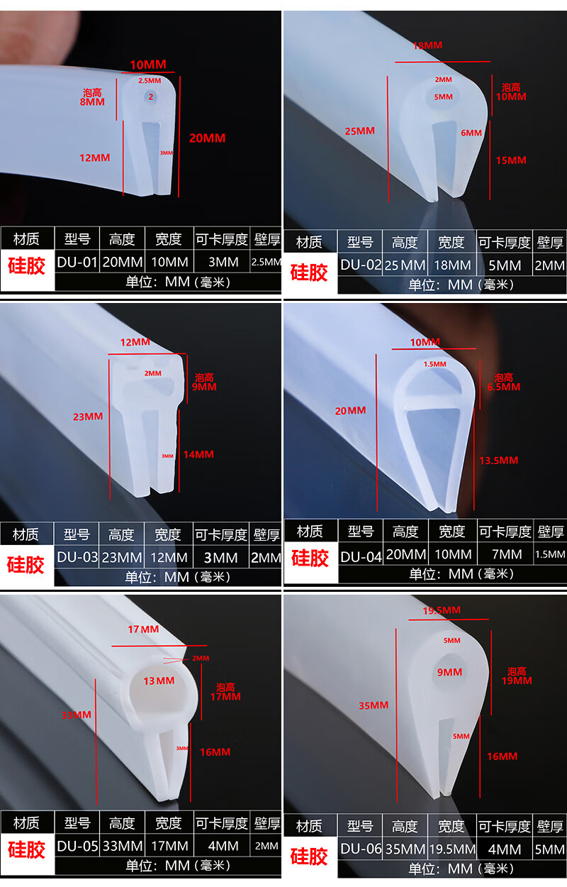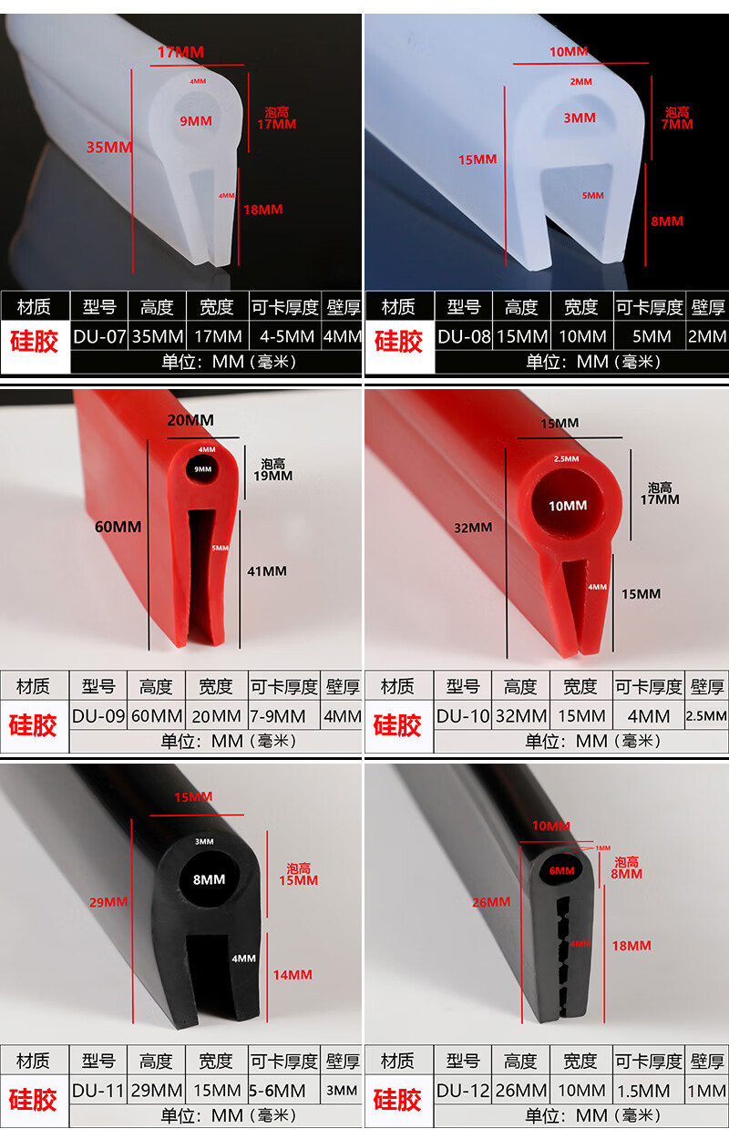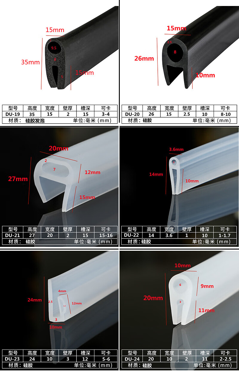 250 degree high temperature resistant U-shaped silicone sealing strip electromechanical cabinet top bubble wrap edge strip slot U-shaped strip oven strip DU-01