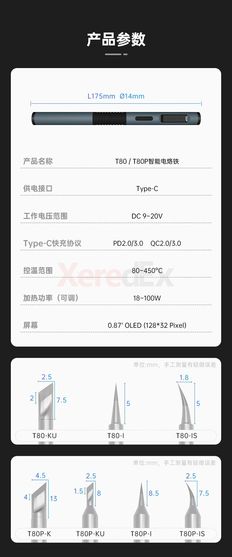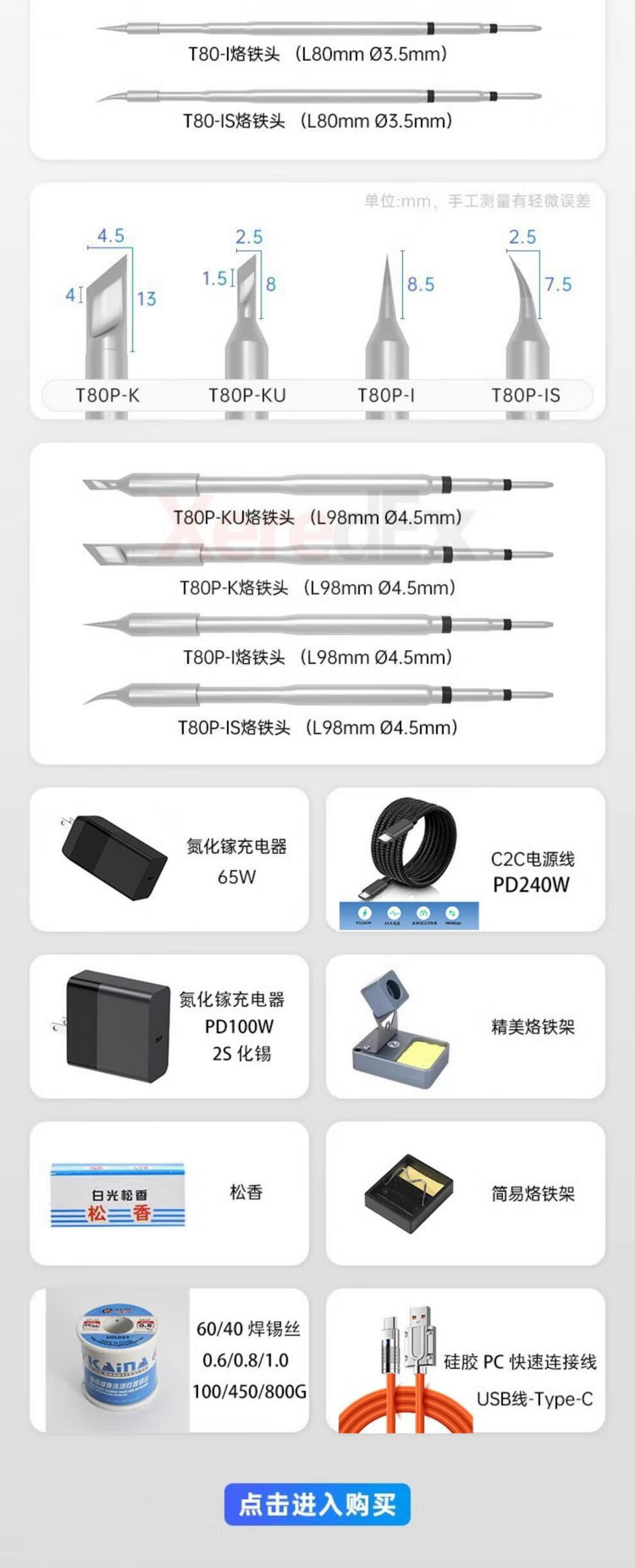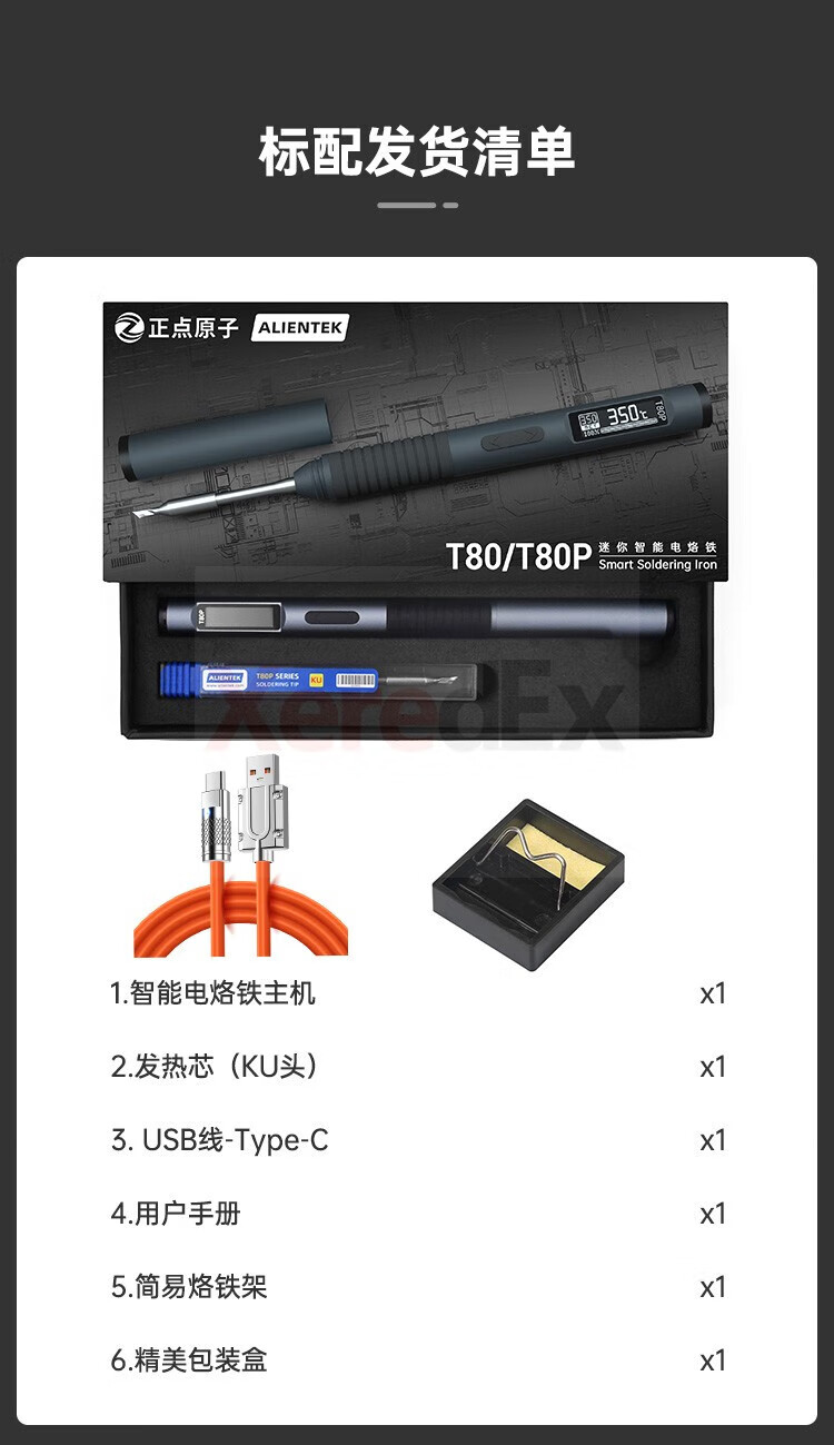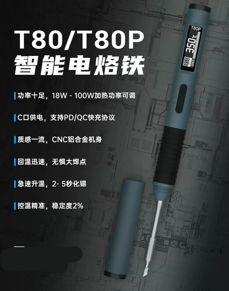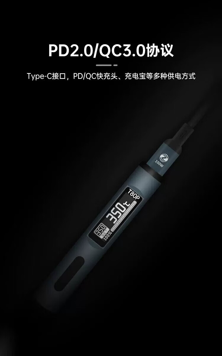 Atomic T80 smart small household adjustable temperature electric soldering iron portable constant temperature soldering station soldering pen C245210 T80 standard version (host + ku head + usb cable + soldering iron holder)