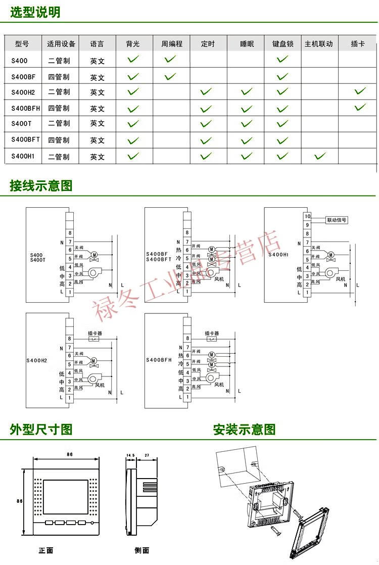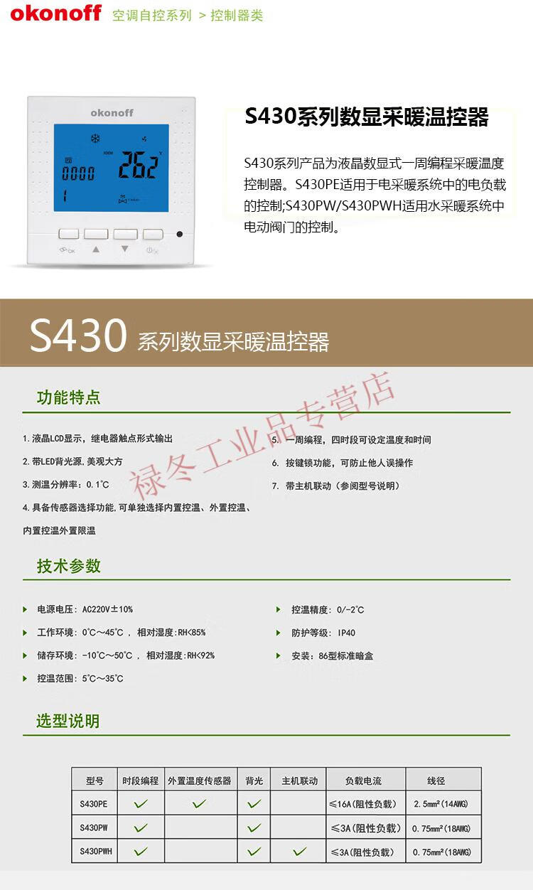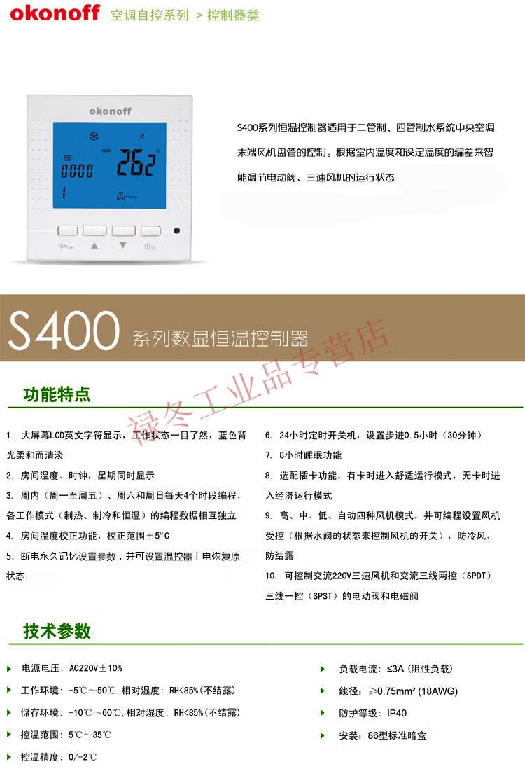 Okonoff Koneff thermostat S400 fan coil floor heating temperature control panel three-speed switch S400 (two pipes)