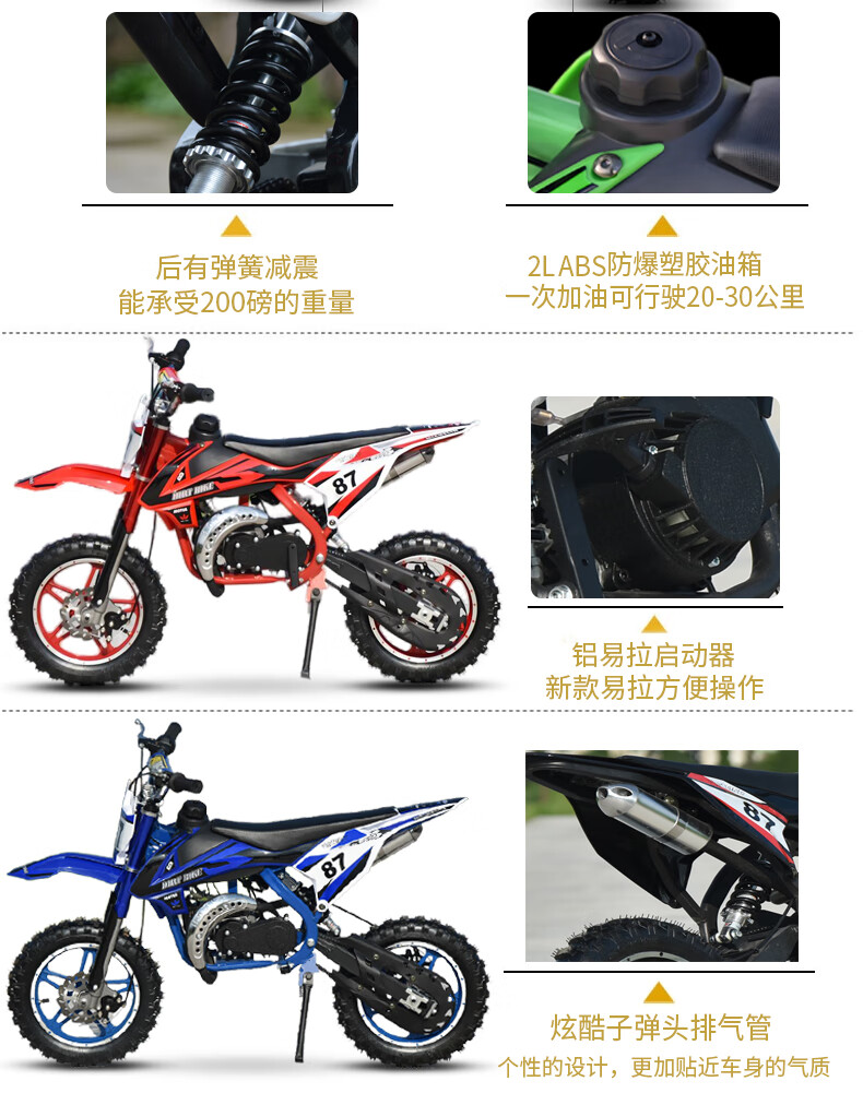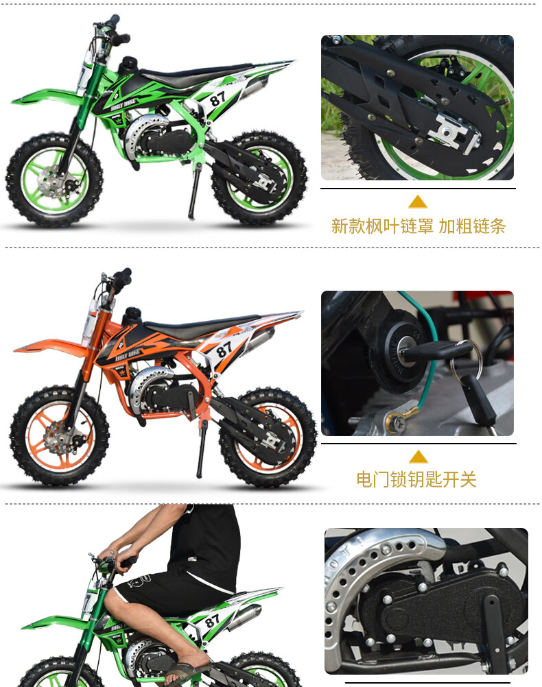 Langchuang's 24-year new small motorcycle children's 49cc mini motorcycle small off-road vehicle mixed oil gasoline fuel adult 2-stroke mixed oil hand start green