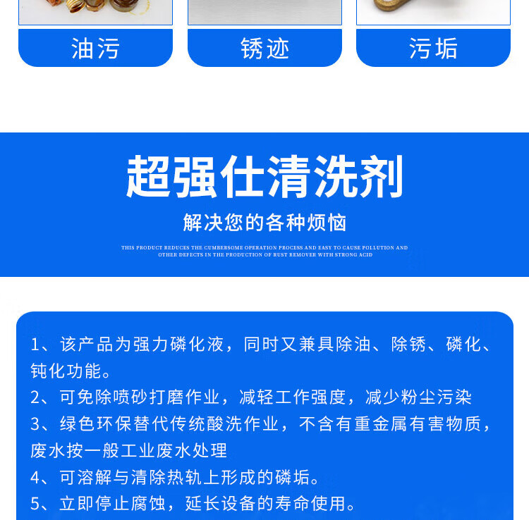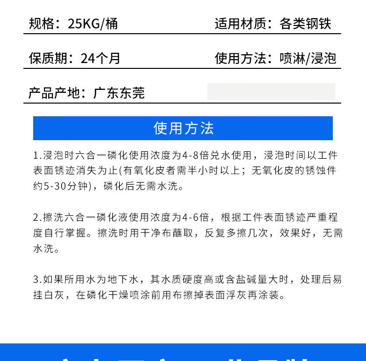 Suitable for six-in-one phosphating liquid steel four-in-one oil removal, rust removal, passivation, anti-rust phosphating agent, industrial surface 5kg-6-in-1
