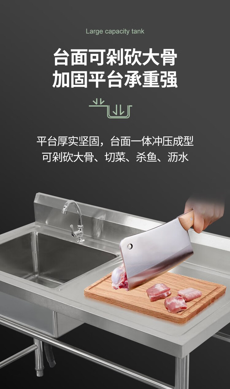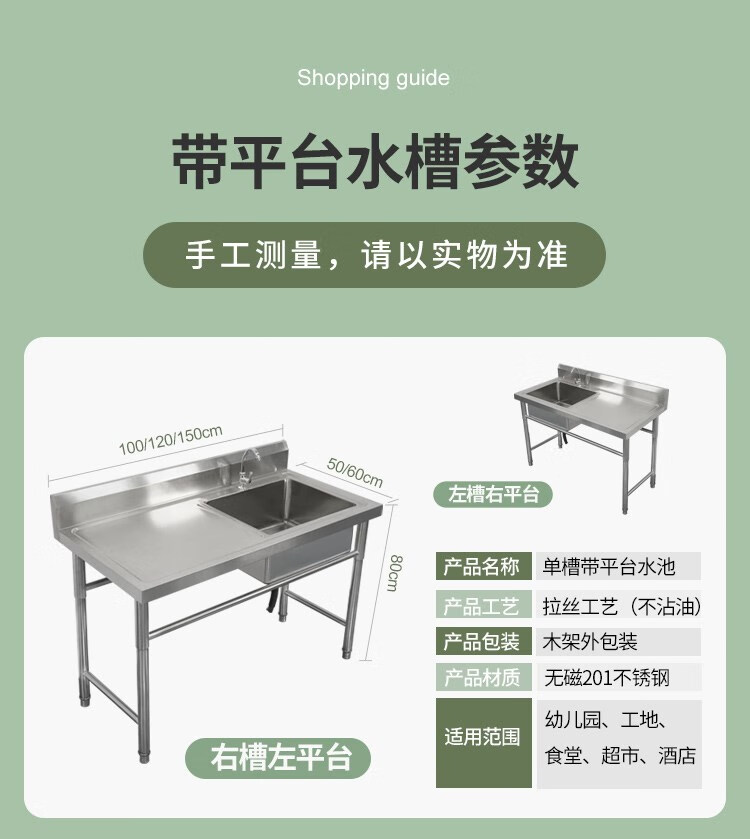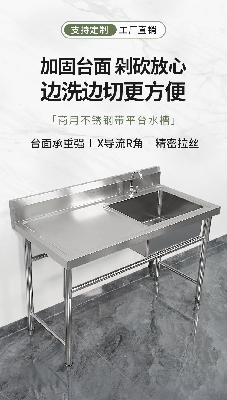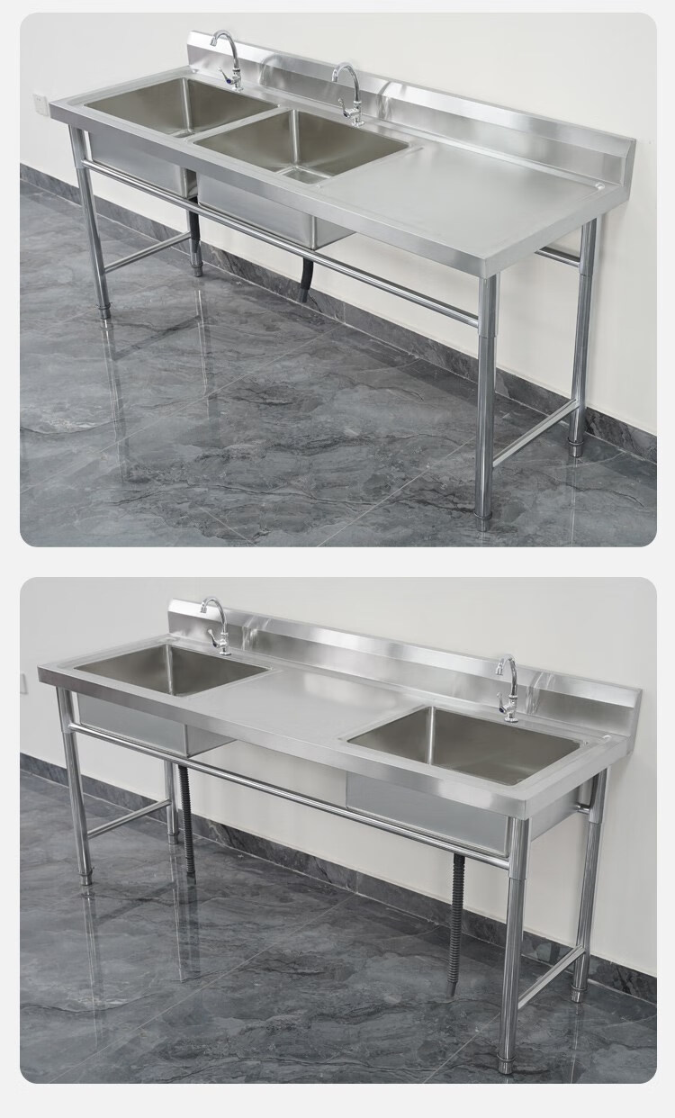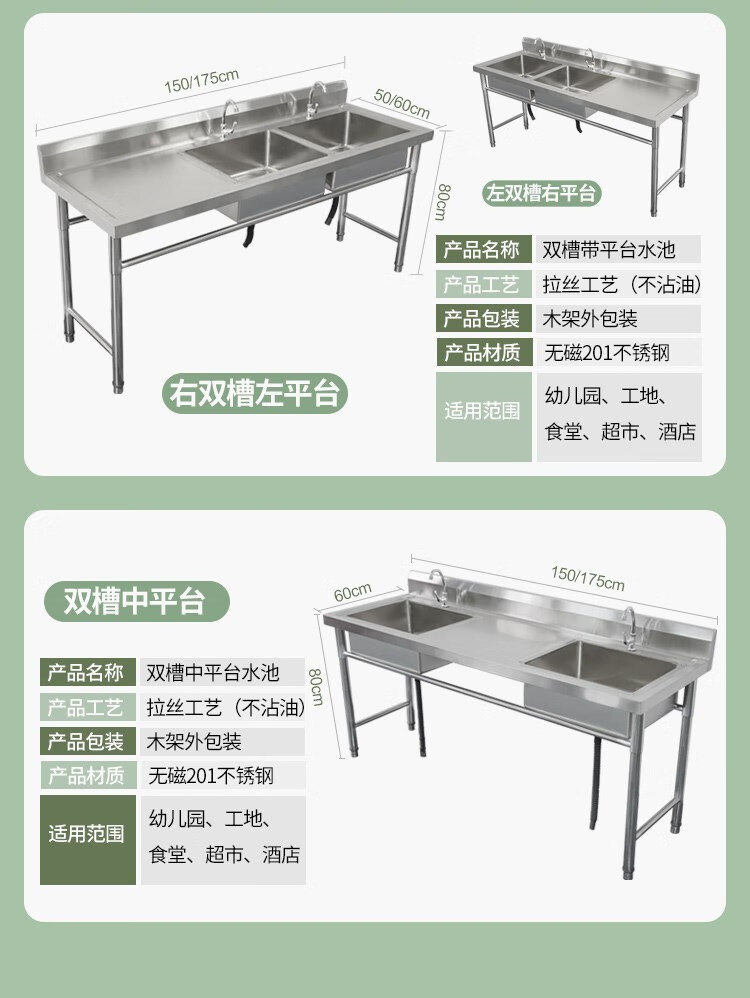 Commercial stainless steel sink with stand kitchen single and double sinks washing dishes and vegetables wash basin with platform canteen ordinary model 175*60*80 double pool middle platform