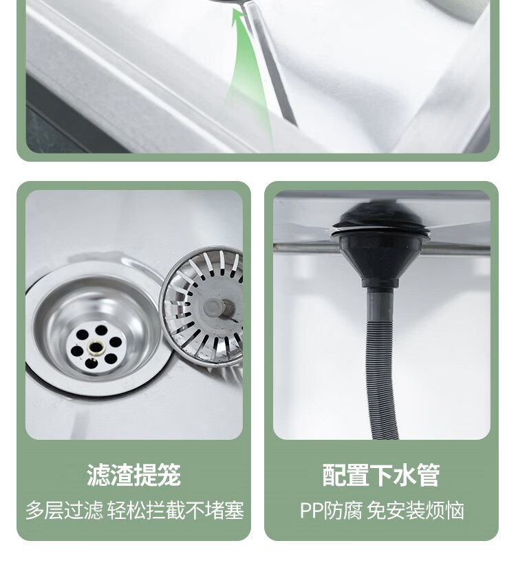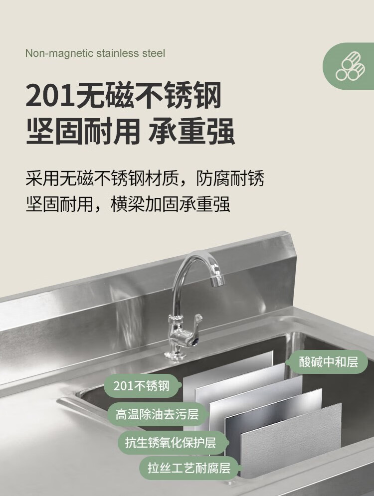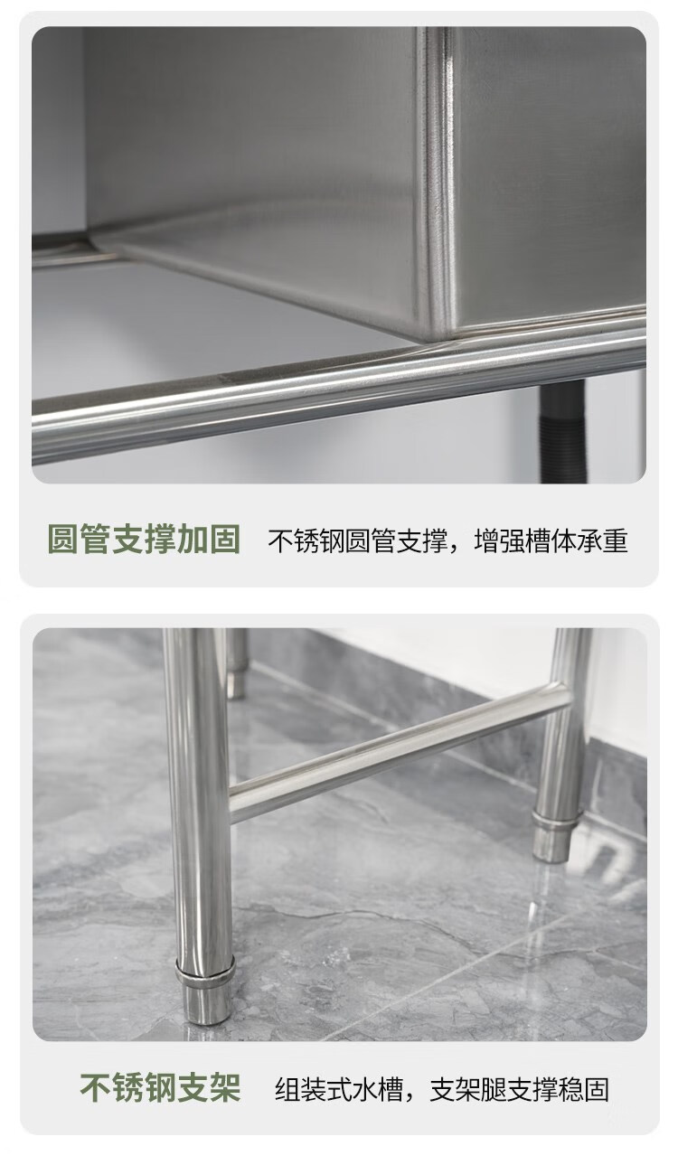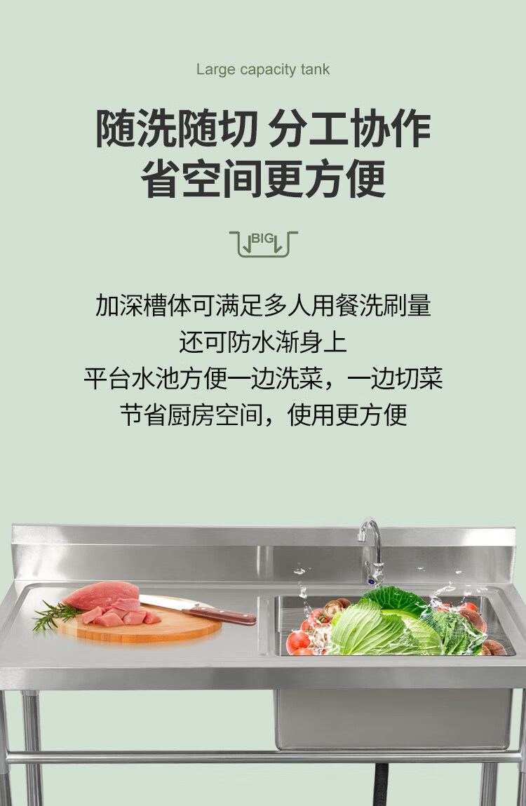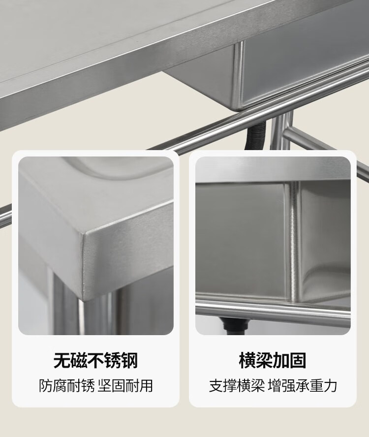 Commercial stainless steel sink with stand kitchen single and double sinks washing dishes and vegetables wash basin with platform canteen ordinary model 175*60*80 double pool middle platform