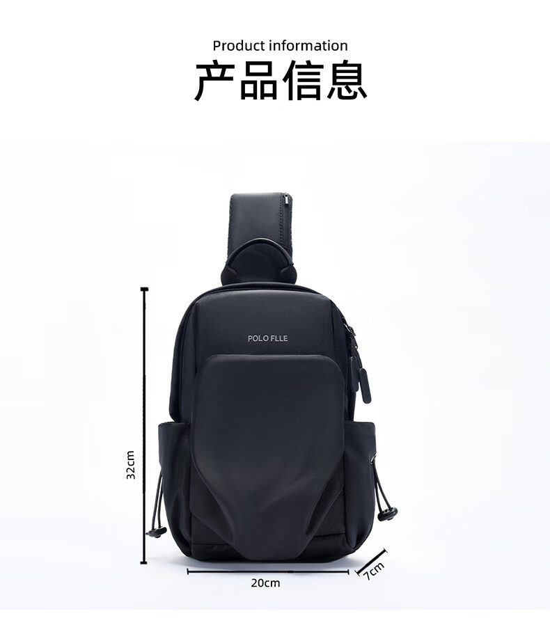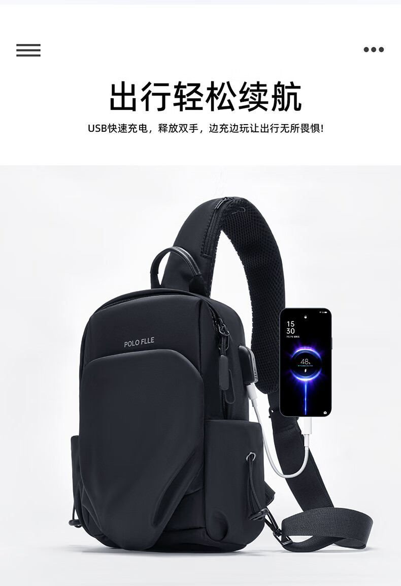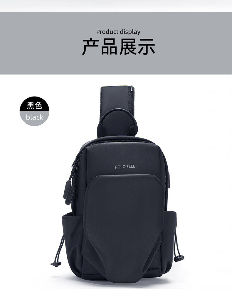 Cobia Paul shoulder crossbody bag men's chest bag multi-functional business casual men's bag large capacity outdoor sports small backpack travel black