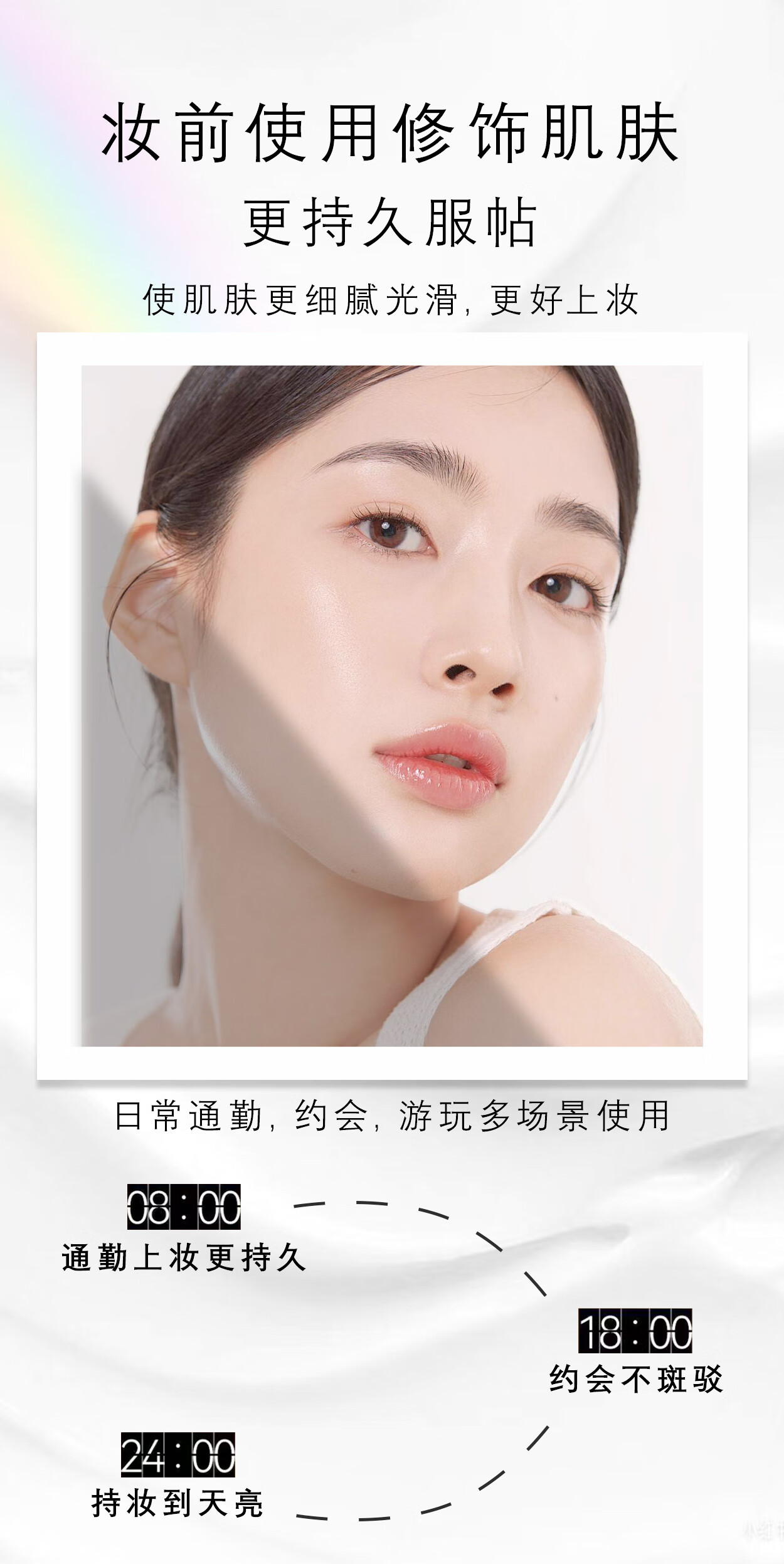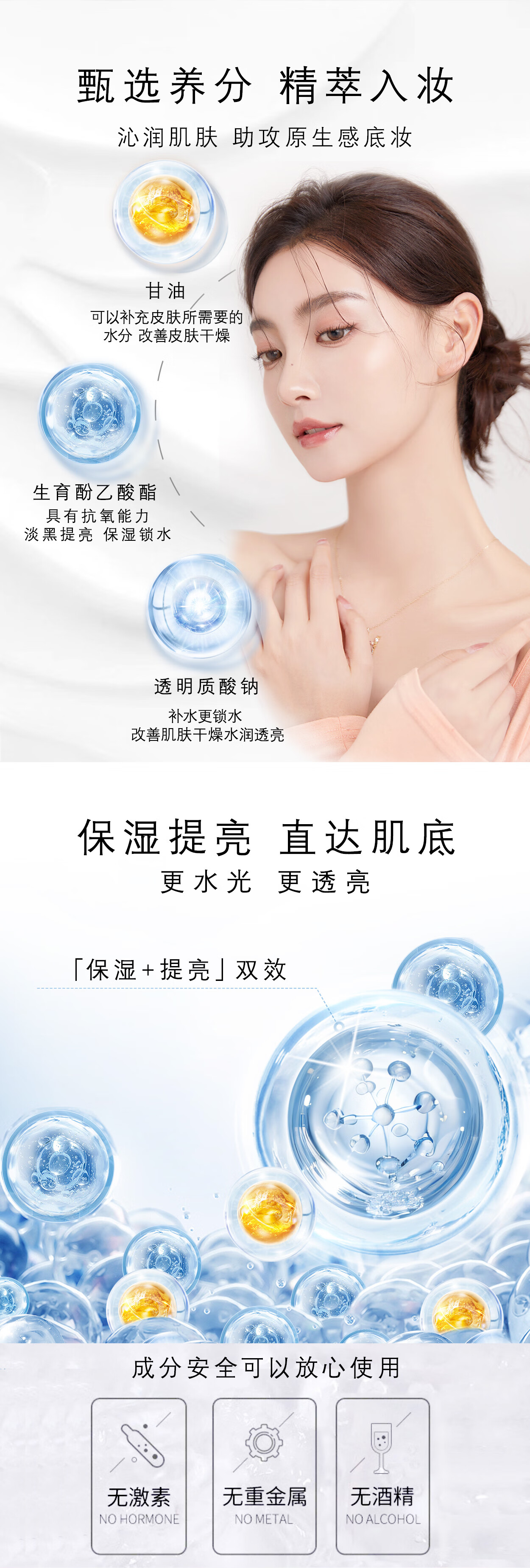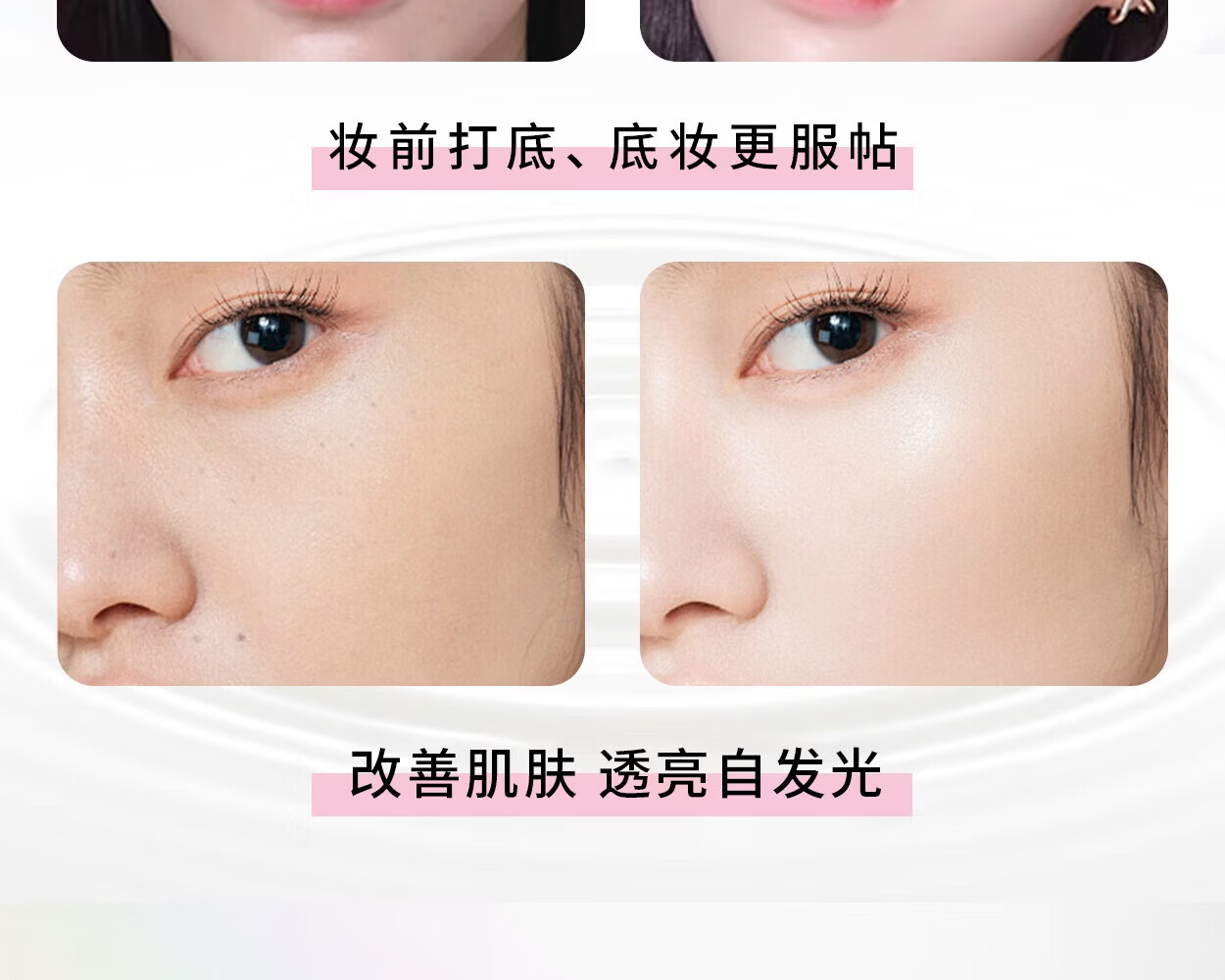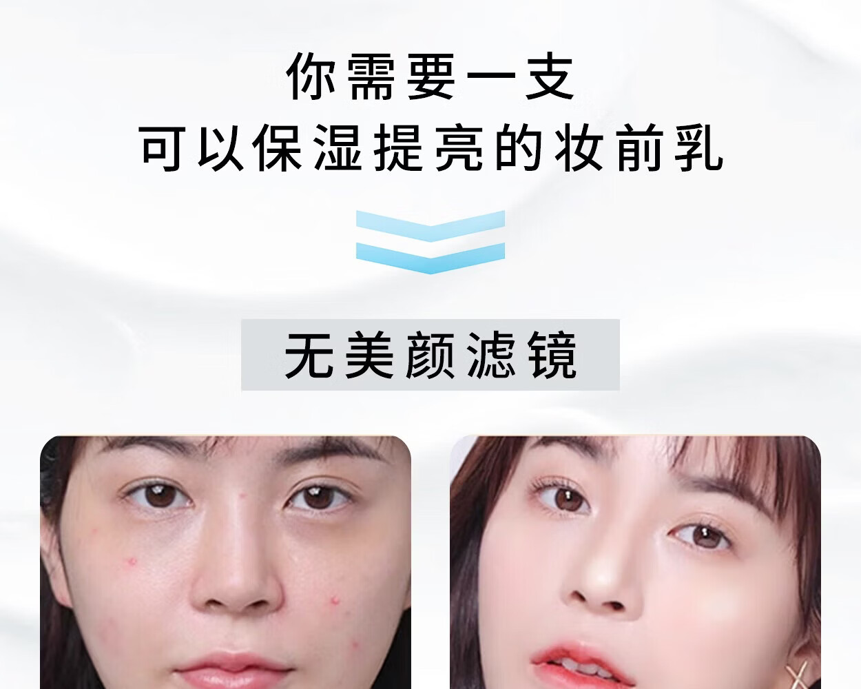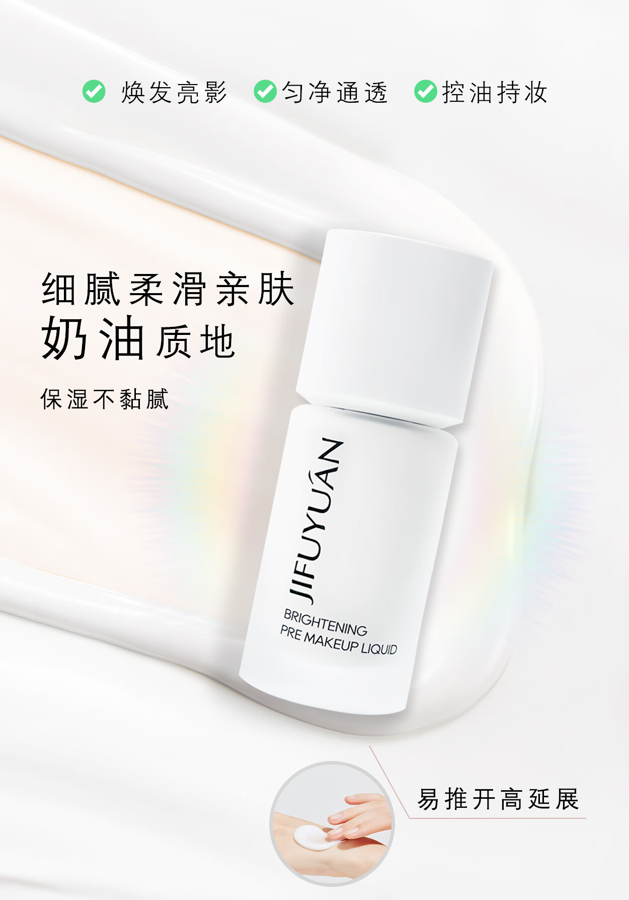 JIFUYUAN moisturizing and brightening primer, moisturizing and brightening makeup, brightening skin tone, moisturizing and translucent, with brush powder 30ml*2 bottles+powder puff*1+brush*1+trial*1