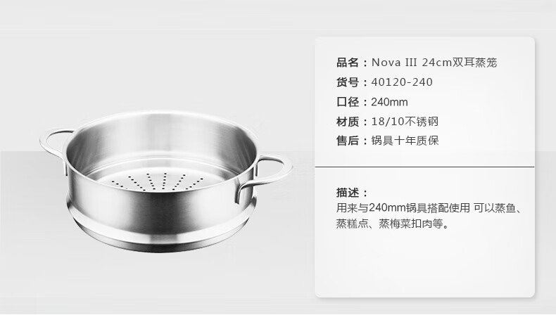 Zwilling Nova24 soup pot stew pot + 24cm double-ear steamer glass lid steamer glass lid steamer 24cm