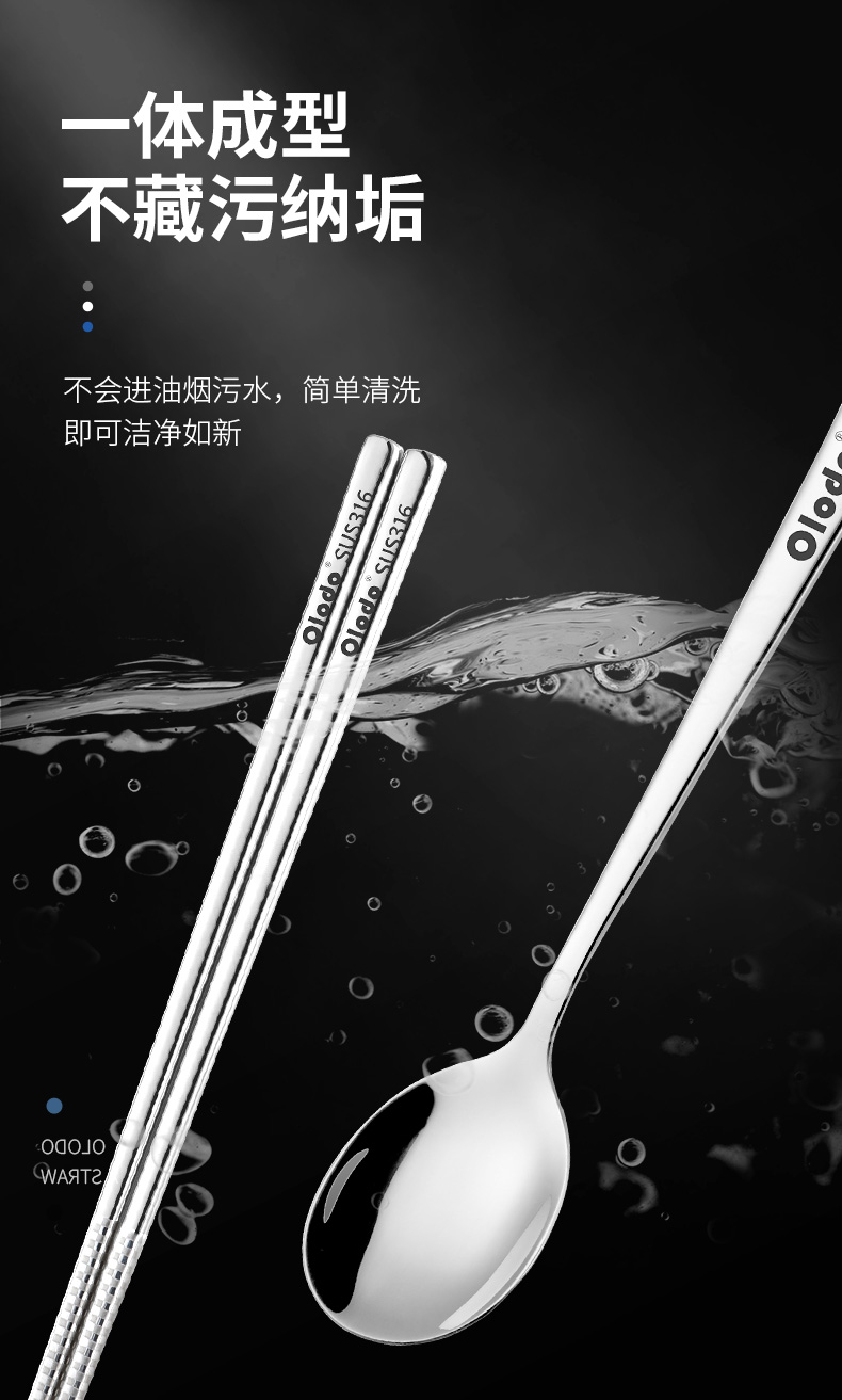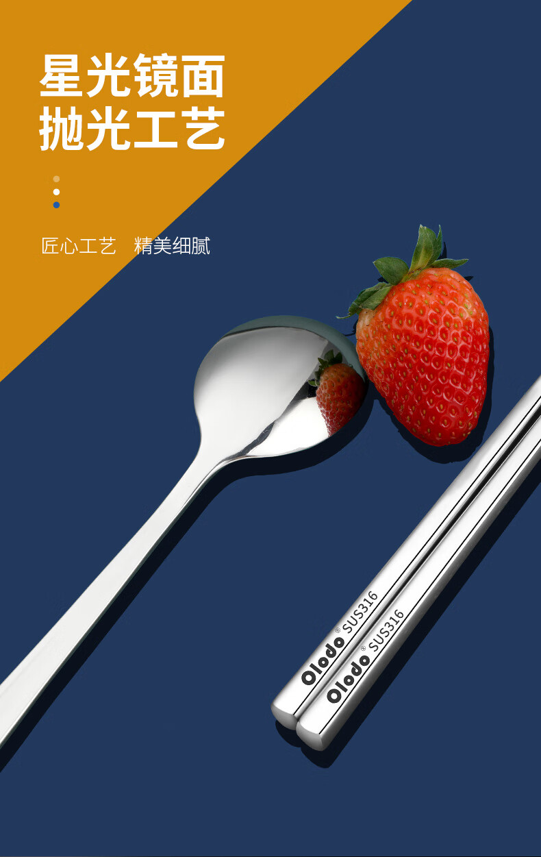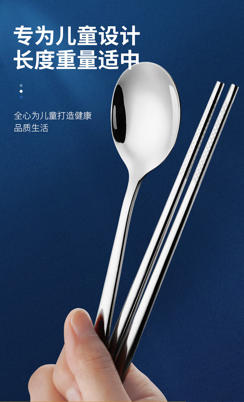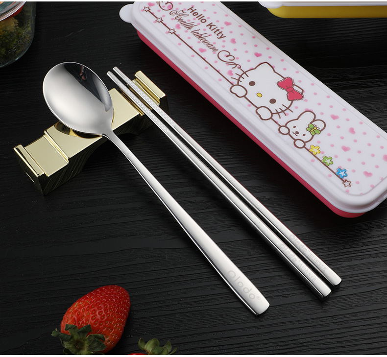 Olodo Germany Antibacterial 316 Stainless Steel Children's Portable Tableware Set Cute Cartoon Chopsticks Spoon Set Storage Box Geometric Bear 316 Chopsticks + Spoon Gift Box + Bag
