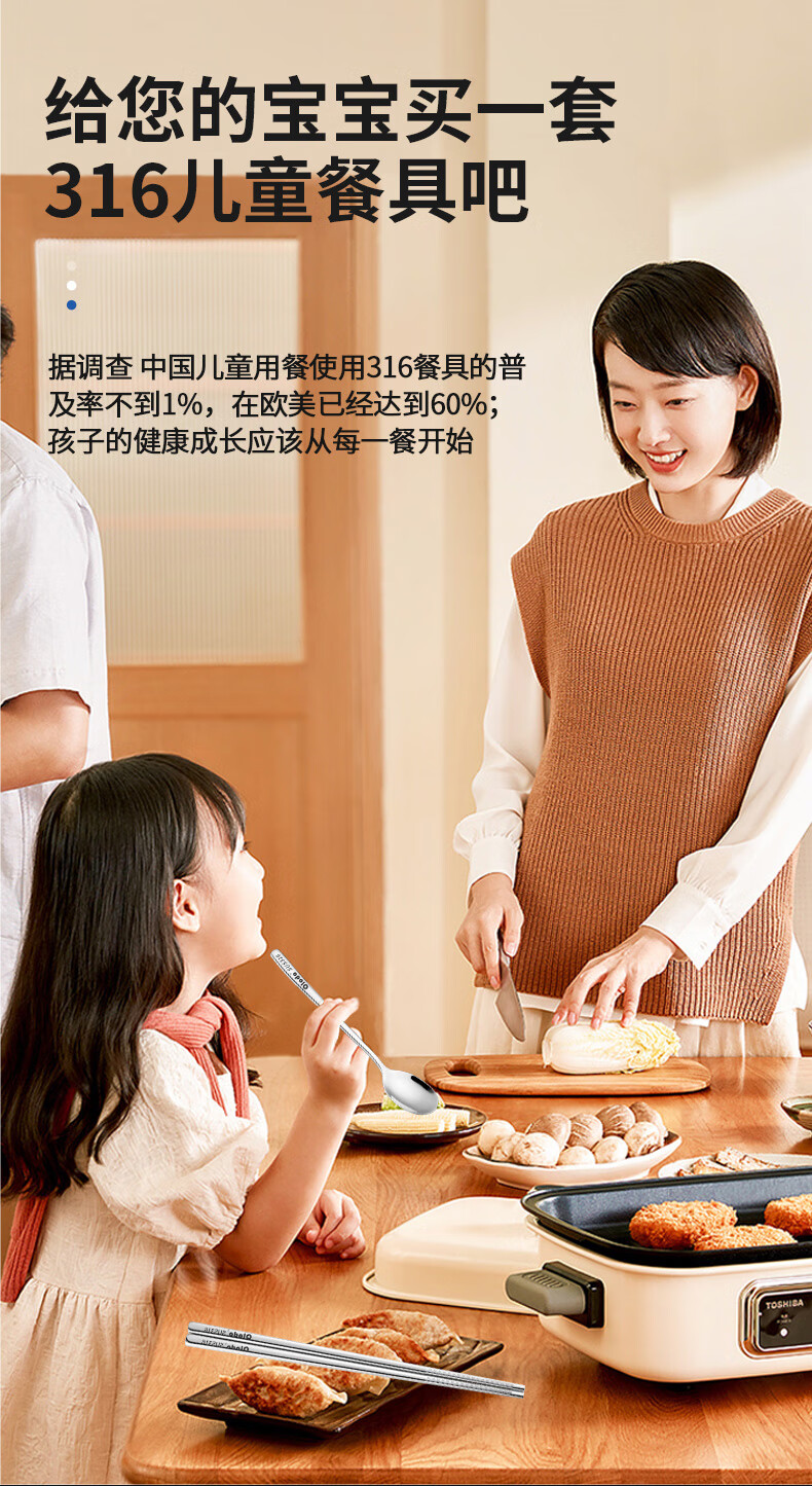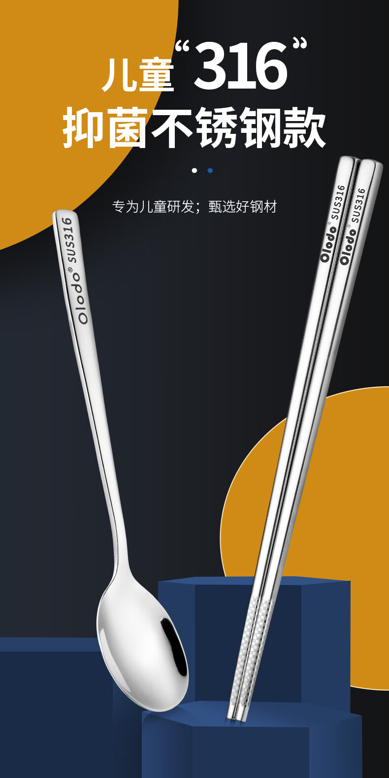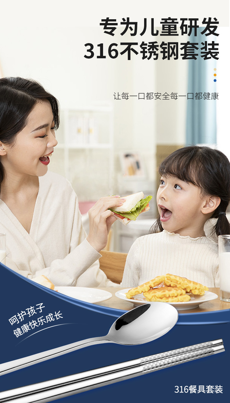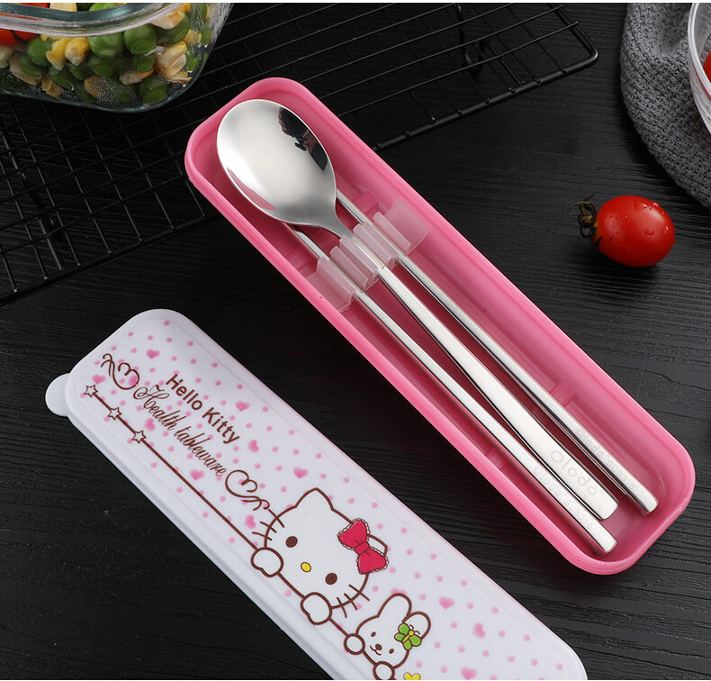Olodo Germany Antibacterial 316 Stainless Steel Children's Portable Tableware Set Cute Cartoon Chopsticks Spoon Set Storage Box Geometric Bear 316 Chopsticks + Spoon Gift Box + Bag