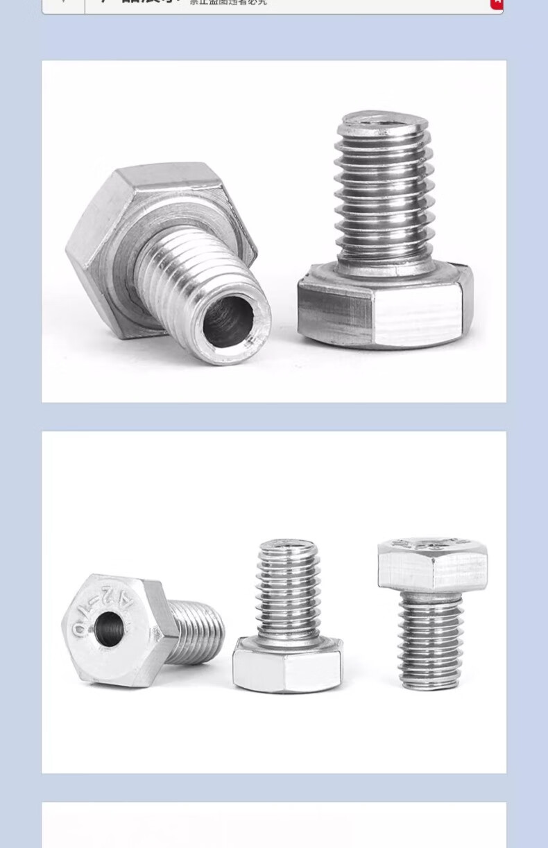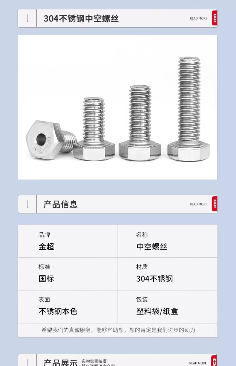Jinchao 304 stainless steel external hexagonal hollow screw hollow bolt mask machine threading screw M6M8M10M12 M10*16 hole 5.2 mm (1 set) with nut