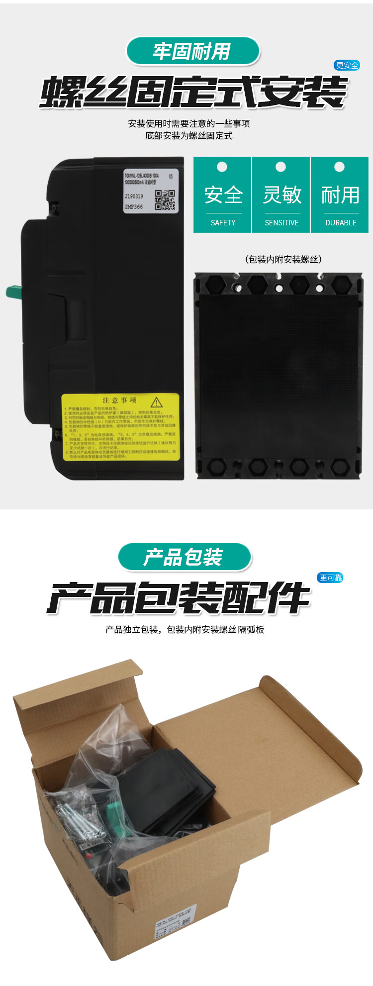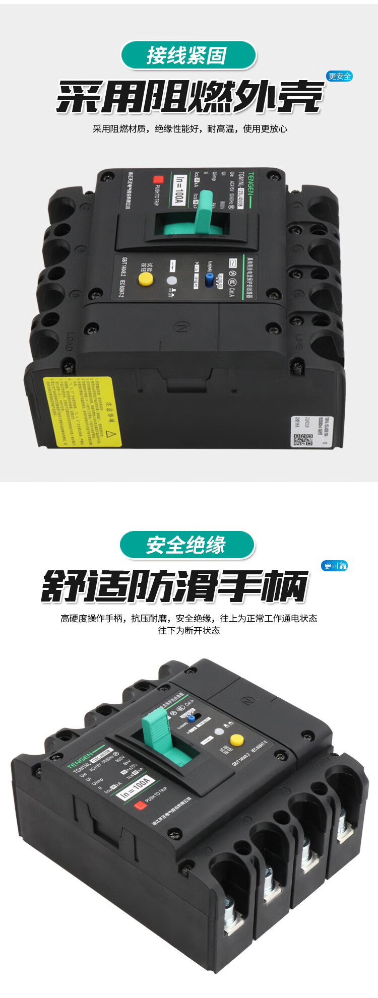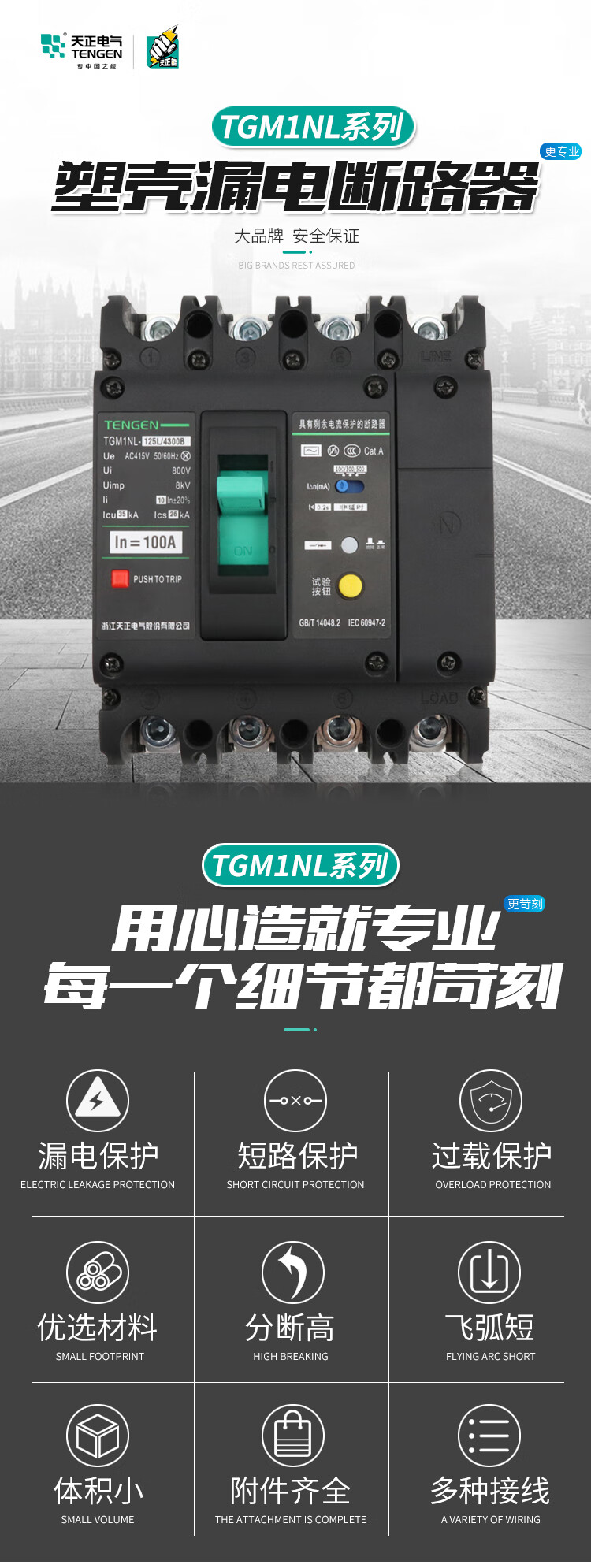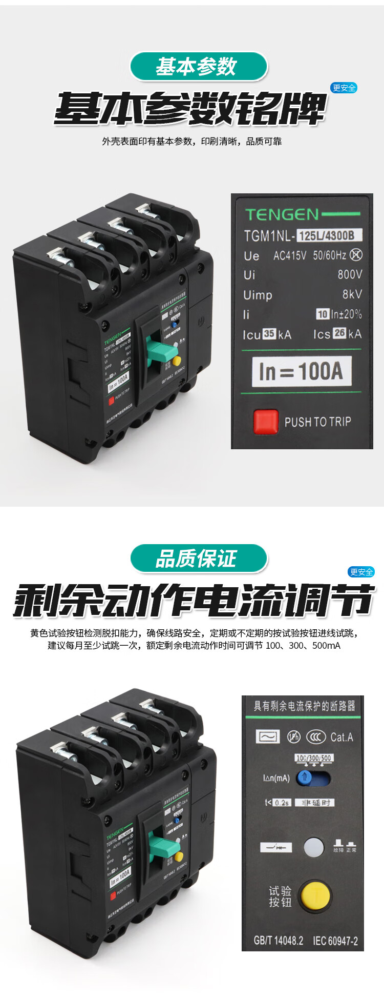 Tianzheng TGM1NL plastic case leakage circuit breaker air switch with leakage protector 4P three-wire four-wire 380V 4300B 100A