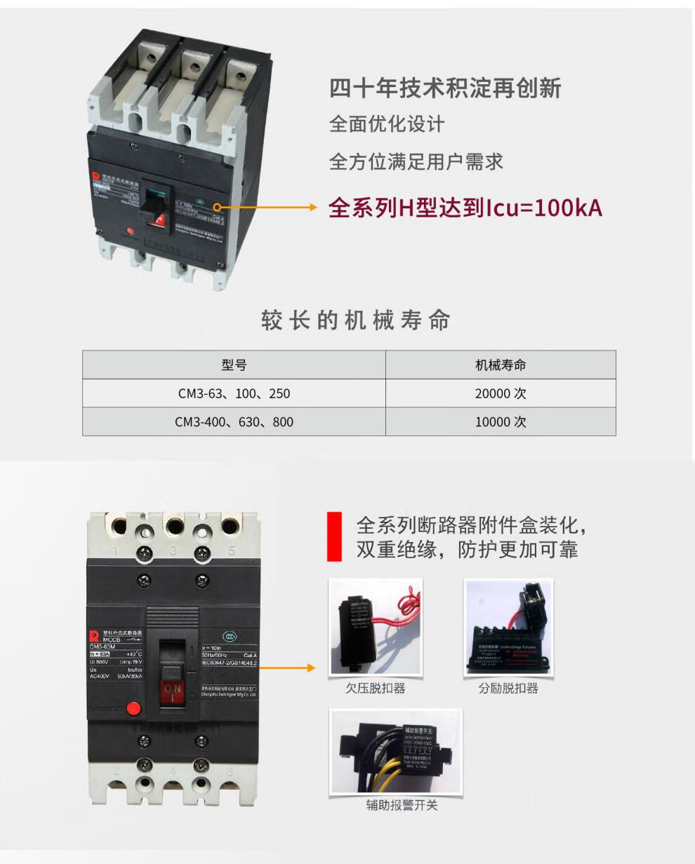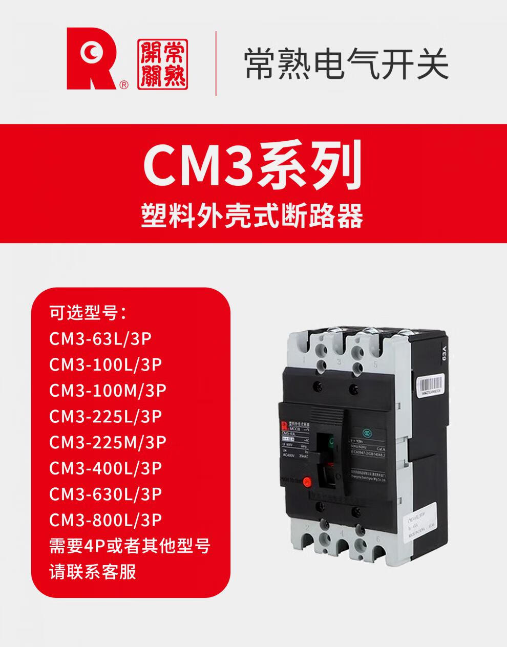 Changshu Switch Factory CM3-250 switch series molded case circuit breaker 63/100/160/400/630/800L type 3P 3300 CM3-250L/level 125A