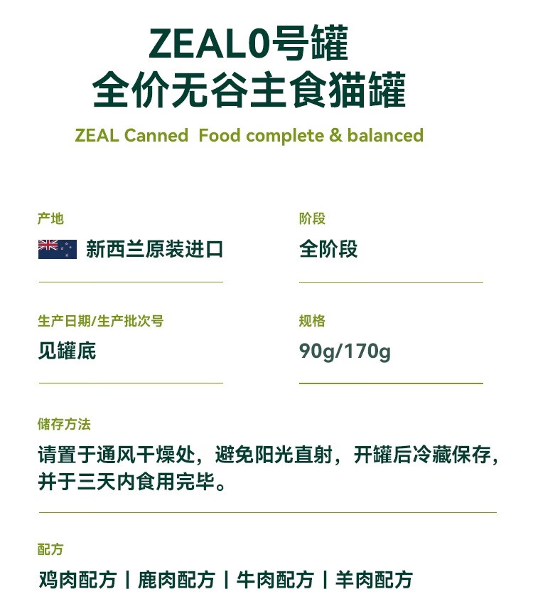 ZEAL No. 0 can full price grain-free cat canned New Zealand cat staple food can random flavor 170g (exclusively for new customers)