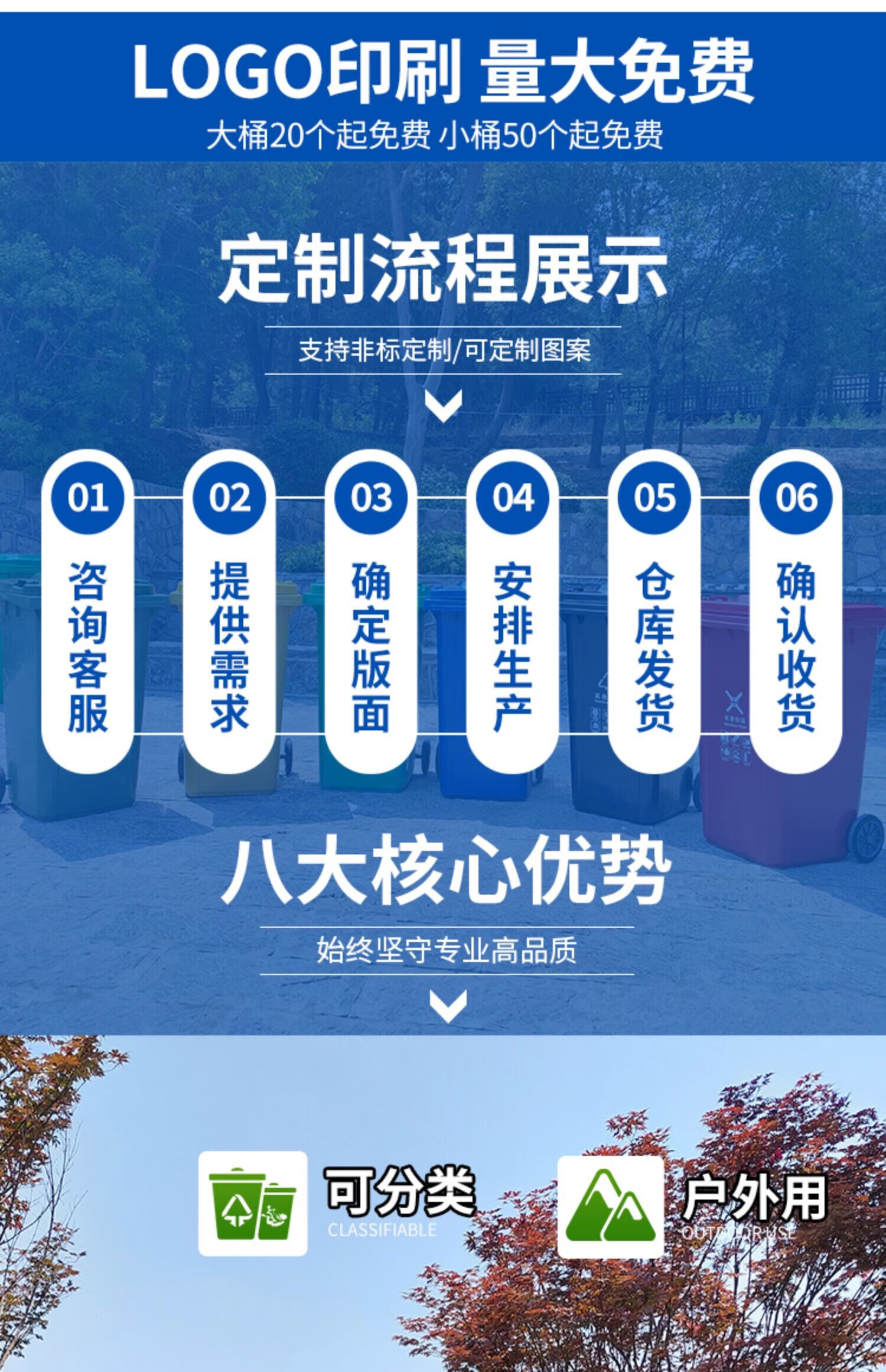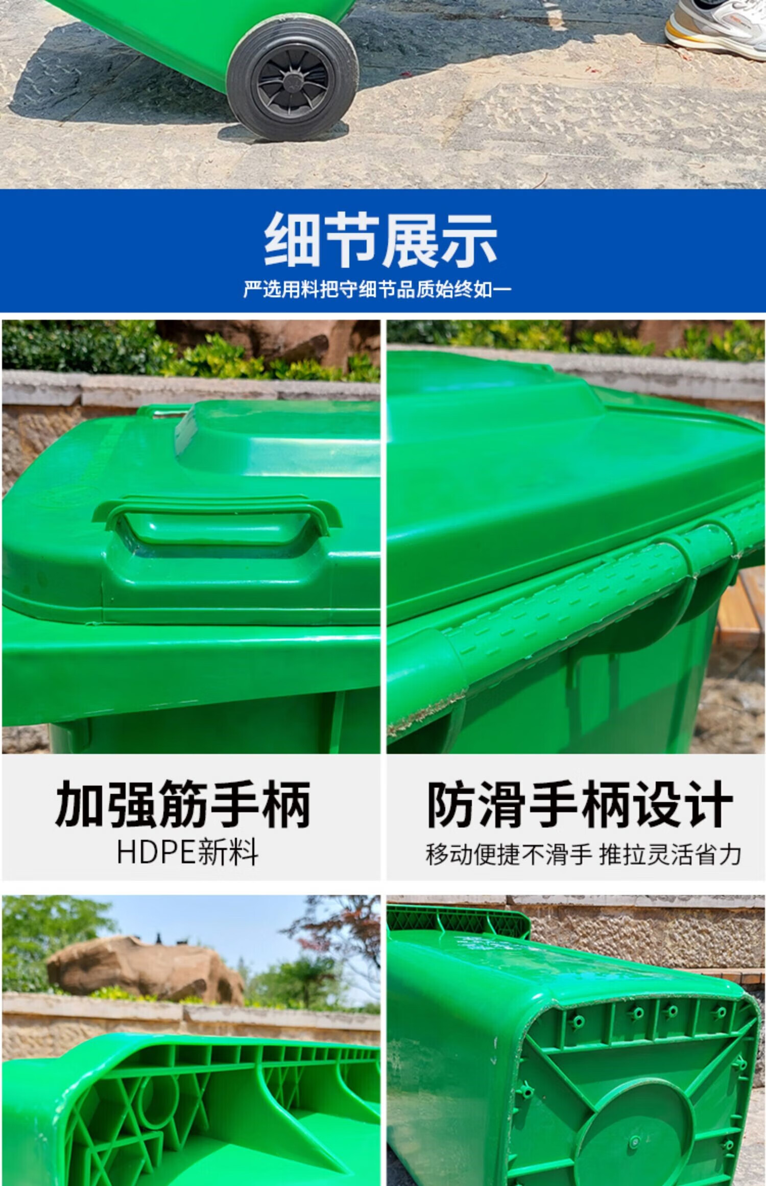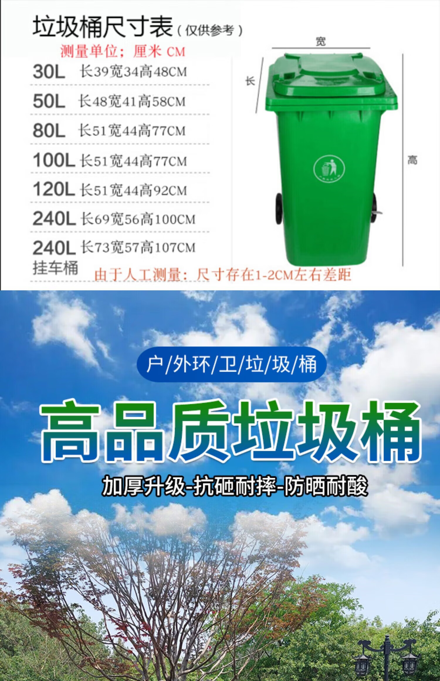 Environmental sanitation plastic outdoor outdoor thickened large size trash can large size trash can industrial covered wheeled classification peel 100 liters trailer material covered wheeled large 260 liter trailer with thickened reinforced covered