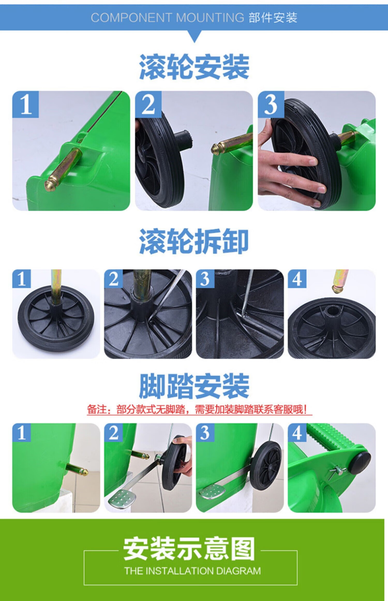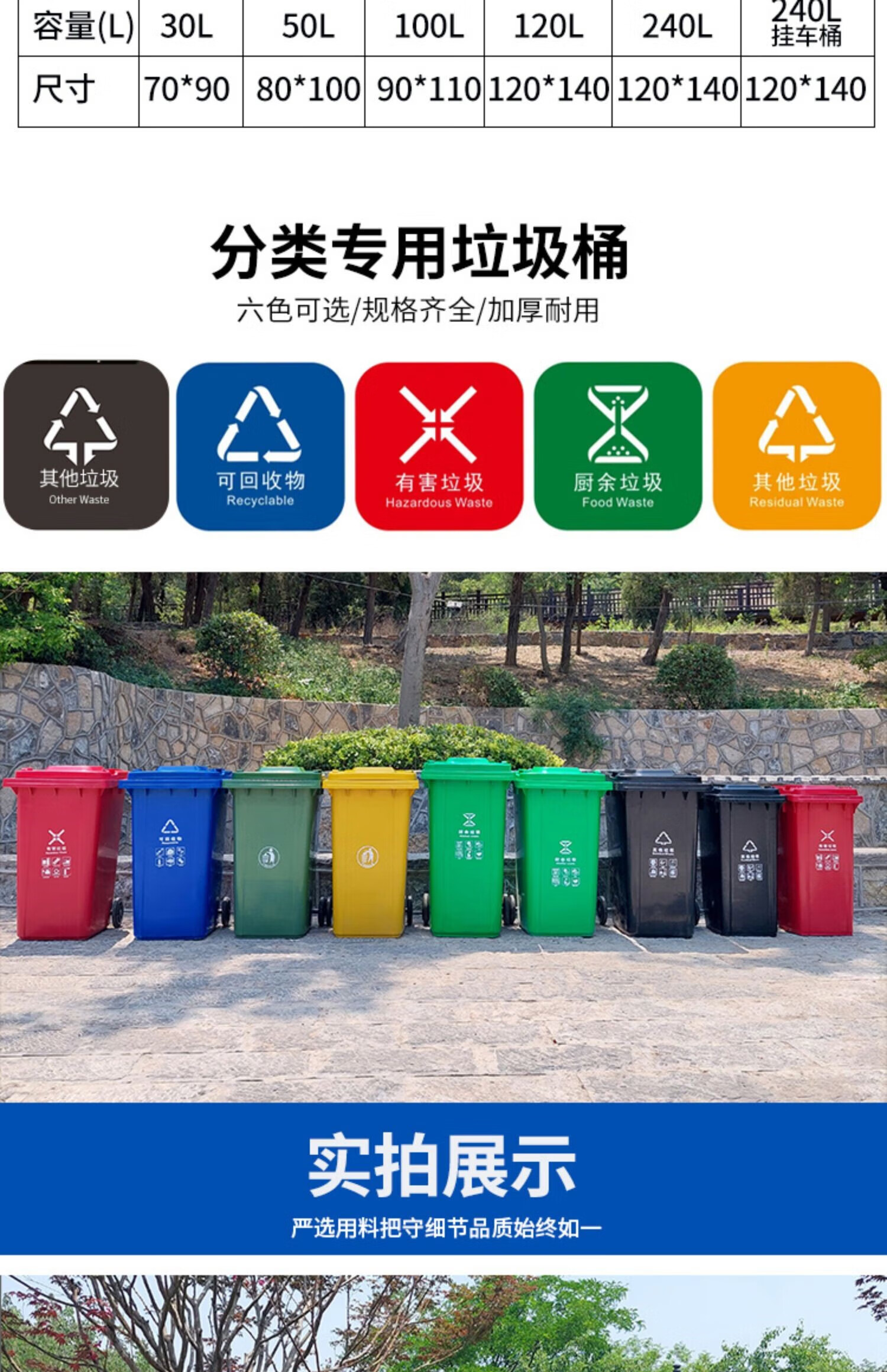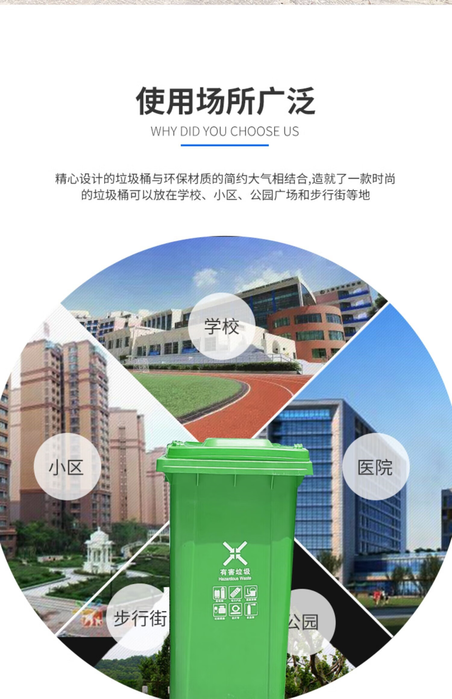 Environmental sanitation plastic outdoor outdoor thickened large size trash can large size trash can industrial covered wheeled classification peel 100 liters trailer material covered wheeled large 260 liter trailer with thickened reinforced covered