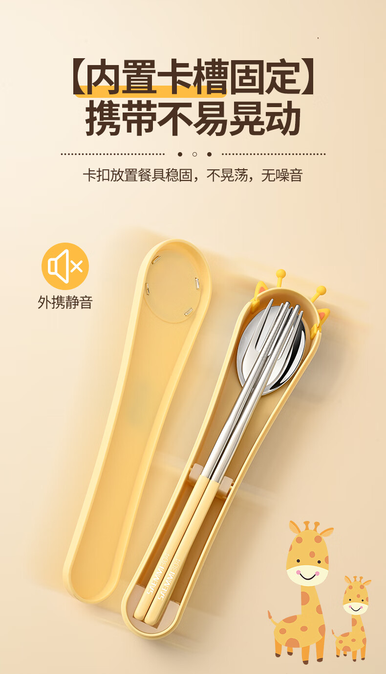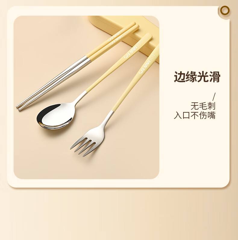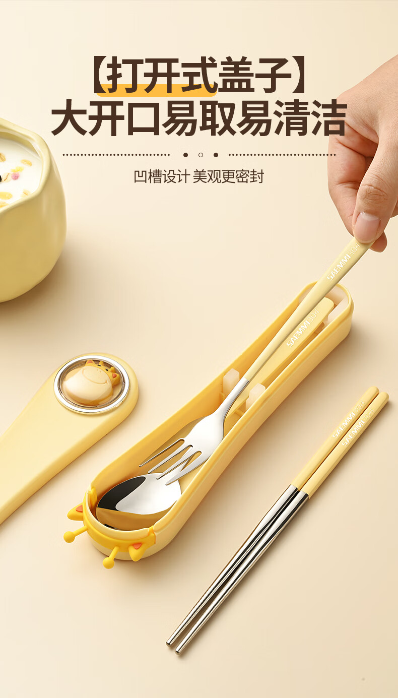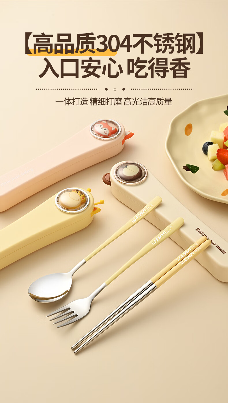 Saemmi stainless steel chopsticks and spoon set, outdoor portable cutlery box, three-piece set, special travel set for children and primary school students Lu Youyou - 3-piece set