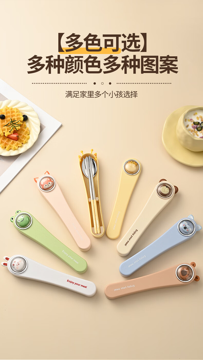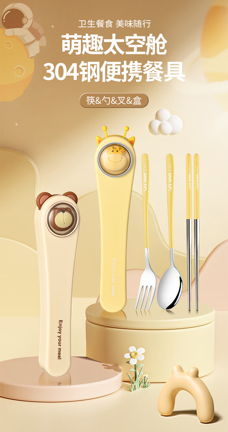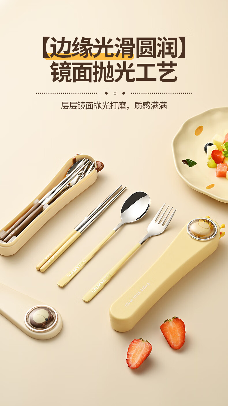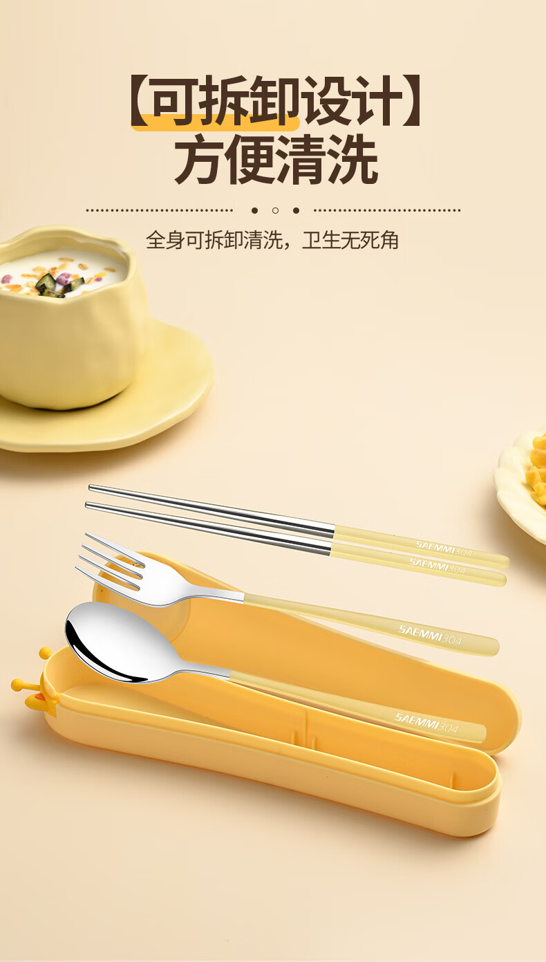Saemmi stainless steel chopsticks and spoon set, outdoor portable cutlery box, three-piece set, special travel set for children and primary school students Lu Youyou - 3-piece set