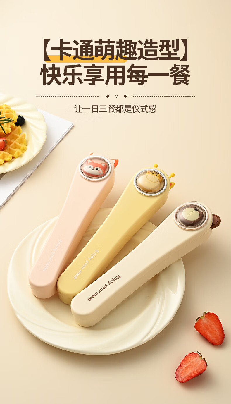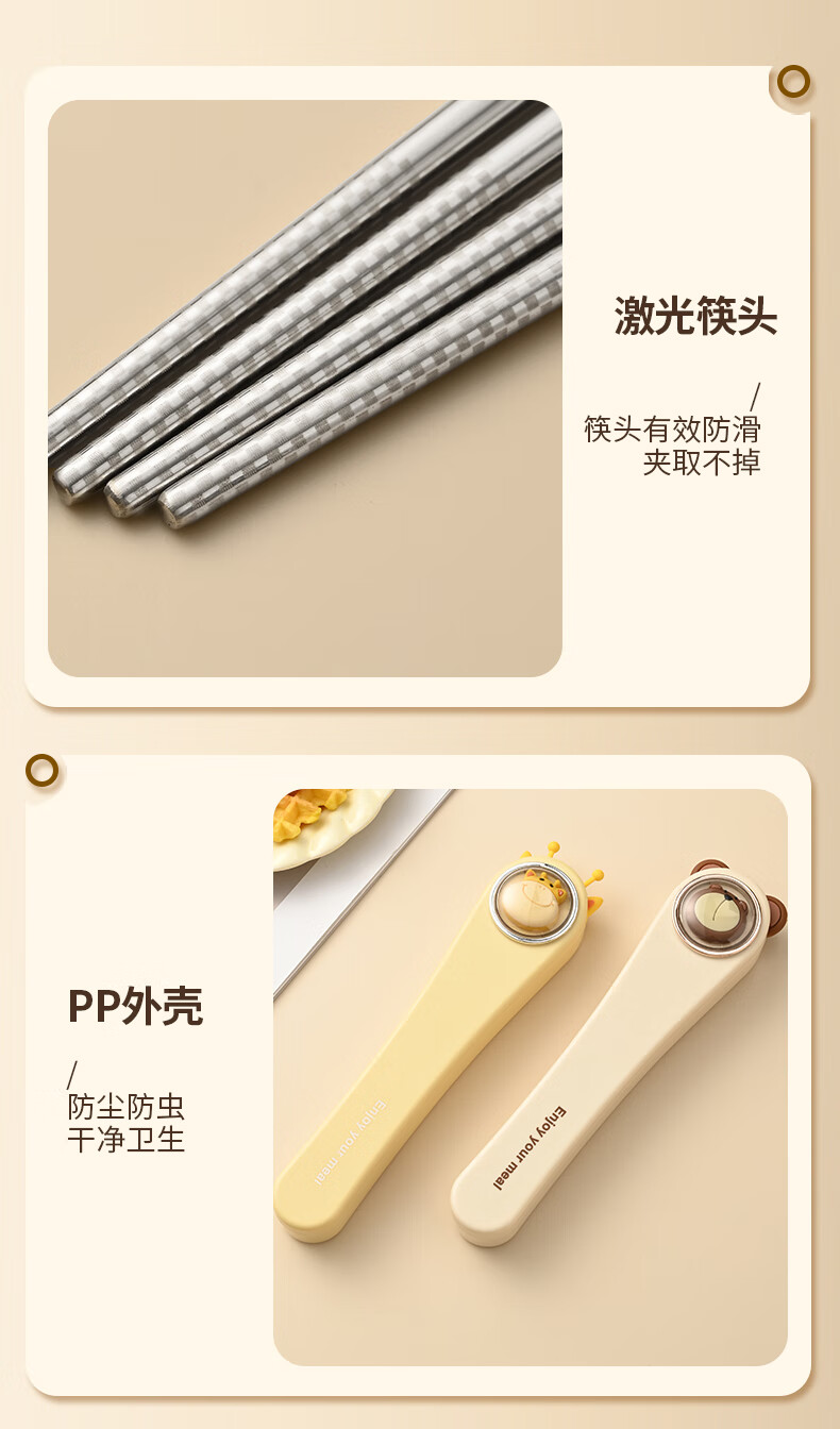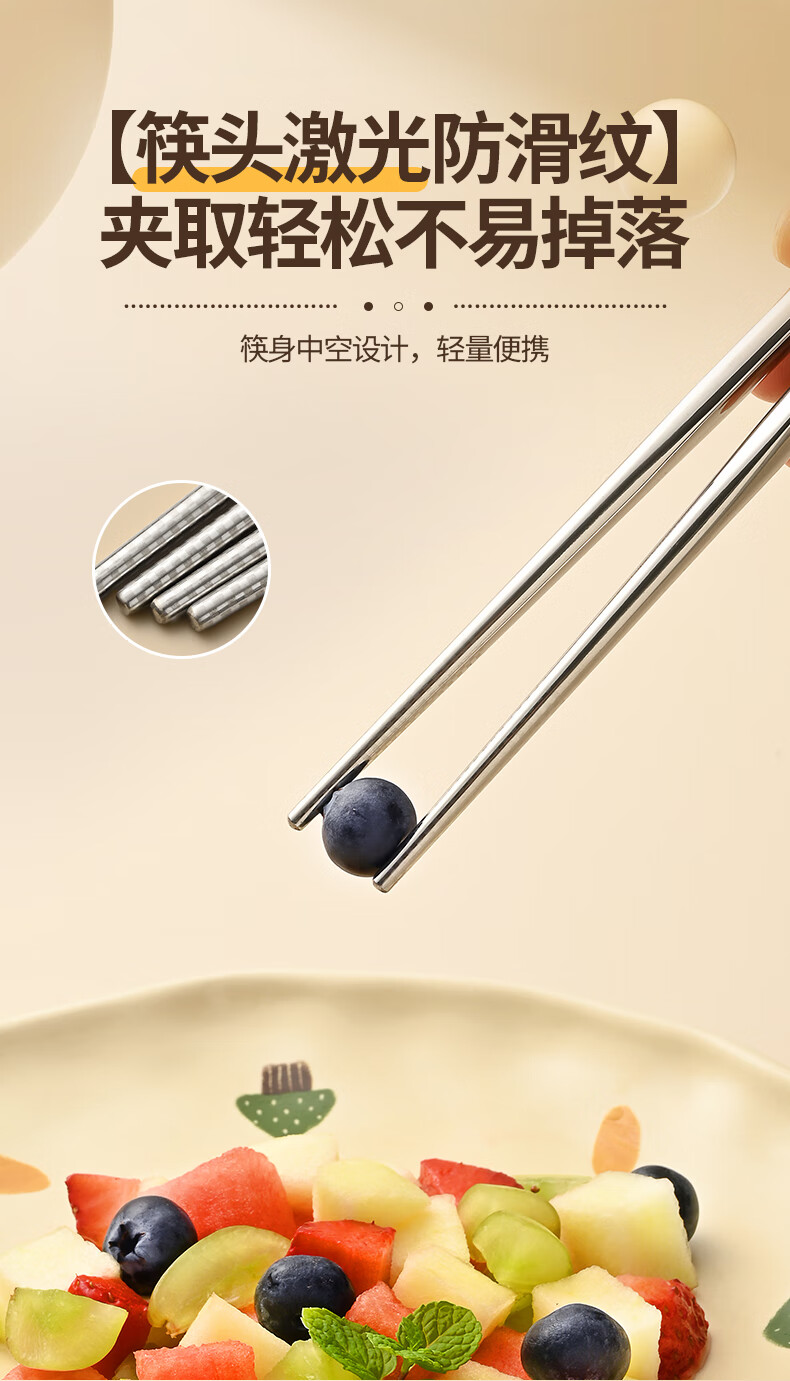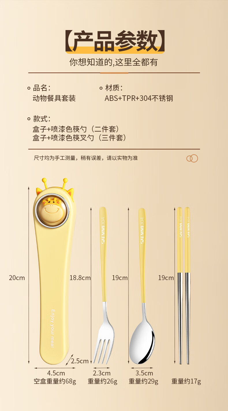 Saemmi stainless steel chopsticks and spoon set, outdoor portable cutlery box, three-piece set, special travel set for children and primary school students Lu Youyou - 3-piece set